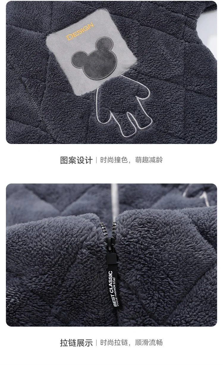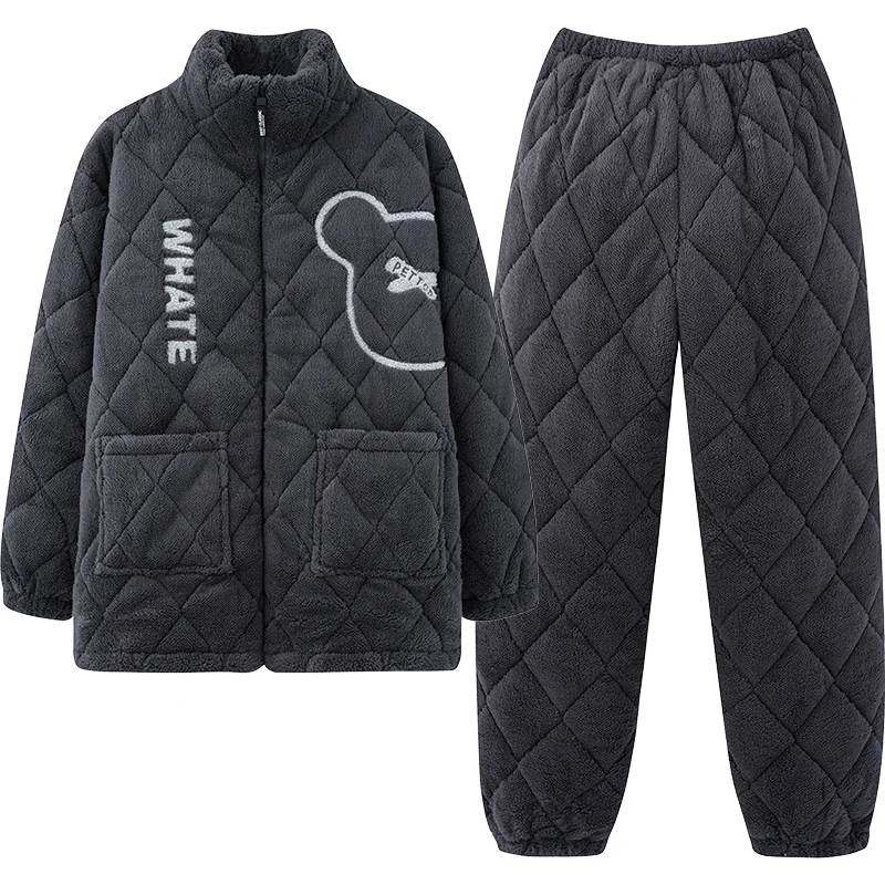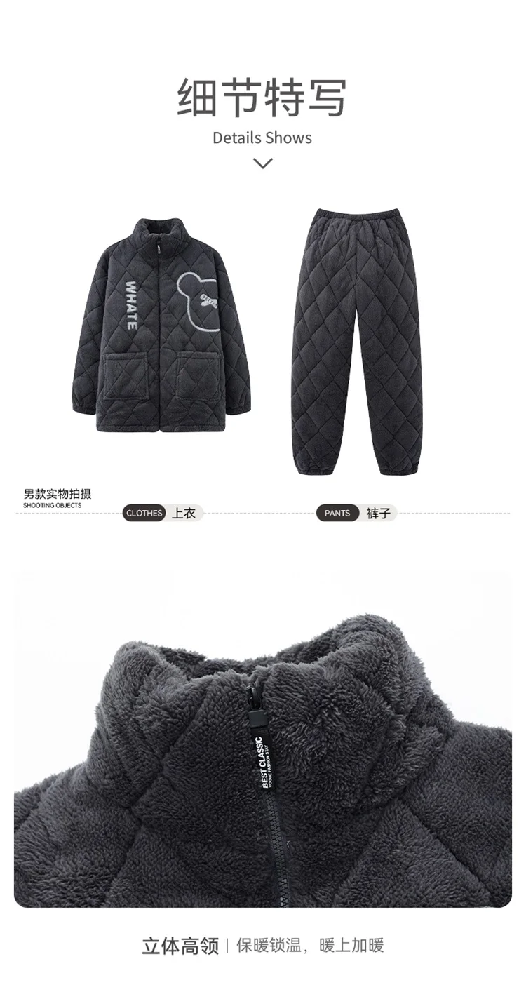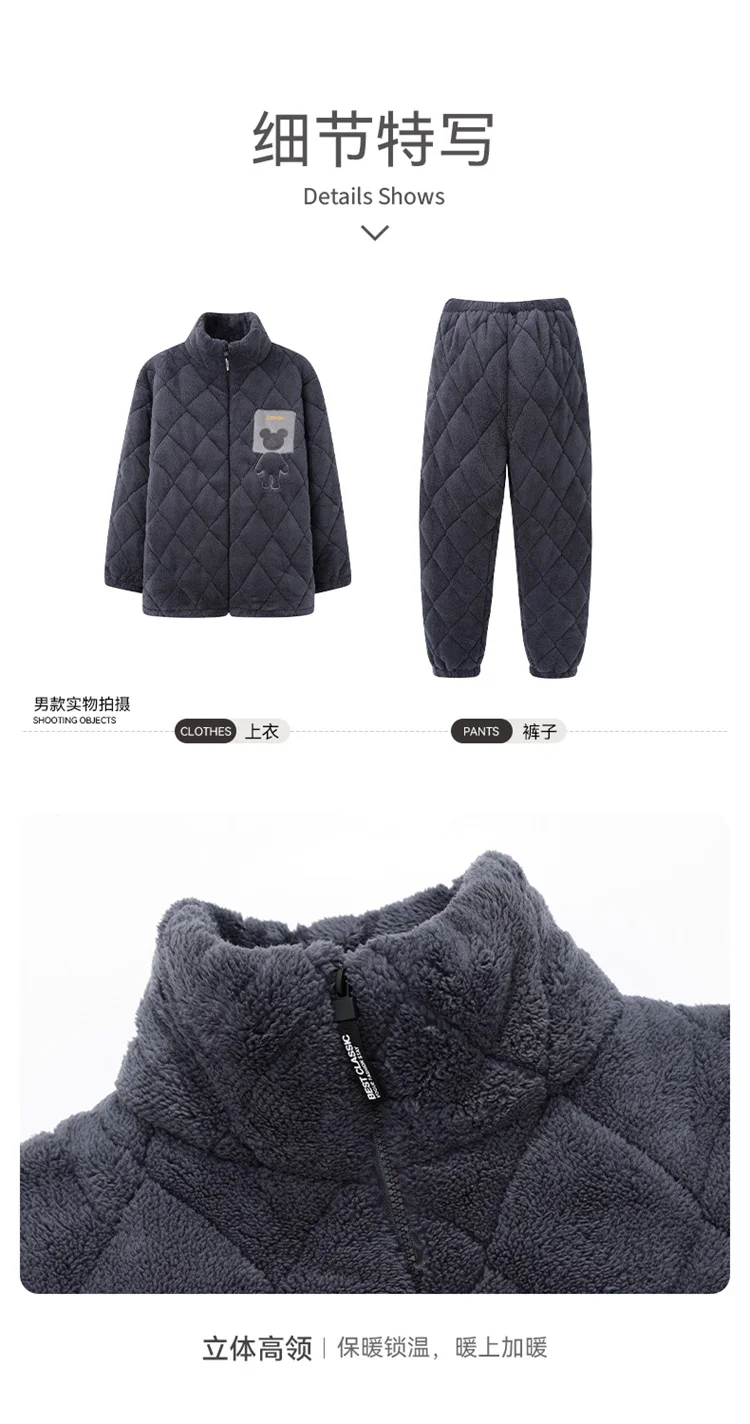 High Quality Winter Men Pajamas Set Thick Warm Men Sleepwear 3 Layer Clip Cotton Pyjamas