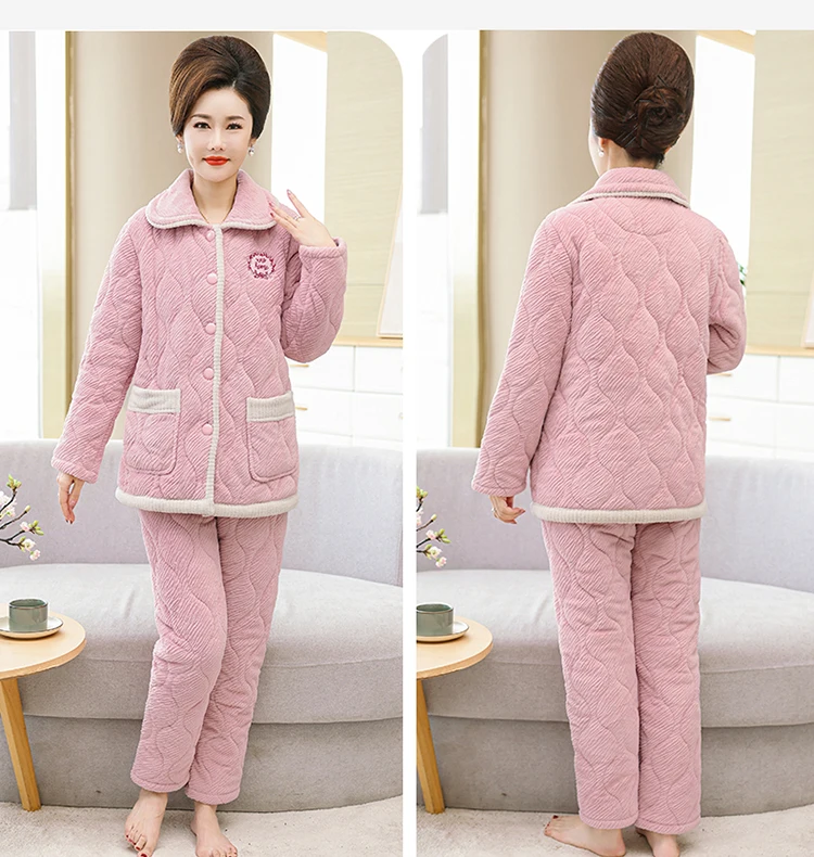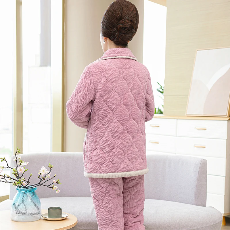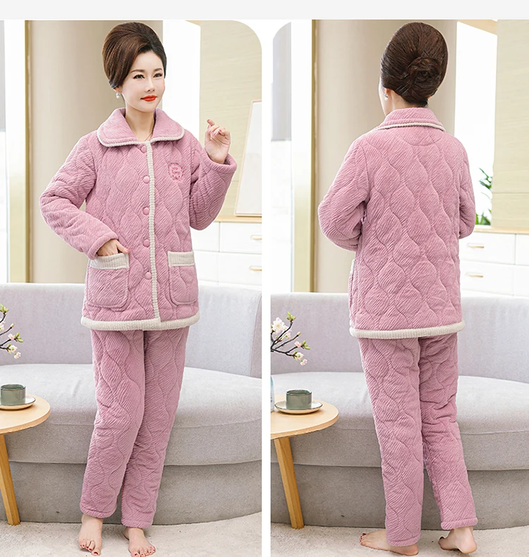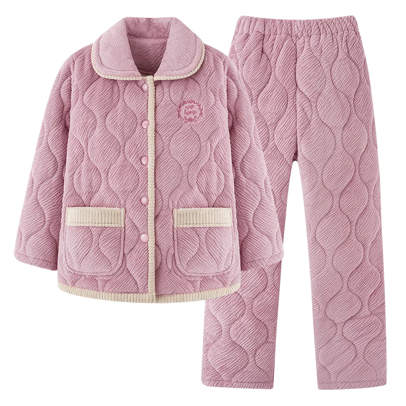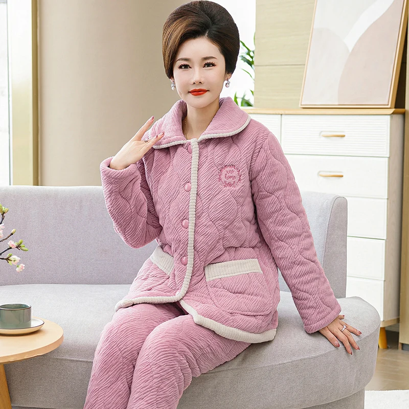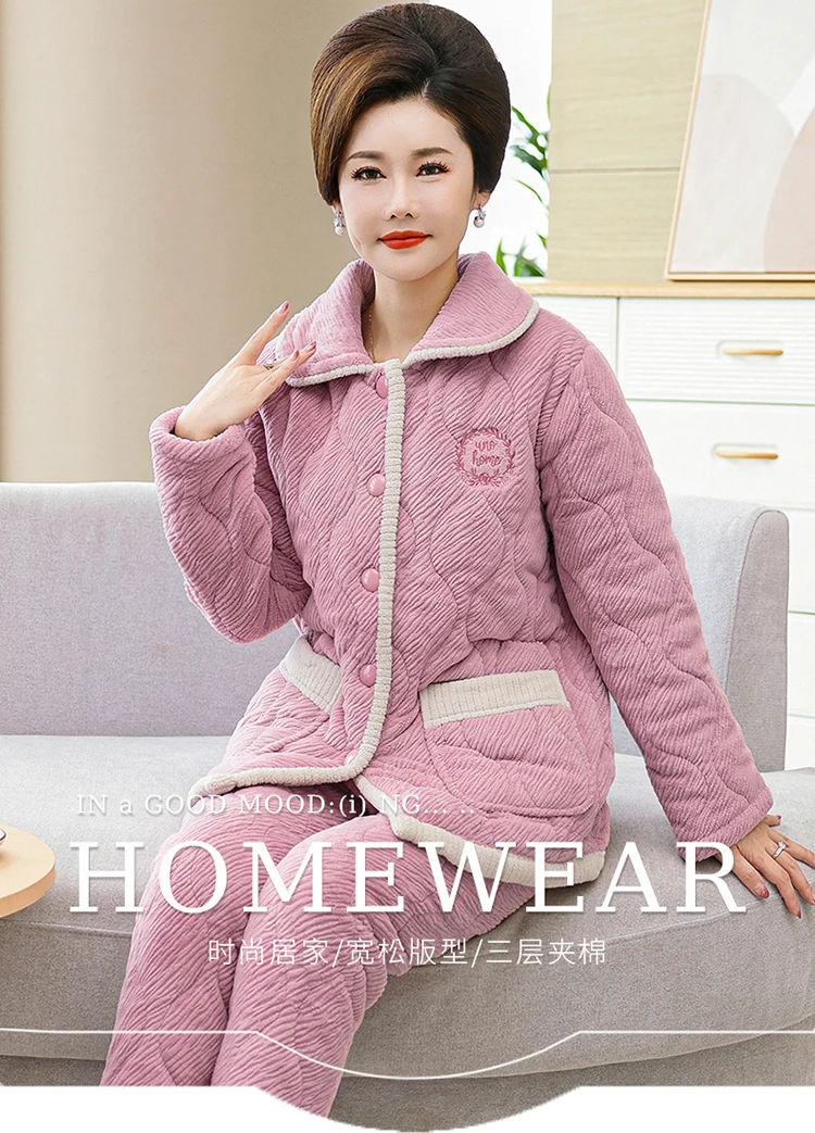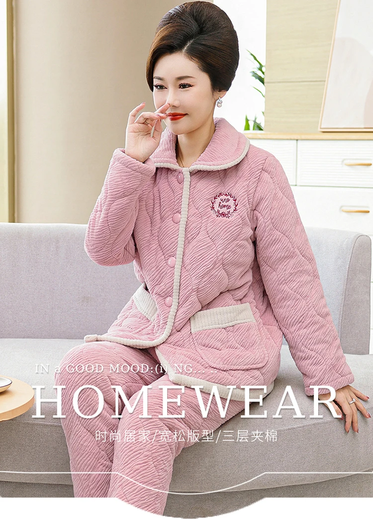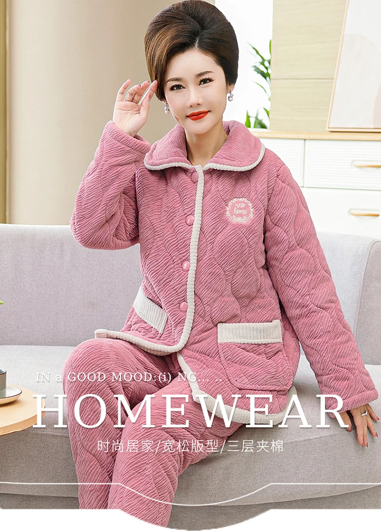 High Quality Winter Thick 3 Layer Clip Cotton Women Pajamas Sets Female Warm Sleepwear Home Clothing