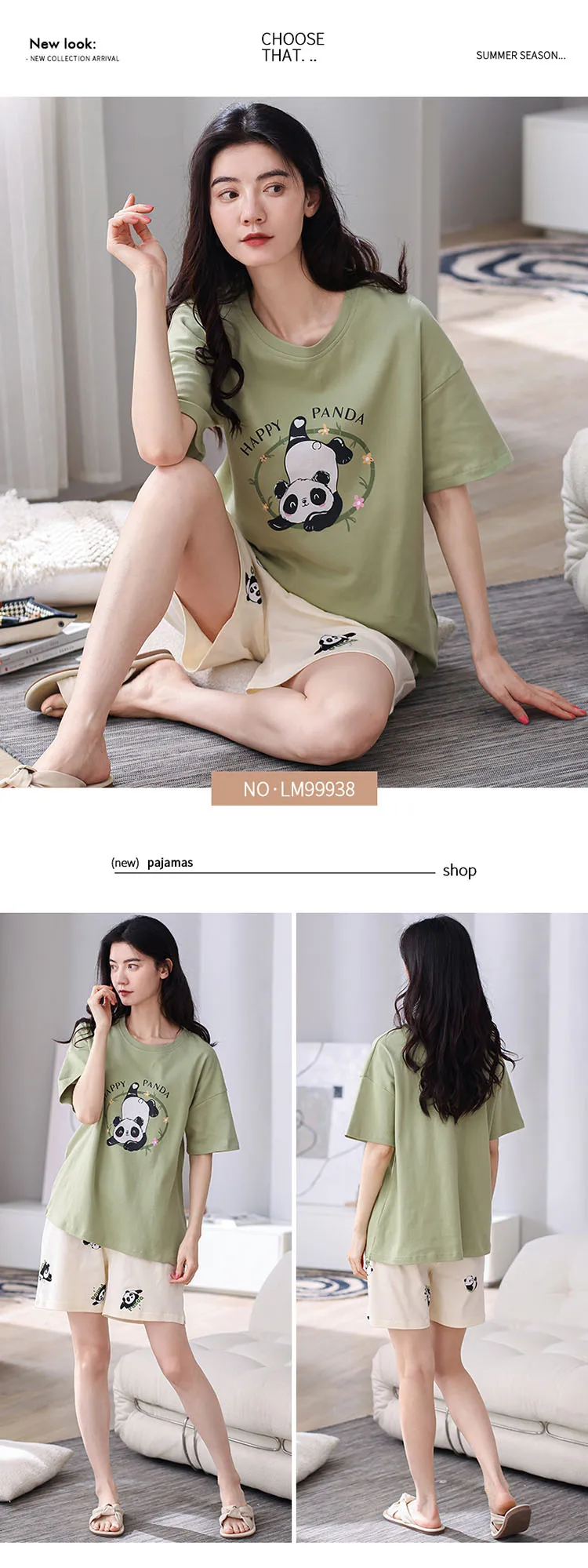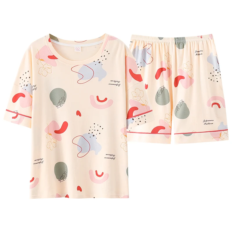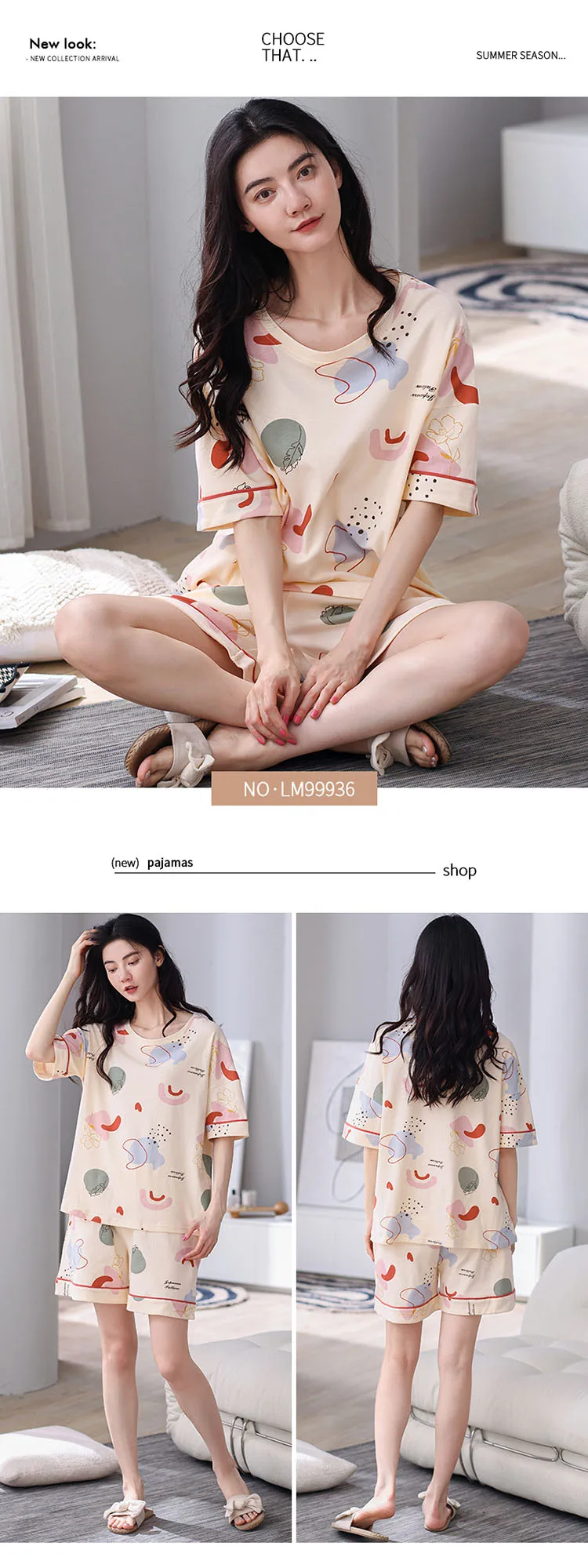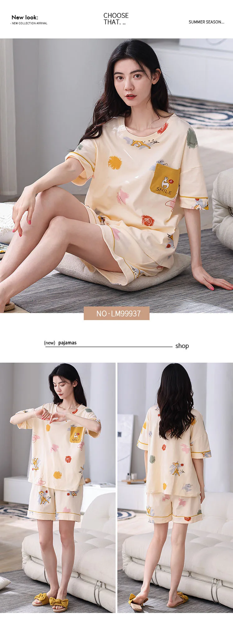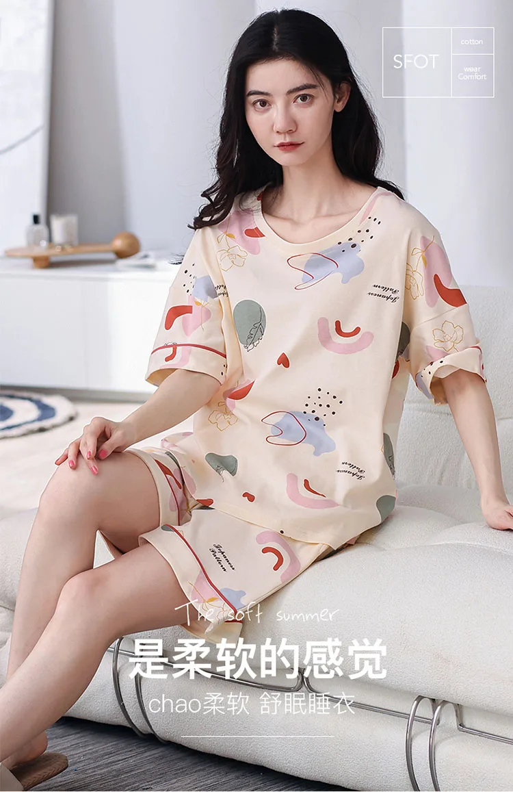 High Quality Women Pajamas Set 100% Cotton Women Sleepwear Short Sleeve Short Pants Female Leisure Homewear