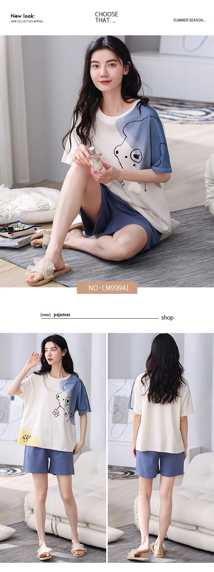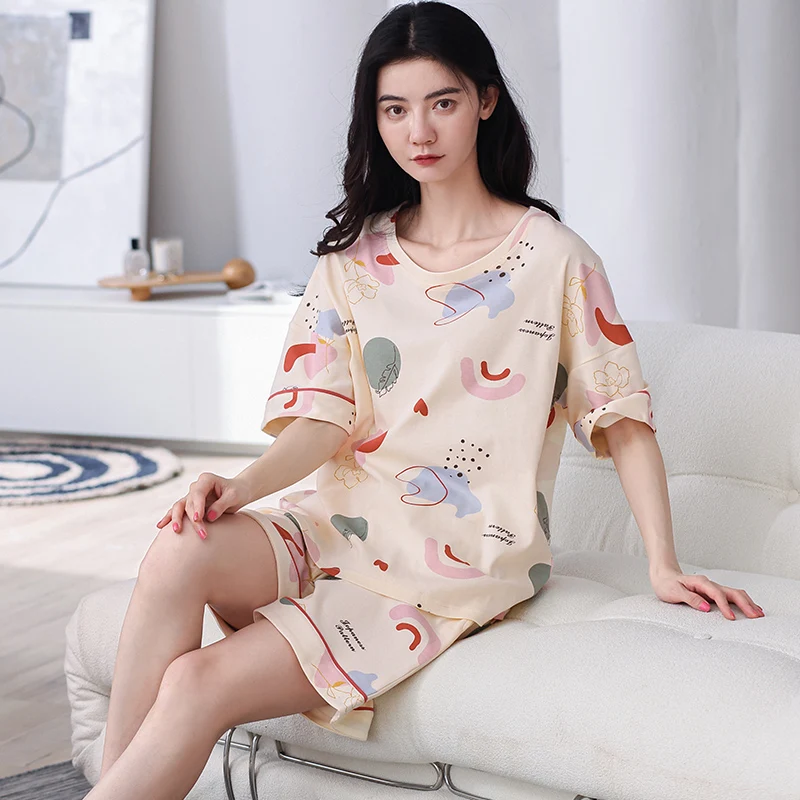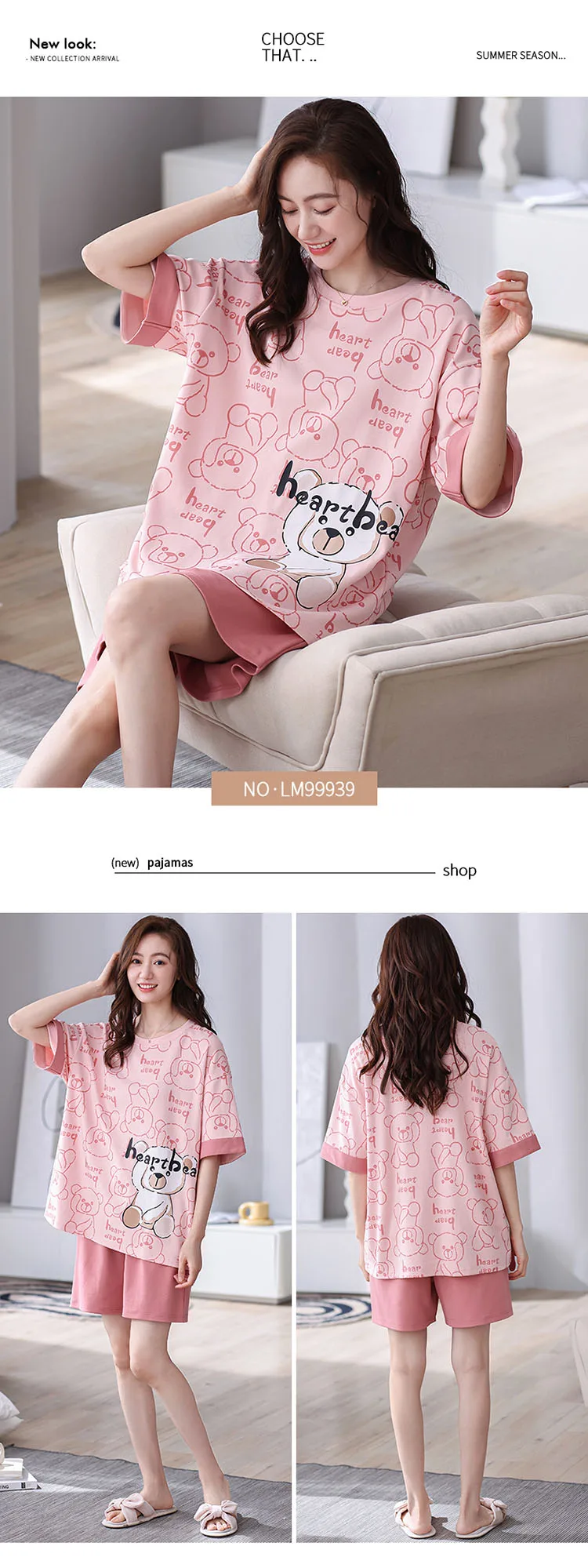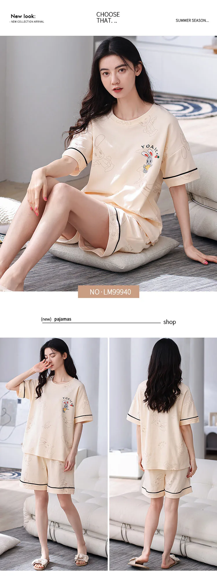 High Quality Women Pajamas Set 100% Cotton Women Sleepwear Short Sleeve Short Pants Female Leisure Homewear