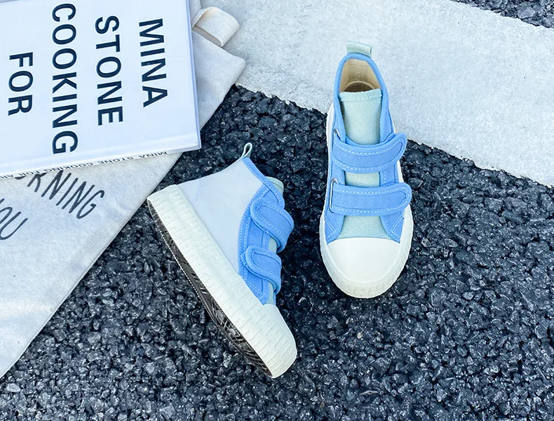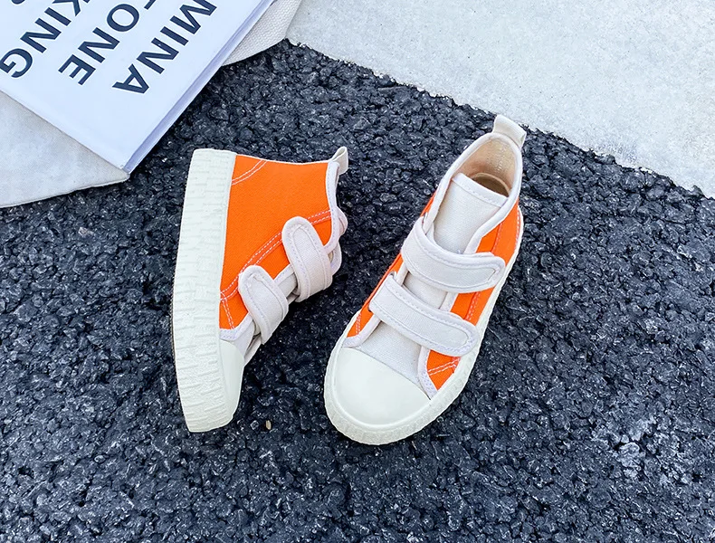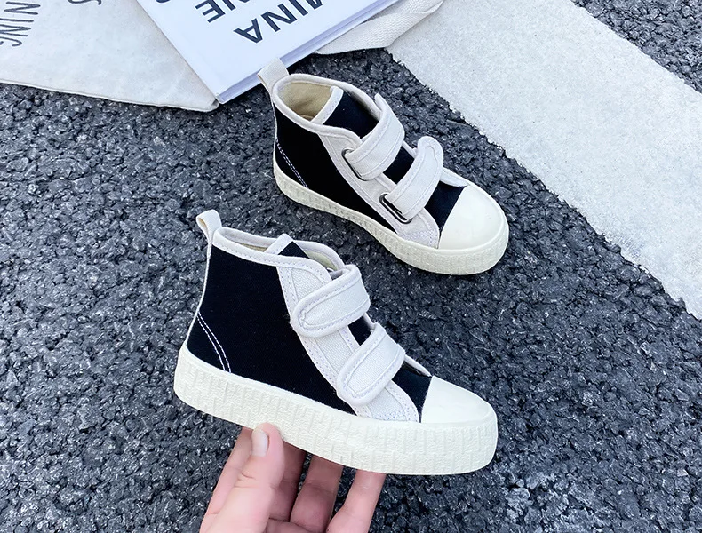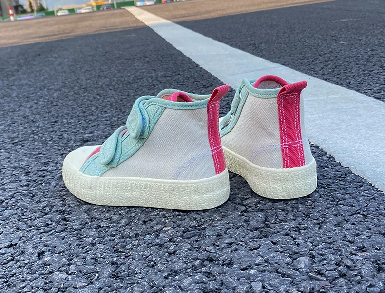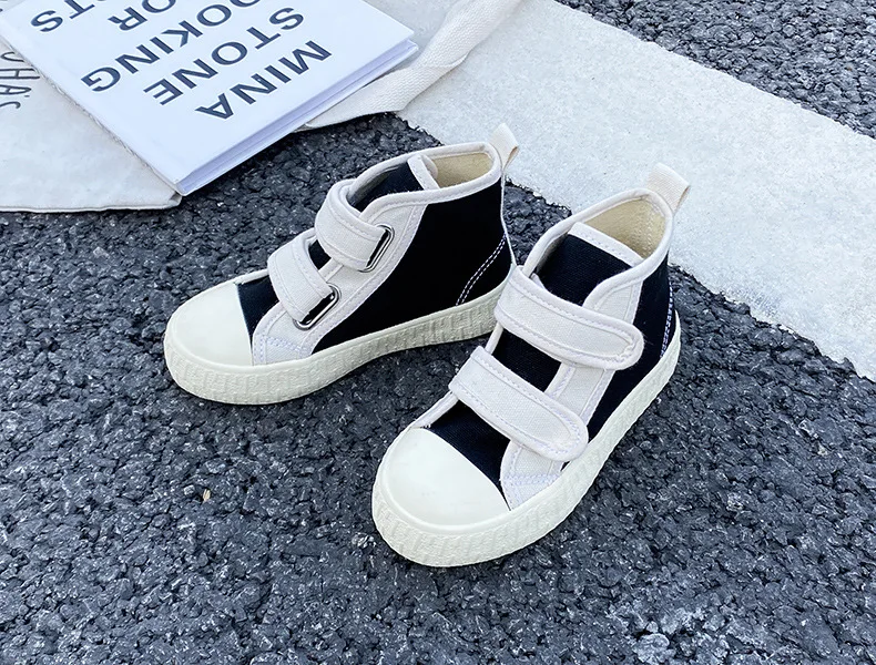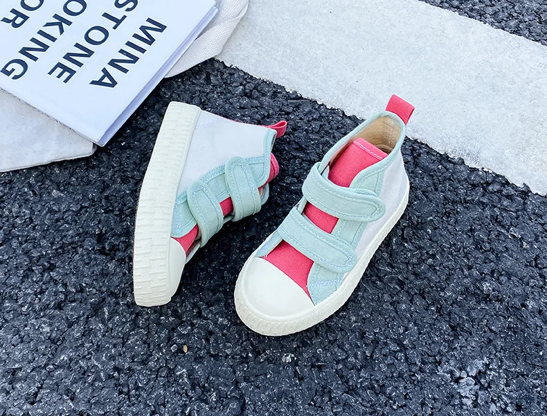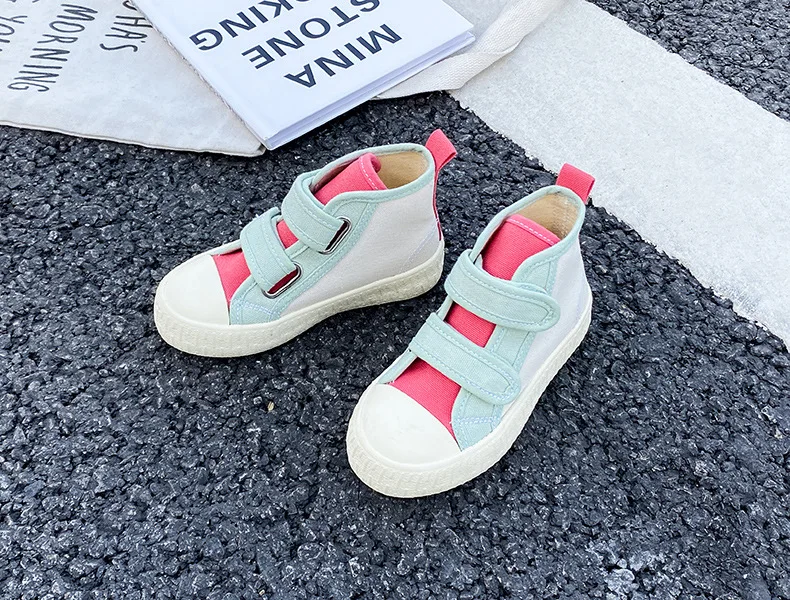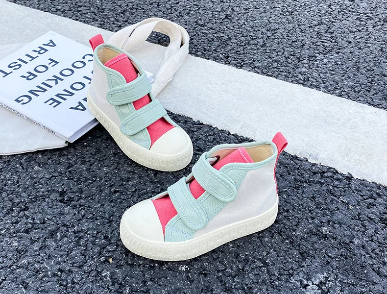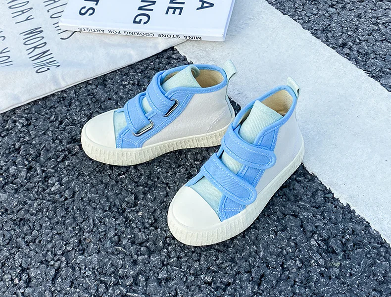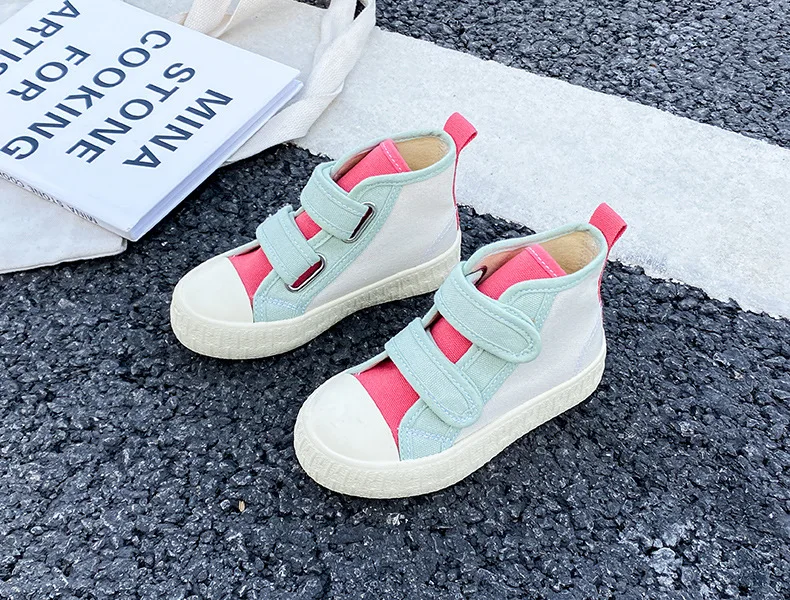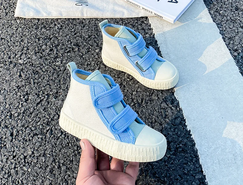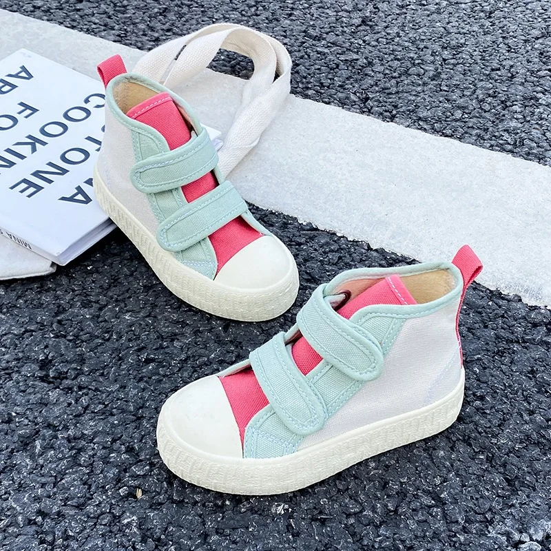 High Top Canvas Shoes for Boys Girls Trend Board Shoes Hook Loop Children Casual Sneakers Color Matching Kids Flat Shoes Trainer