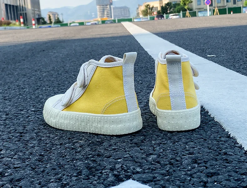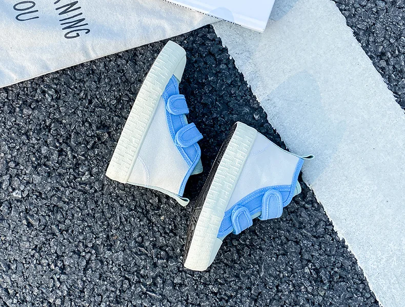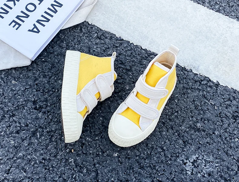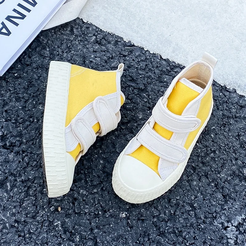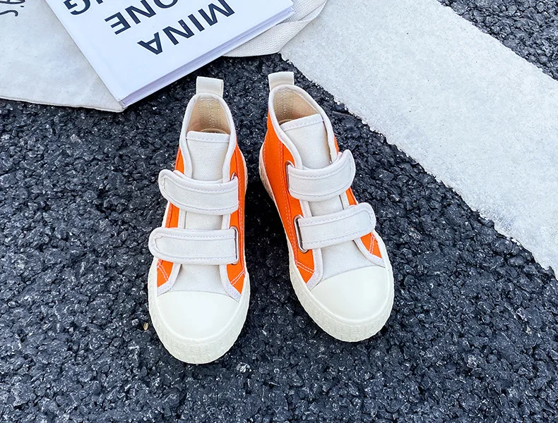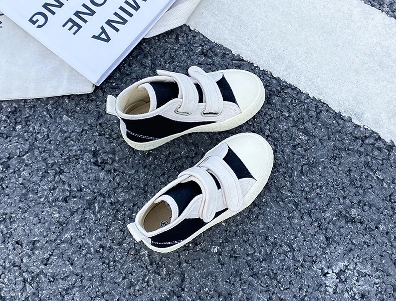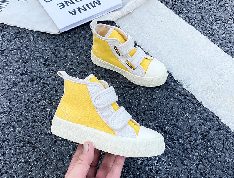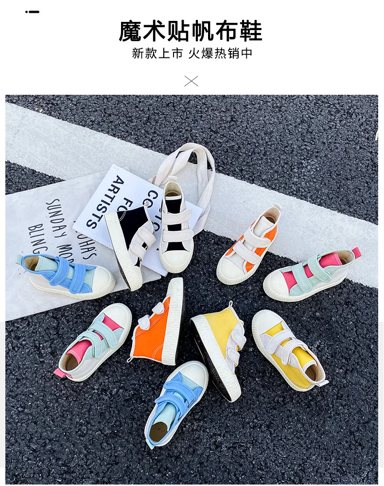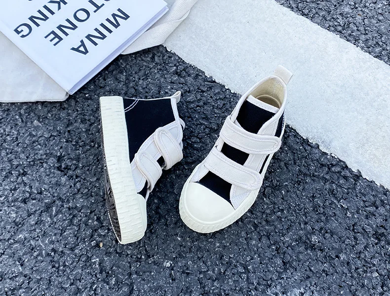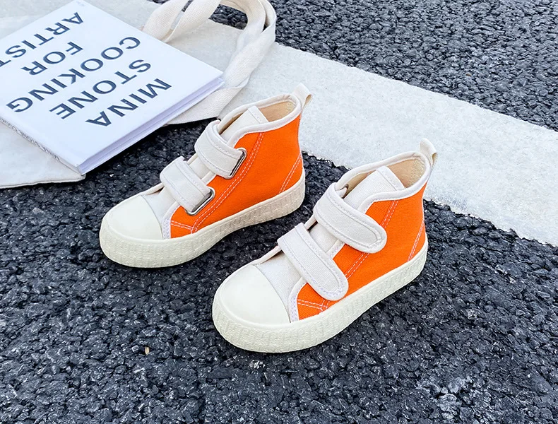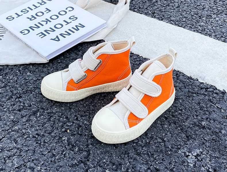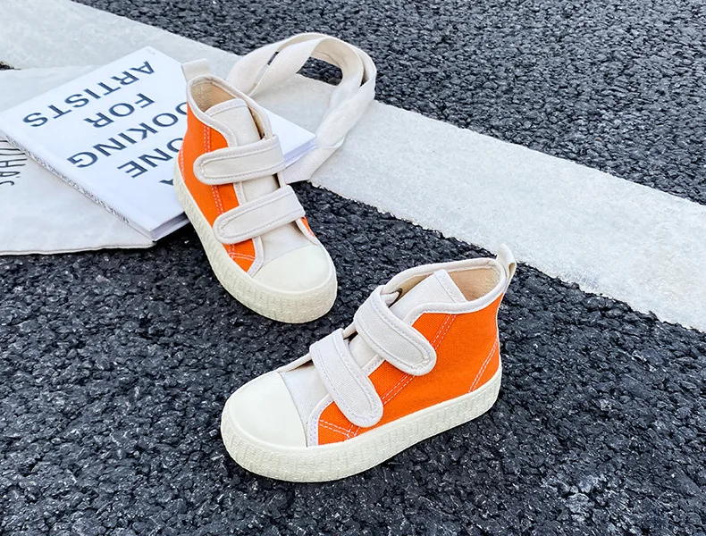 High Top Canvas Shoes for Boys Girls Trend Board Shoes Hook Loop Children Casual Sneakers Color Matching Kids Flat Shoes Trainer