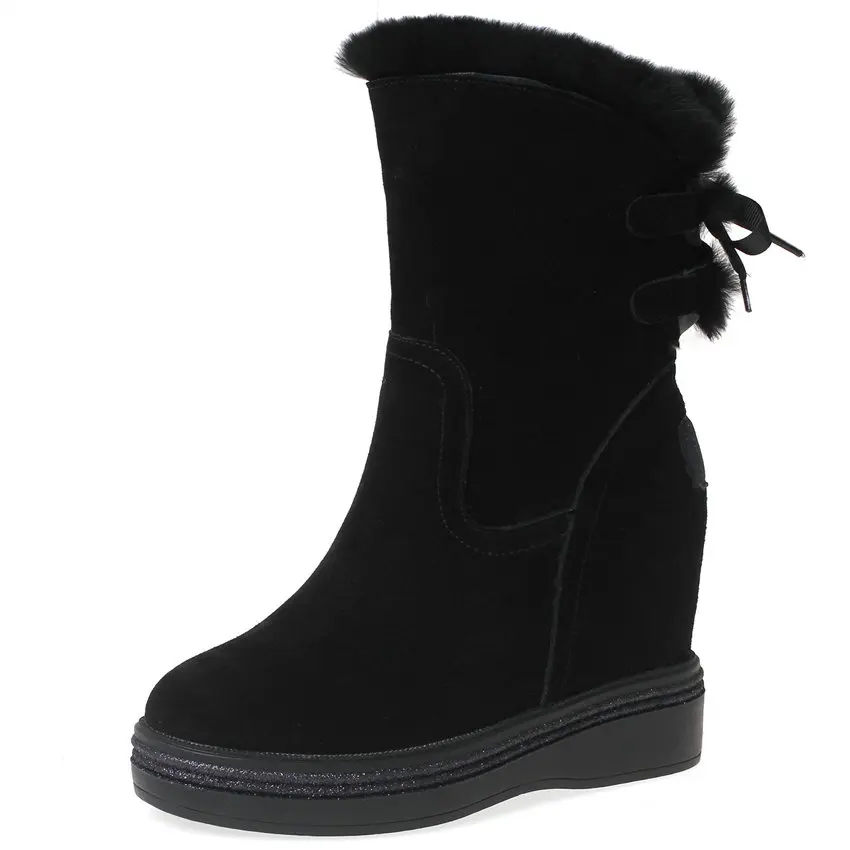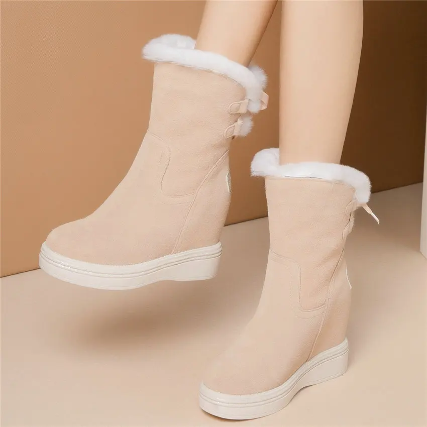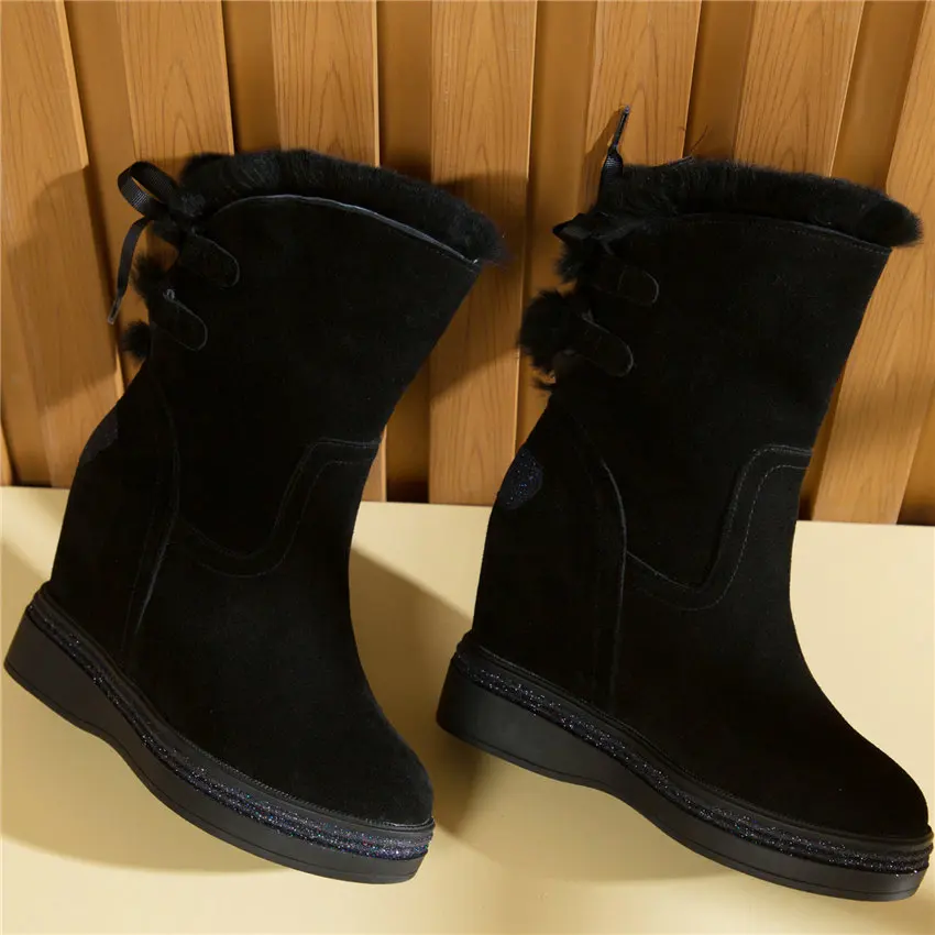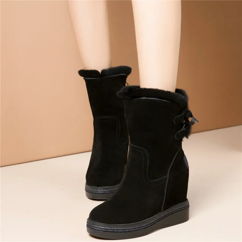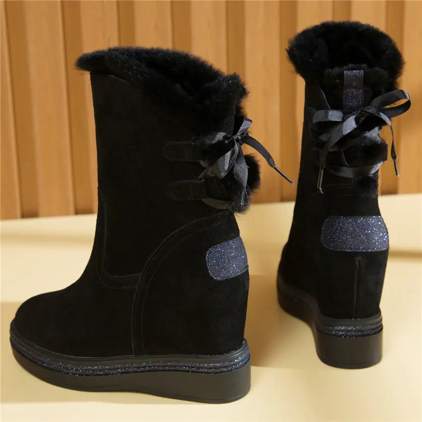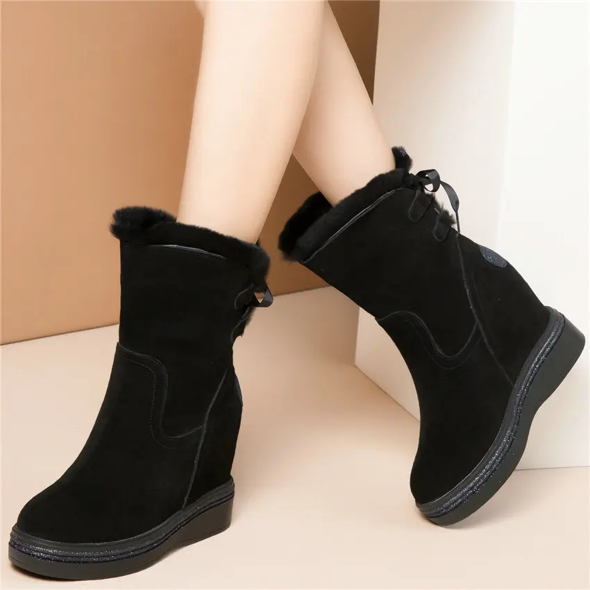 High Top Creepers Women Genuine Leather Hidden Wedges High Heel Ankle Boots Female Winter Warm Round Toe Pumps Shoe Casual Shoes