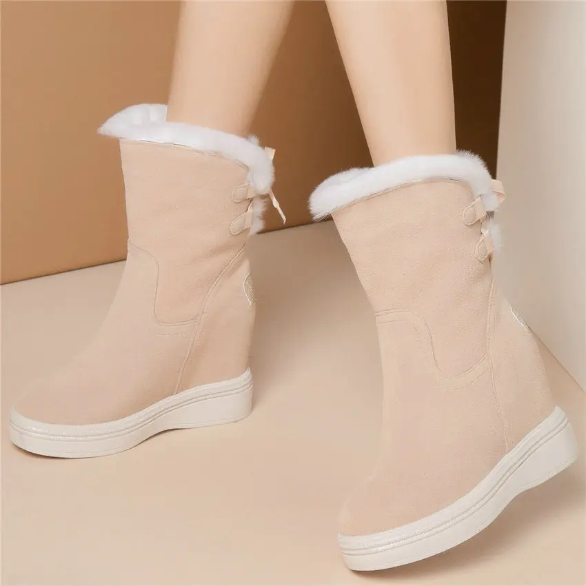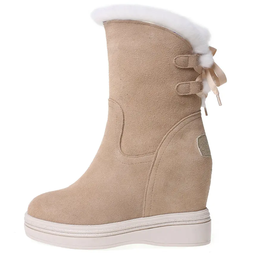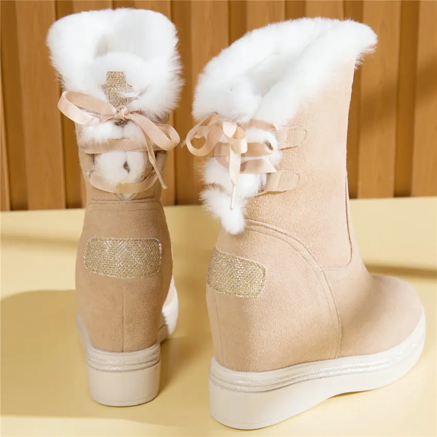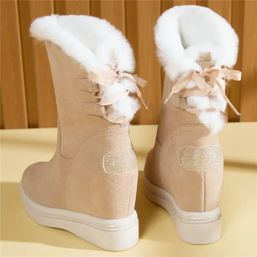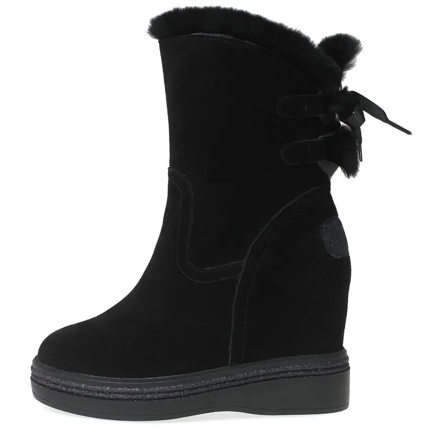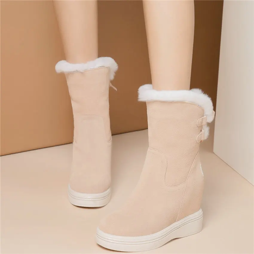 High Top Creepers Women Genuine Leather Hidden Wedges High Heel Ankle Boots Female Winter Warm Round Toe Pumps Shoe Casual Shoes