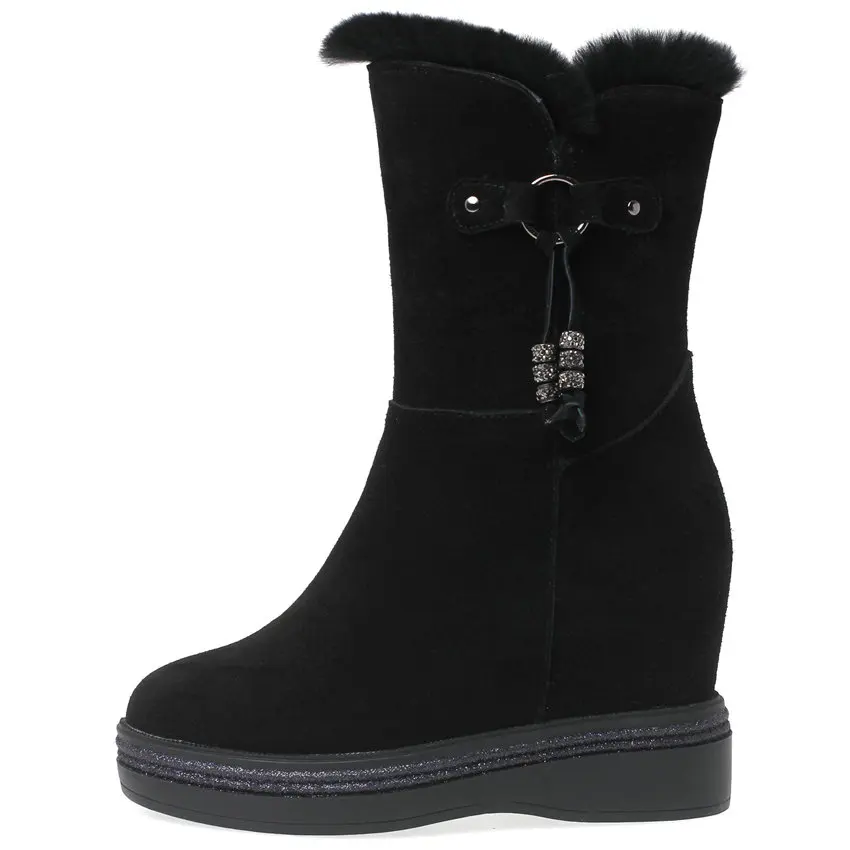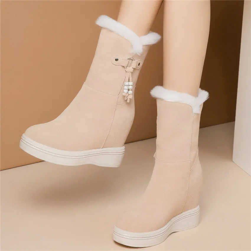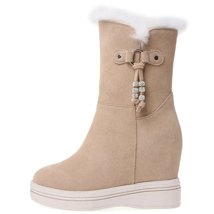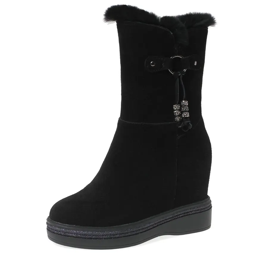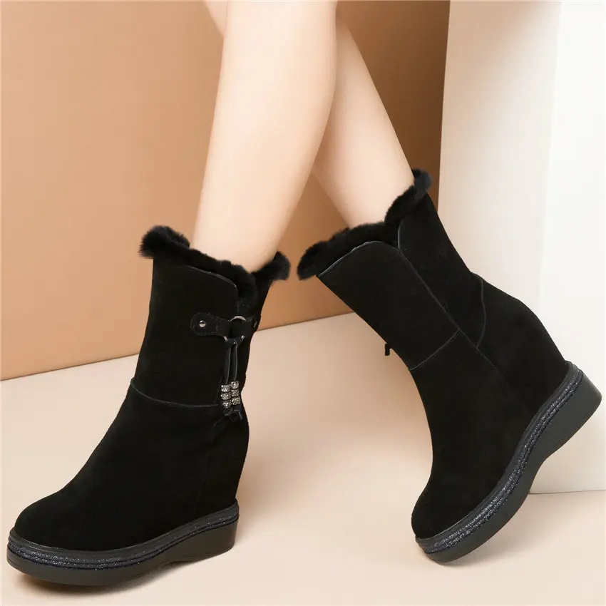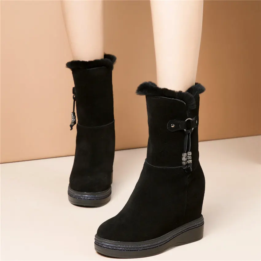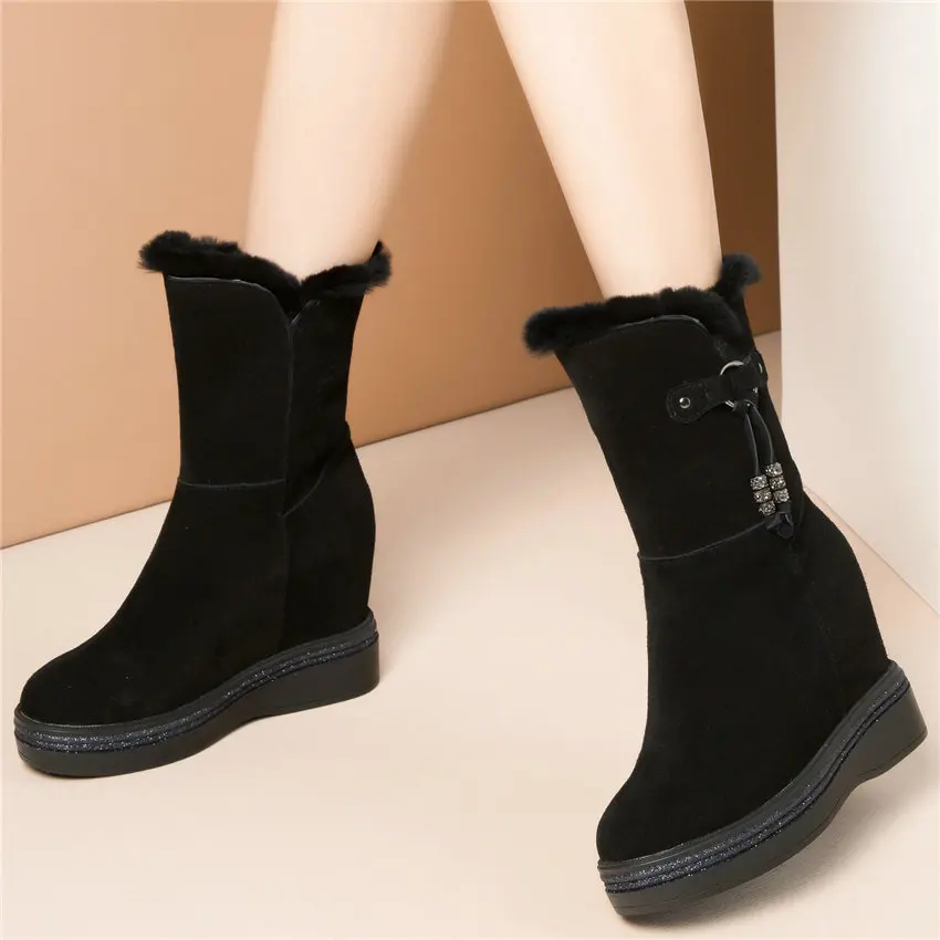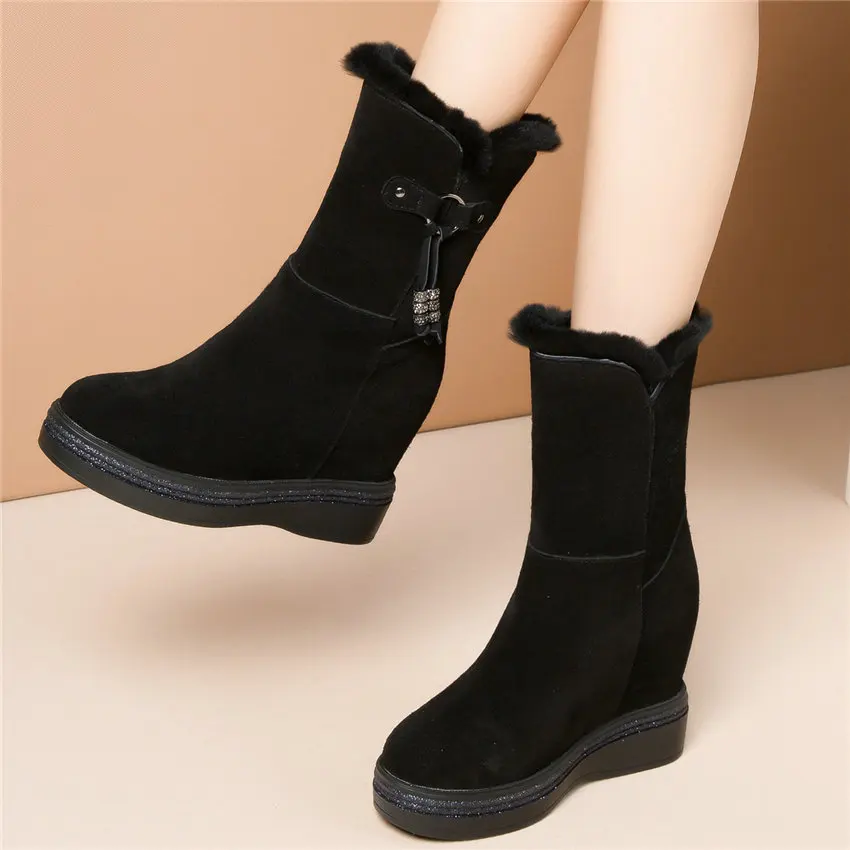 High Top Creepers Women Genuine Leather Hidden Wedges High Heel Snow Boots Female Winter Warm Round Toe Pumps Shoe Casual Shoes