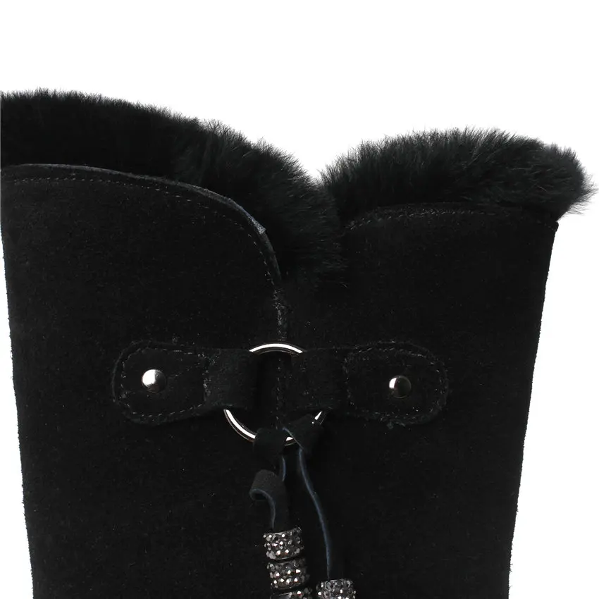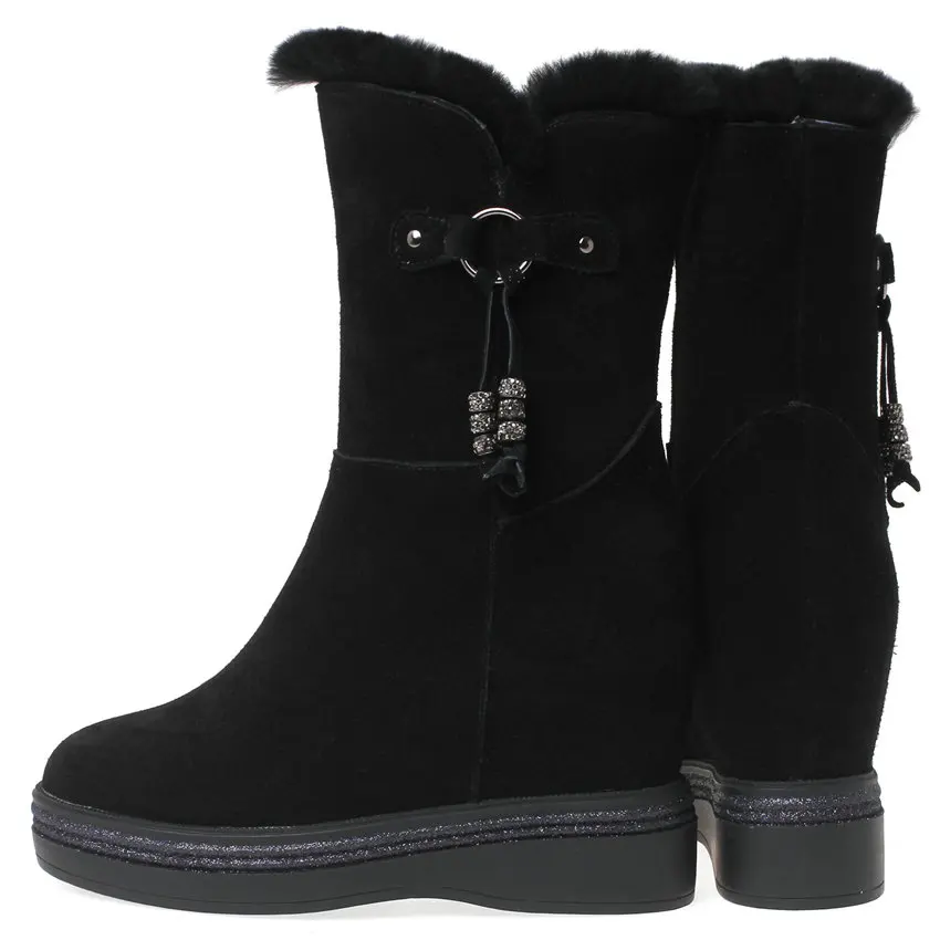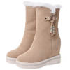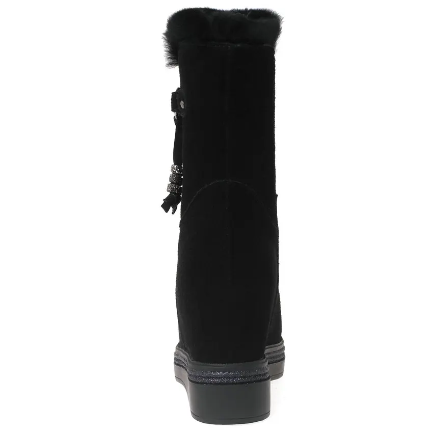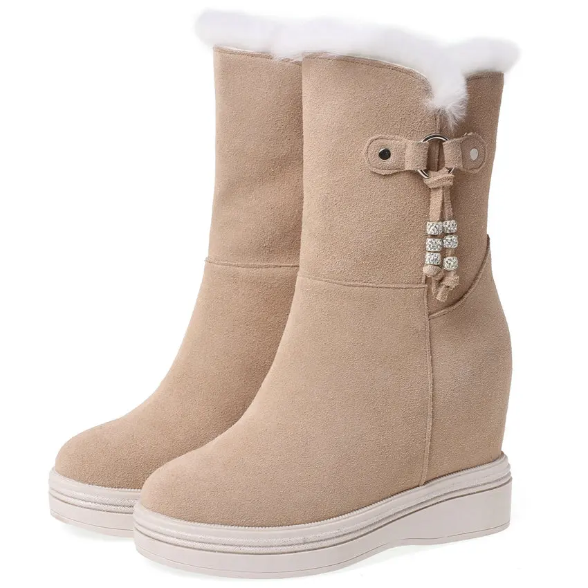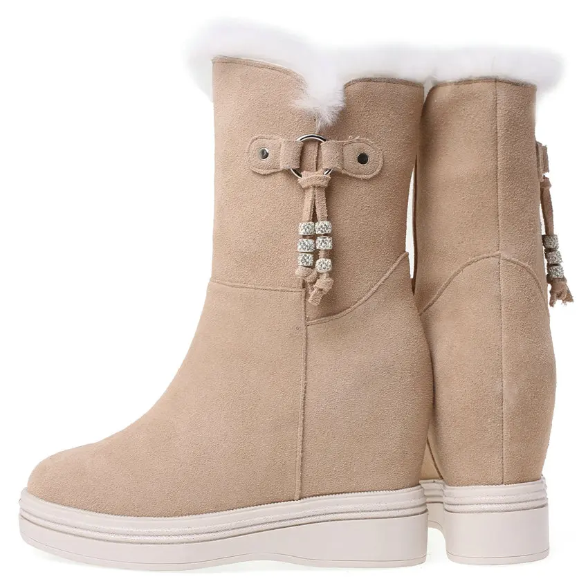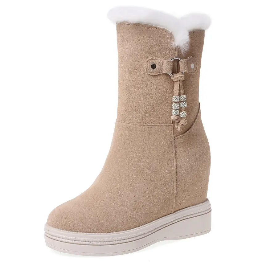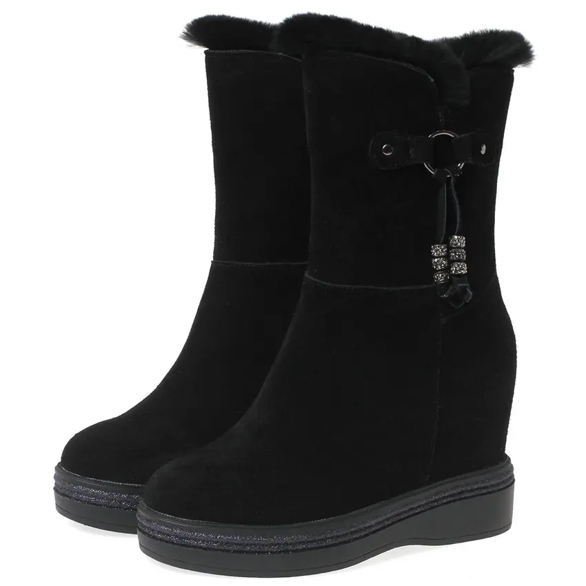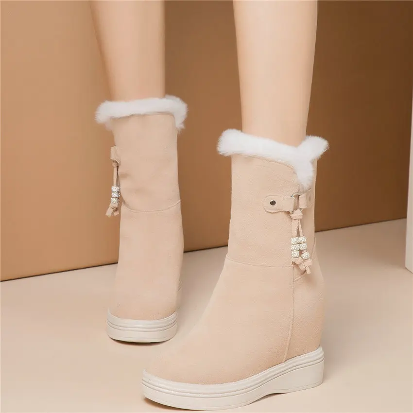 High Top Creepers Women Genuine Leather Hidden Wedges High Heel Snow Boots Female Winter Warm Round Toe Pumps Shoe Casual Shoes