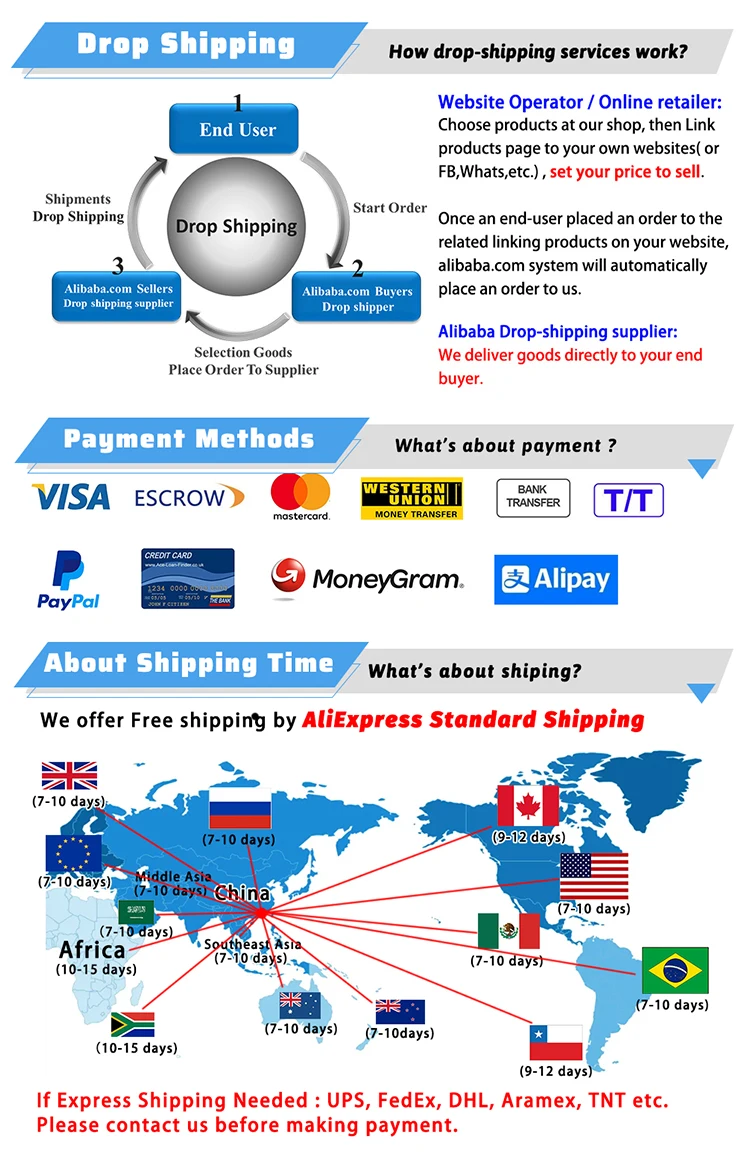 Packages from our warehouse in China will be shipped by ePacket or EMS depending on the weight and size of the product. Packages shipped from our US warehouse are shipped through USPS.