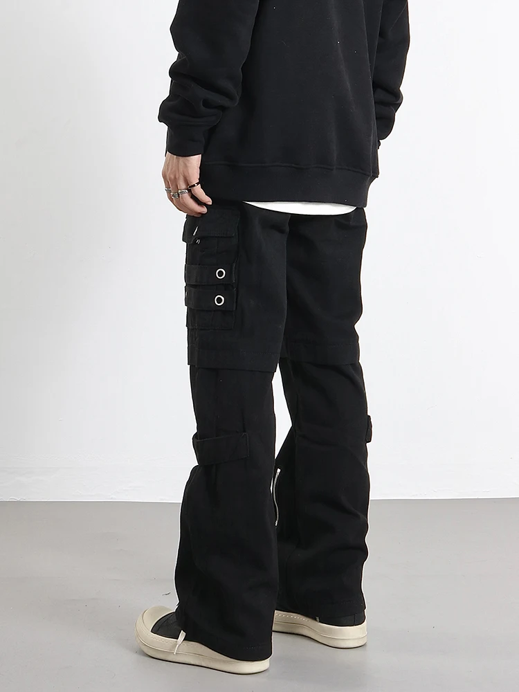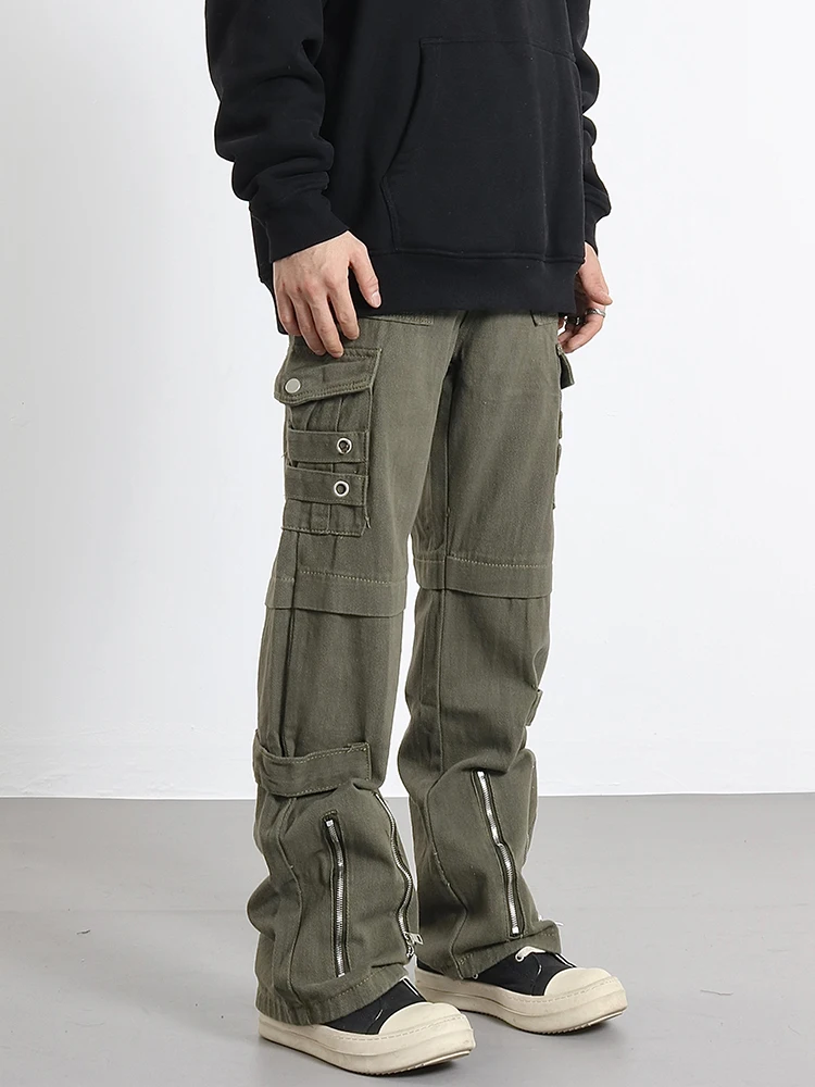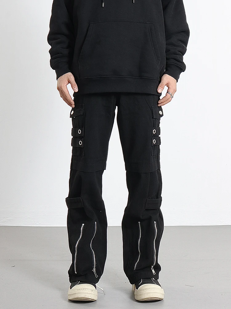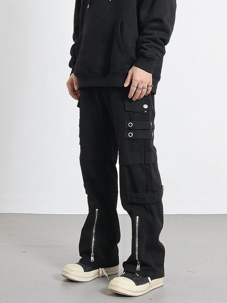 Hip Hip Pants Men Bottom Zipper Cargo Pants Streetwear Side Pockets Harajuku Joggers Unisex Baggy Loose Straight Cotton Trousers