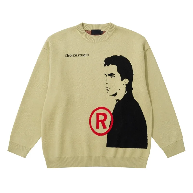 Hip Hop Anime Knitted Oversized Sweater Mens Autumn Winter O-neck Long Sleeve Pullover Streetwear New Loose Sweaters Clothing