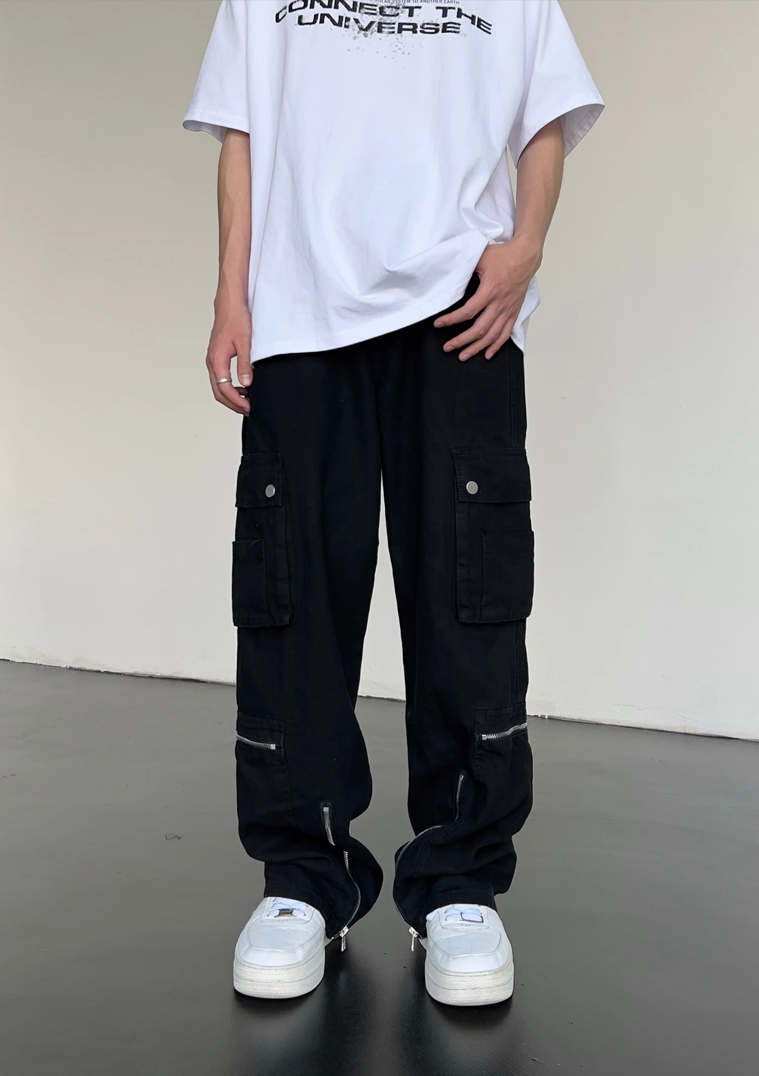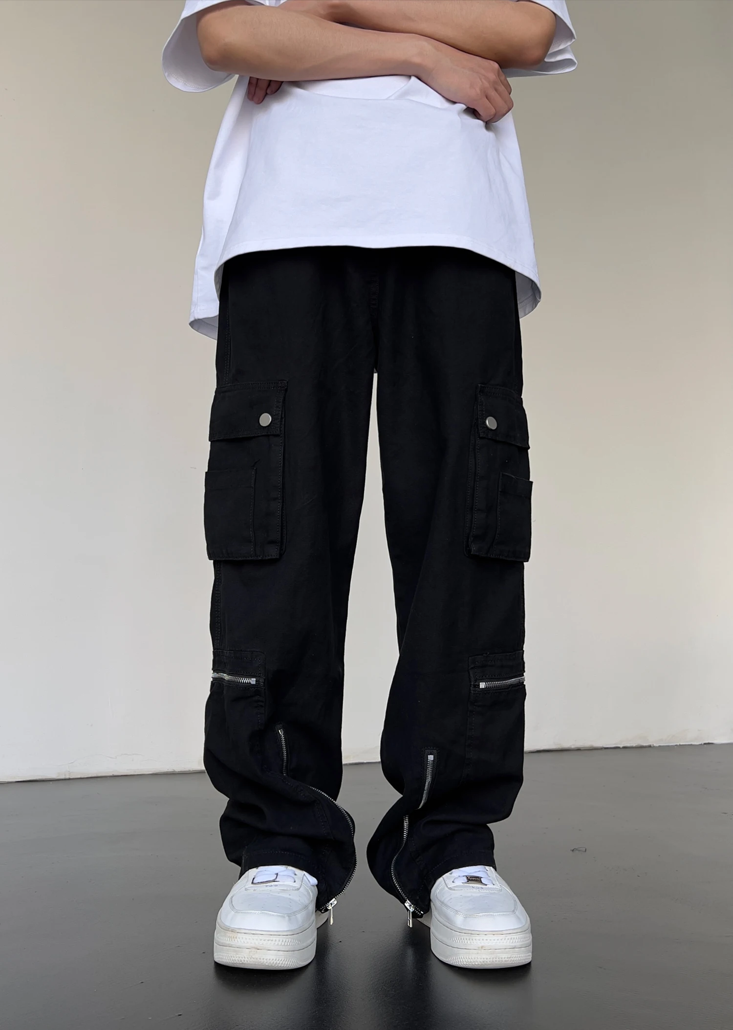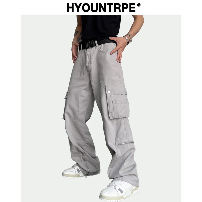 Hip Hop Cargo Pants Mens Baggy Side Pockets Joggers Harajuku Streetwear Unisex Casual Bottom Zipper Loose Straight Trousers