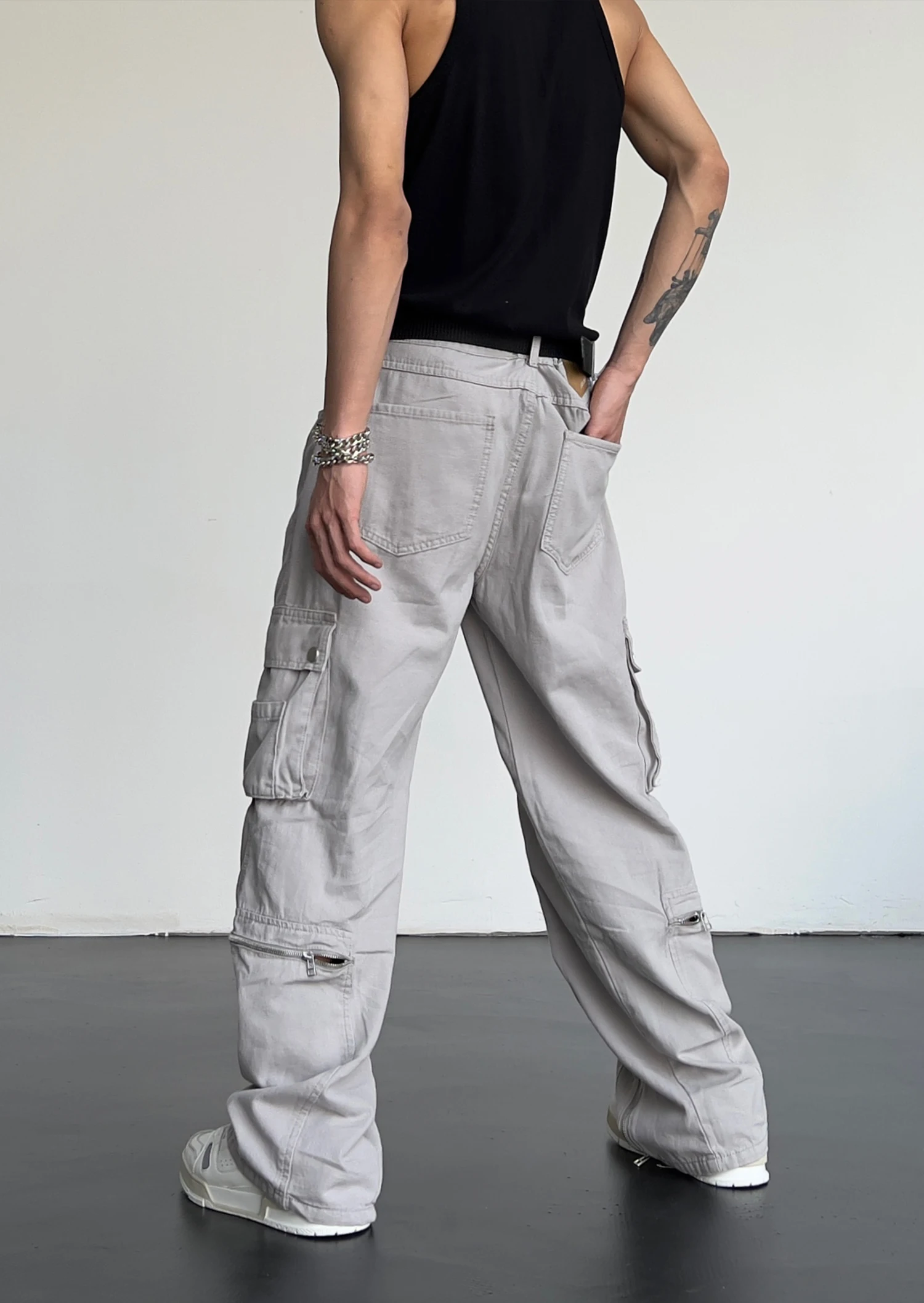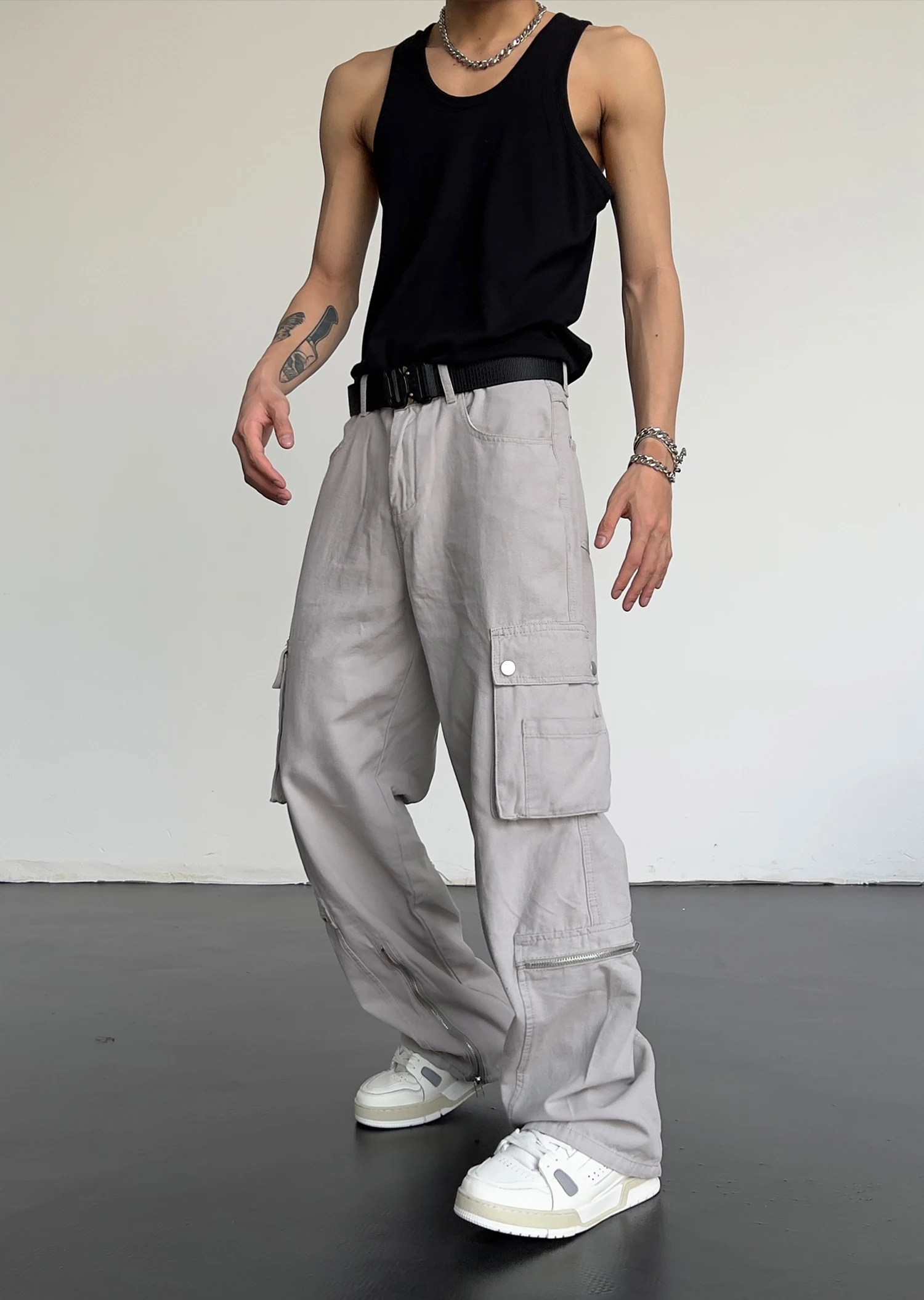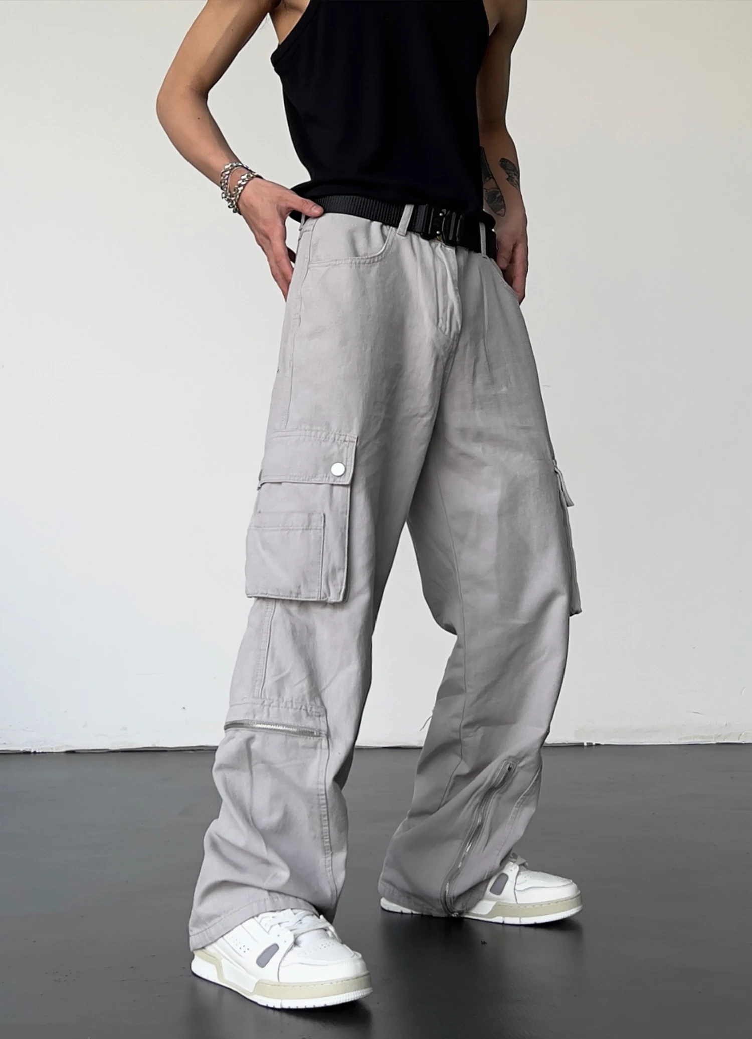 Hip Hop Cargo Pants Mens Baggy Side Pockets Joggers Harajuku Streetwear Unisex Casual Bottom Zipper Loose Straight Trousers