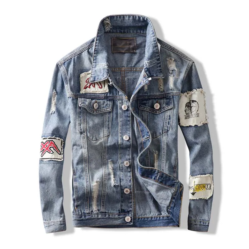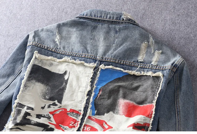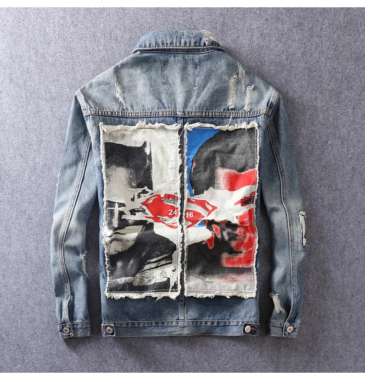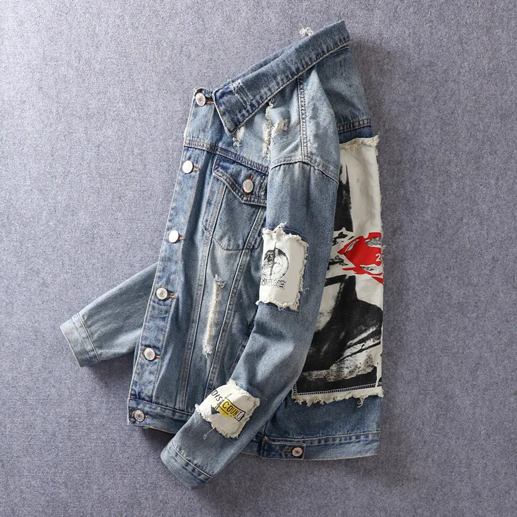 Hip Hop Fashion Printed Jeans Jacket Men Cotton Casual Streetwear Autumn New Denim Jacket Coat For Men
