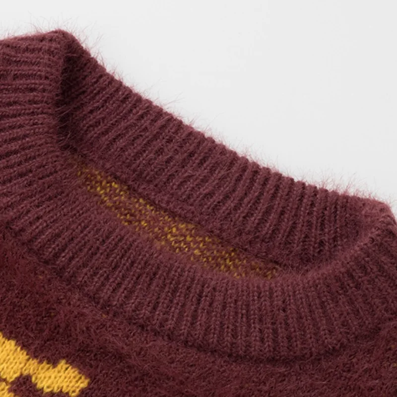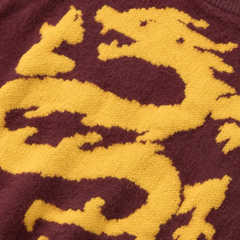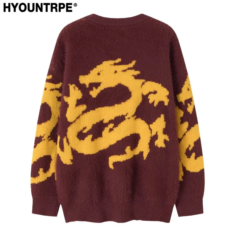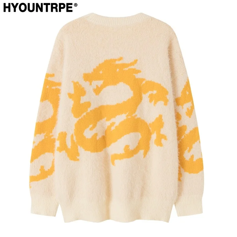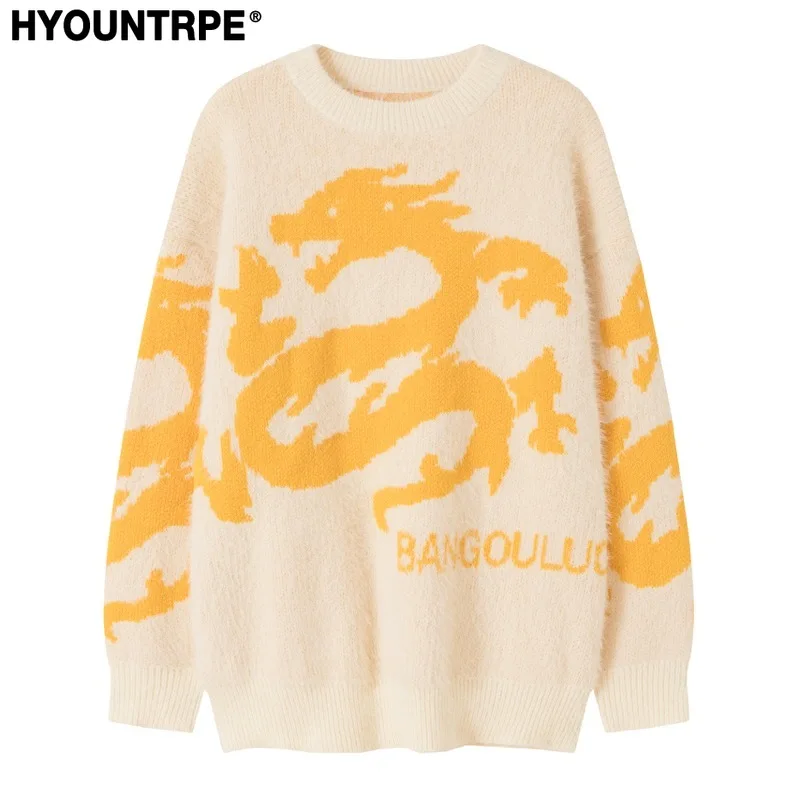 Hip Hop Knitted Sweater Men Winter O-neck Anime Chinese Dragon Pattern Pullover Streetwear Casual Loose Sweater Jumper Knitwear