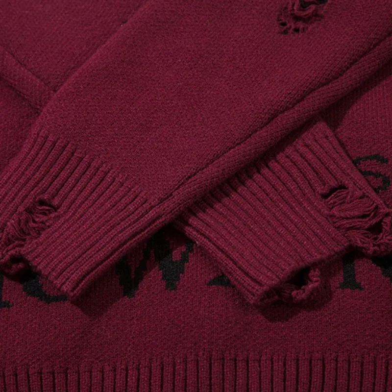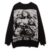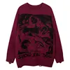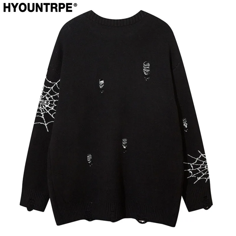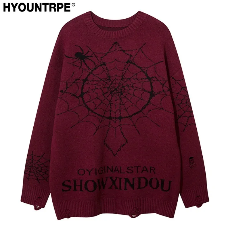 Hip Hop Knitted Sweater Men Winter O-neck Anime Spider Web Pattern Pullover Streetwear Casual Loose Sweater Warm Jumper Knitwear