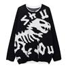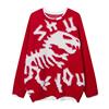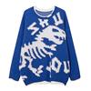 Hip Hop Knitted Sweater Mens O-neck Dinosaur Pattern Fake Two Pieces Pullover Streetwear Casual Loose Sweater Jumper Knitwear