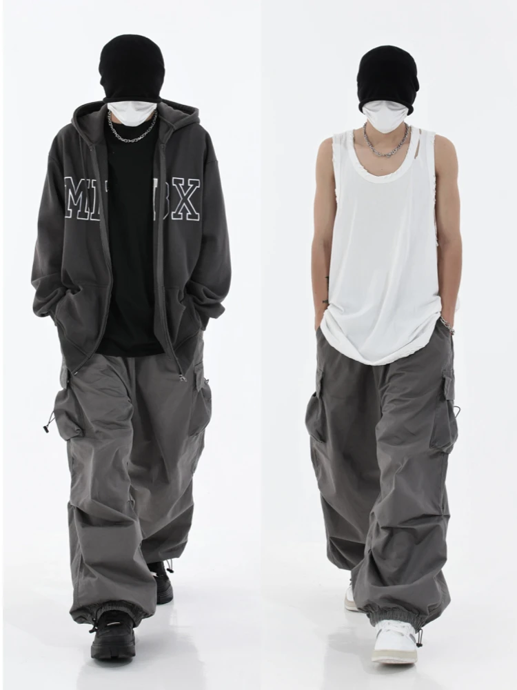 Hip Hop Loose Fit Elastic Waist Pants Fashion Side Pocket Pants Streetwear Mens New Spring Summer Casual Baggy Pants Joggers