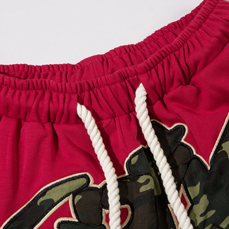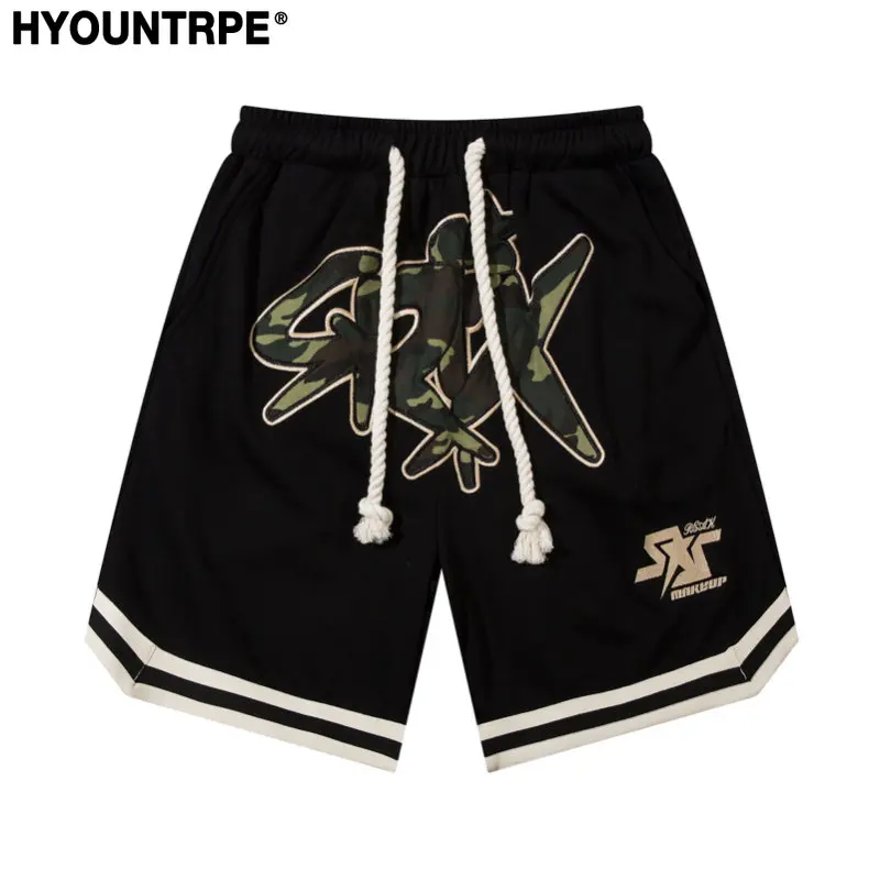 Hip Hop Loose Shorts Elastic Waist Pants Fashion Letter Embroidery Shorts Men Casual Drawstring Streetwear Sportswear Gym Shorts
