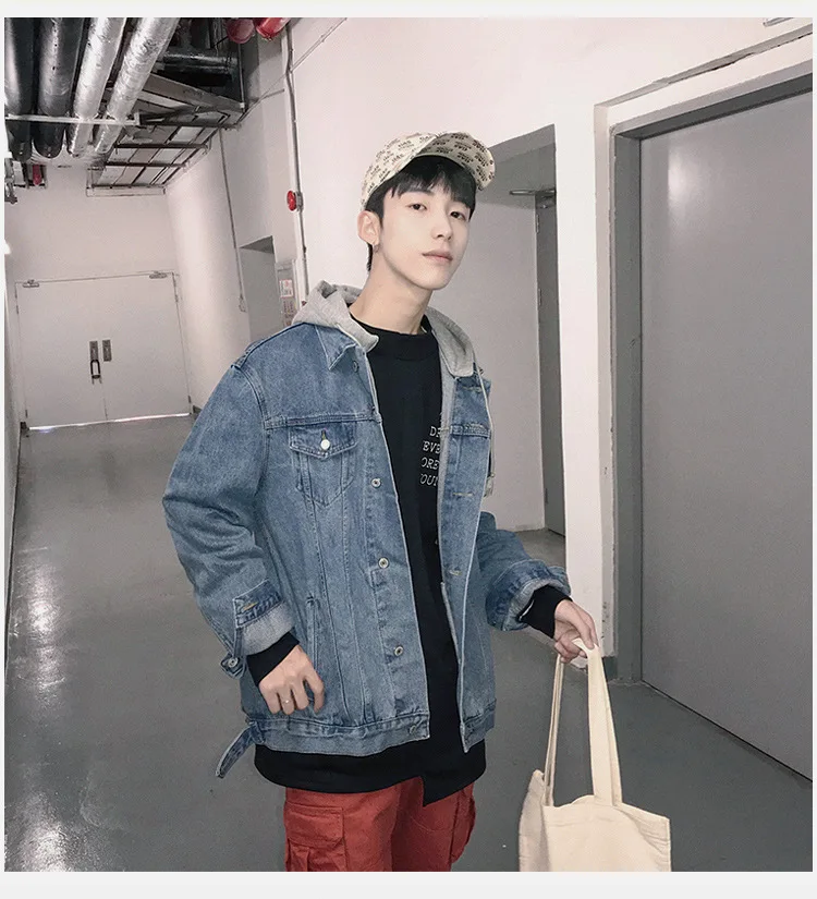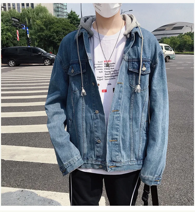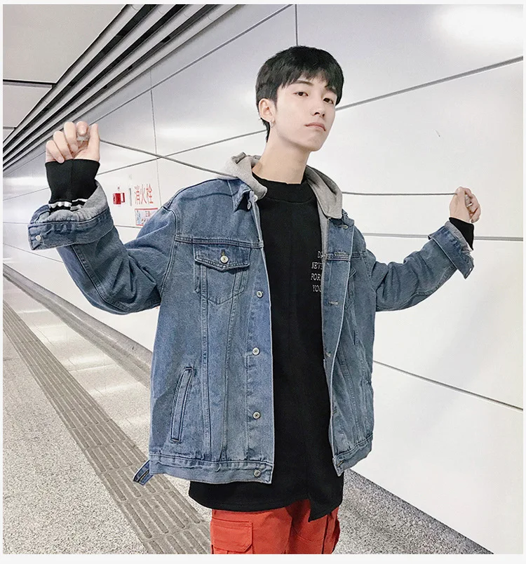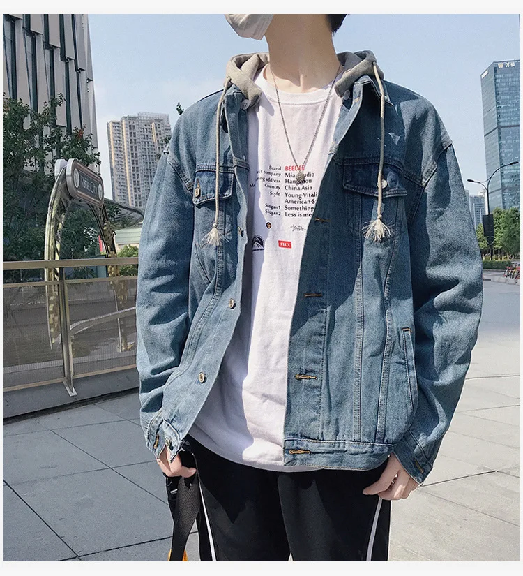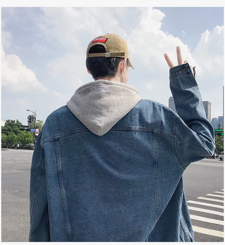 Hong Kong Style 2022 Teenagers Denim Jacket Male Loose Trend Korean Wild Hip-hop Denim Jacket Handsome Student Hooded Jacket