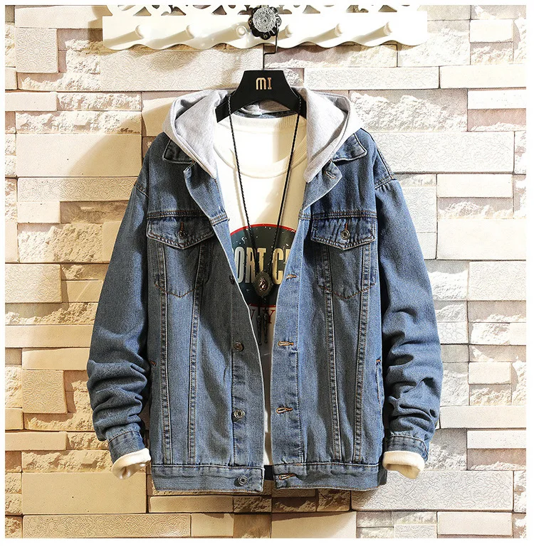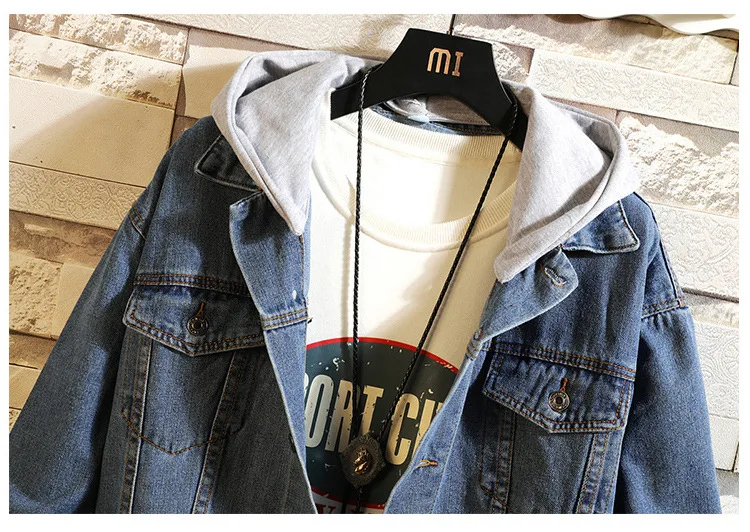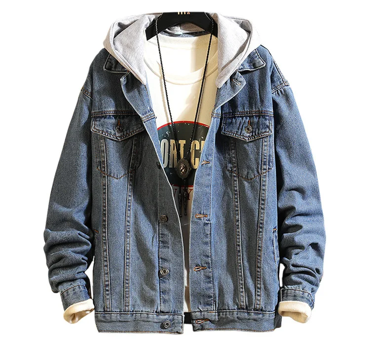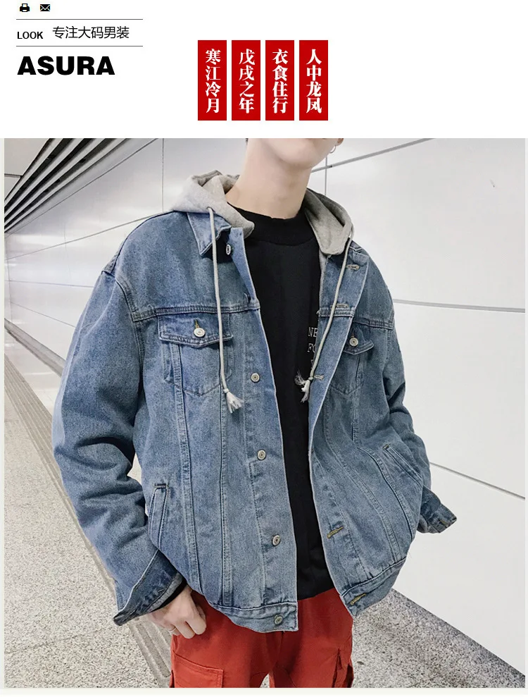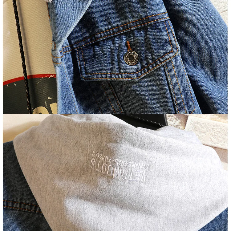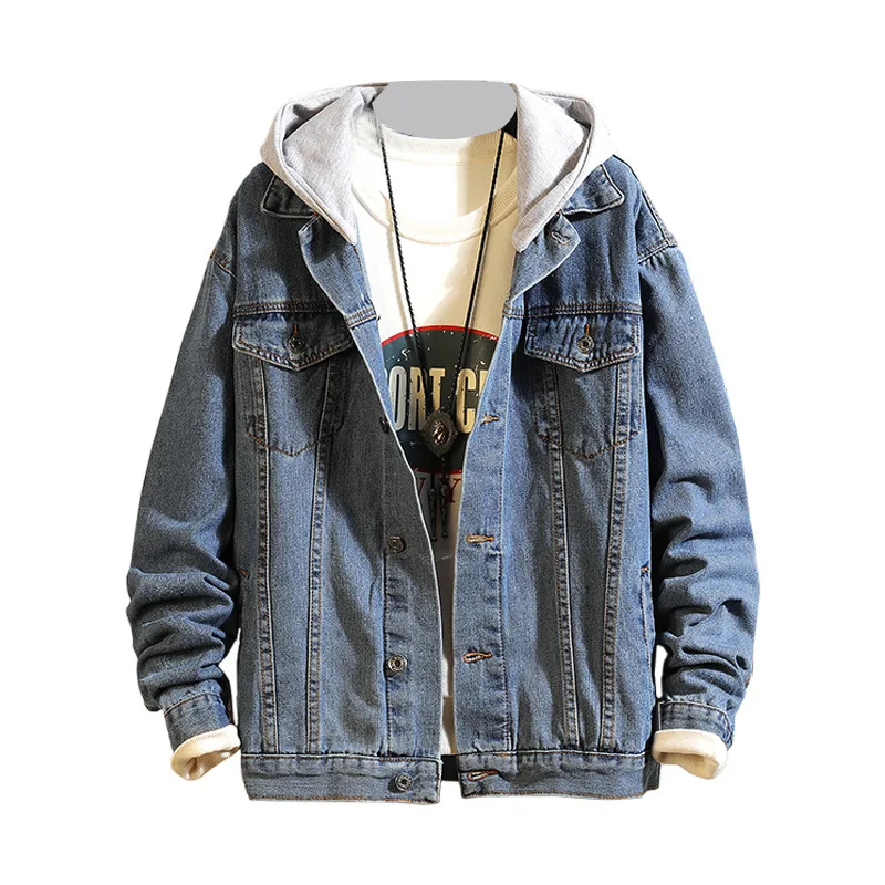 Hong Kong Style 2022 Teenagers Denim Jacket Male Loose Trend Korean Wild Hip-hop Denim Jacket Handsome Student Hooded Jacket