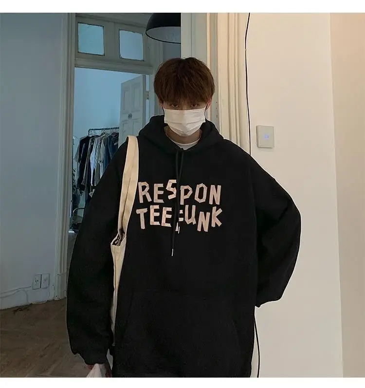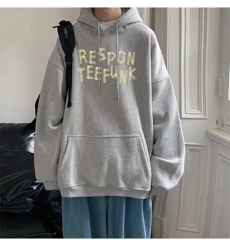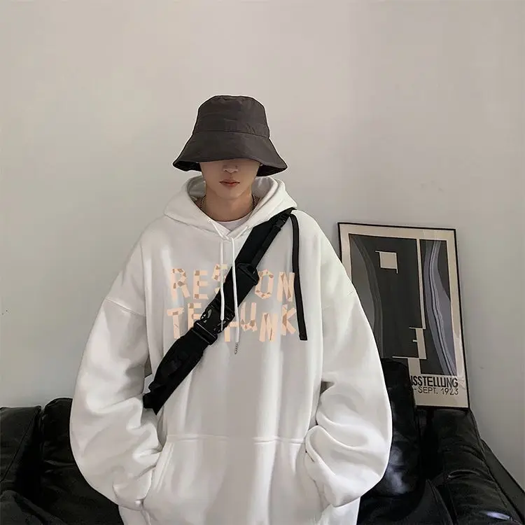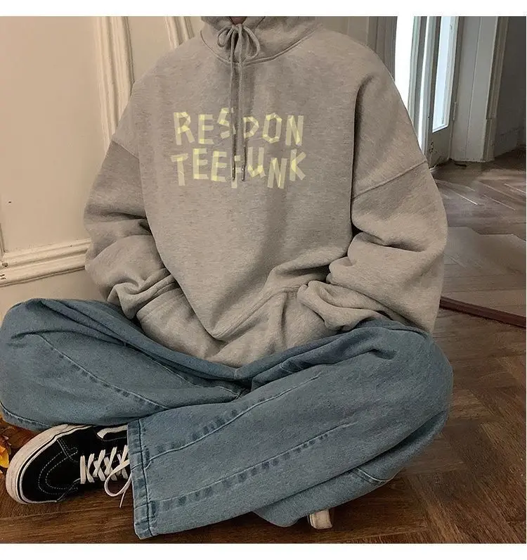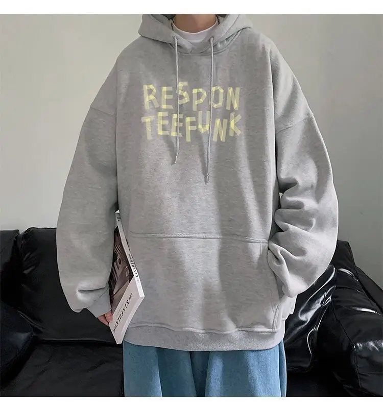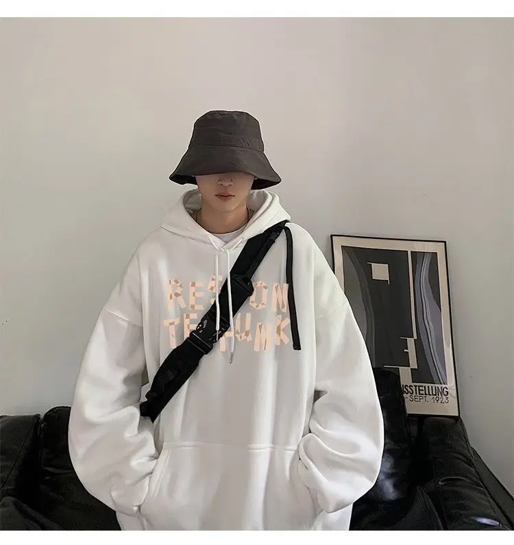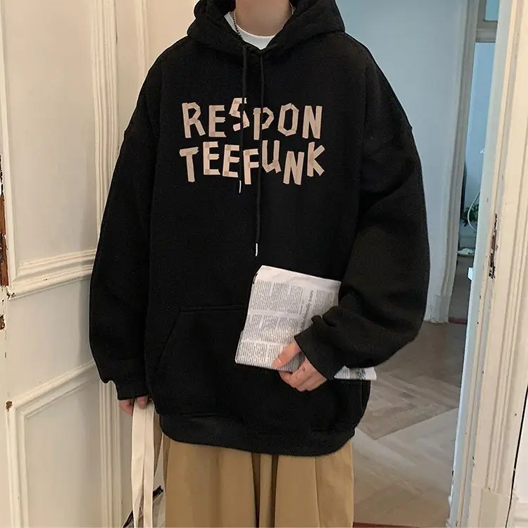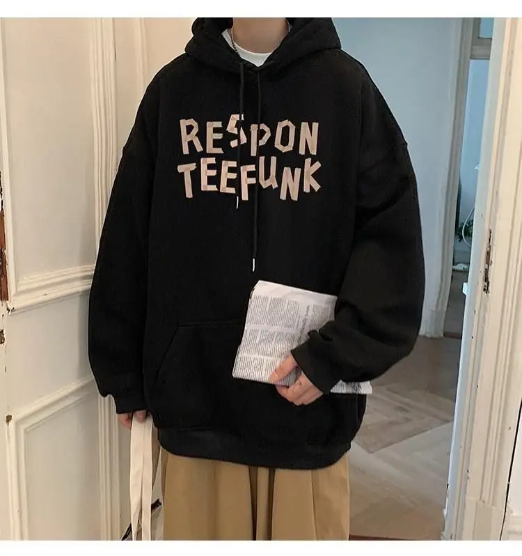 Hooded sweater for men’s loose fitting trend ins jacket for spring, autumn, and winter wear, thickened Hong Kong style plush