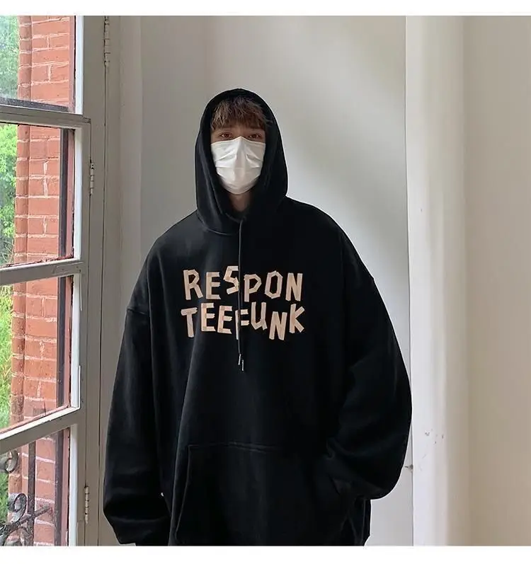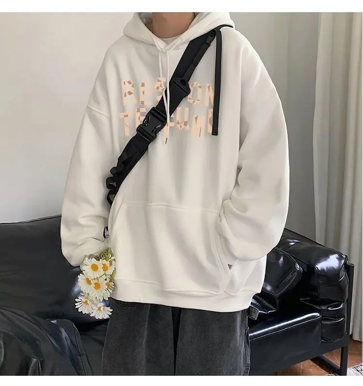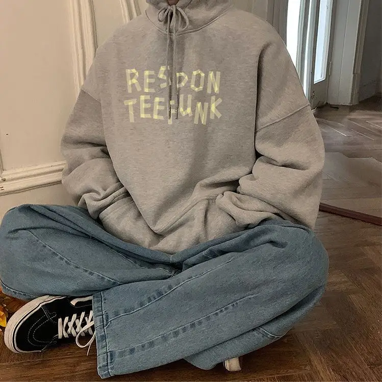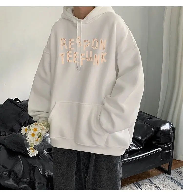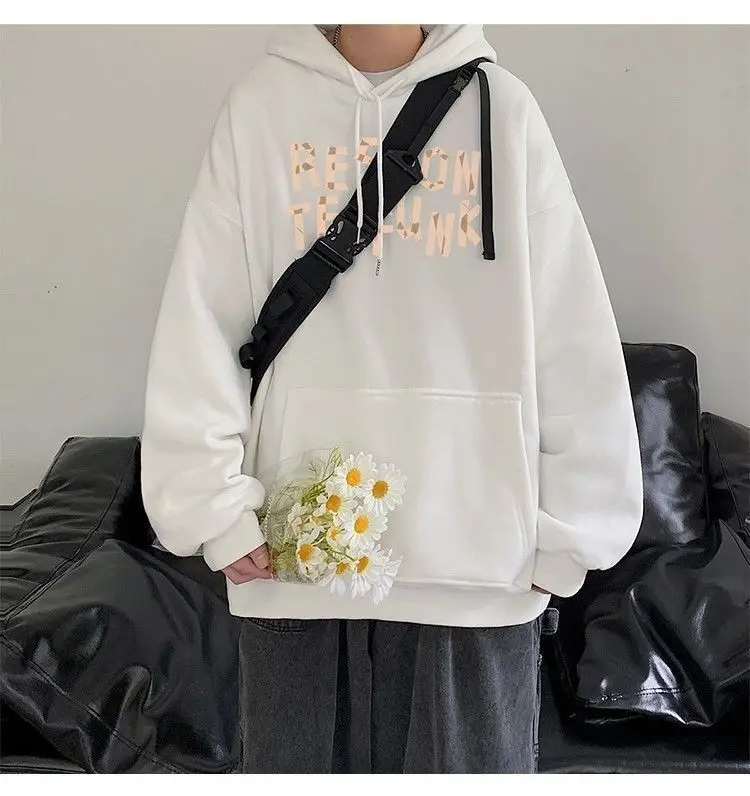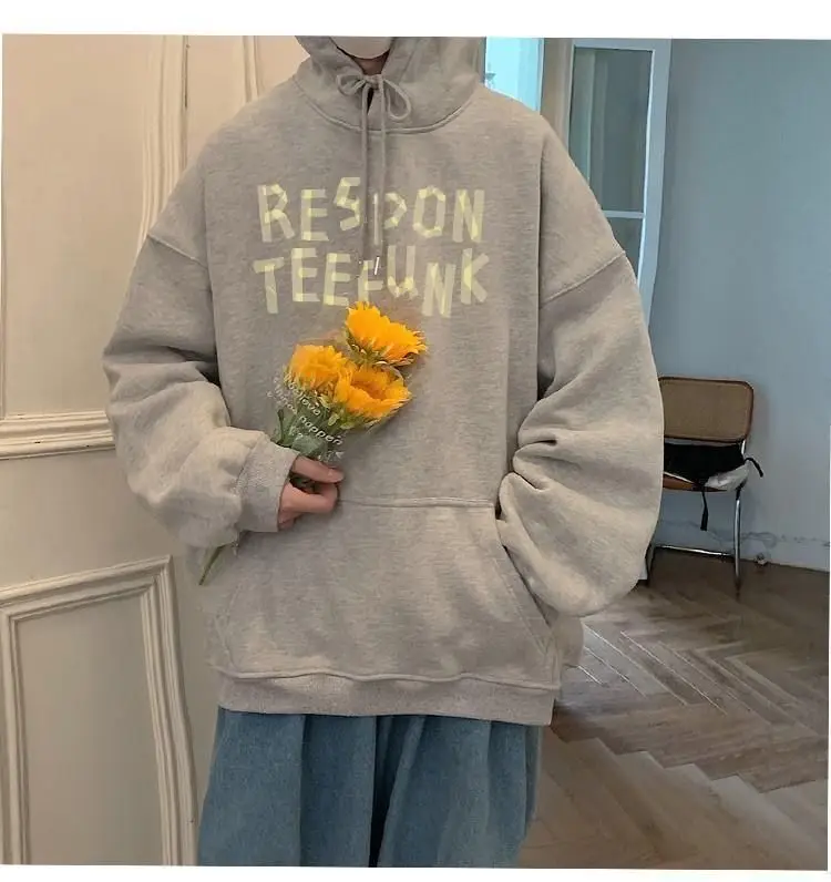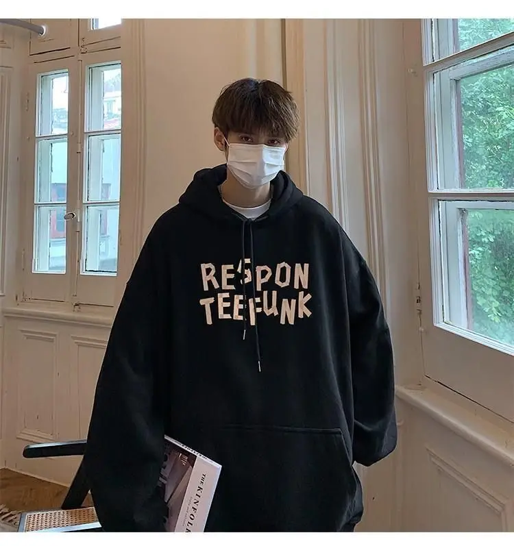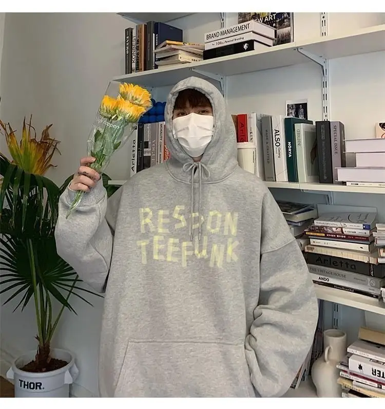 Hooded sweater for men’s loose fitting trend ins jacket for spring, autumn, and winter wear, thickened Hong Kong style plush