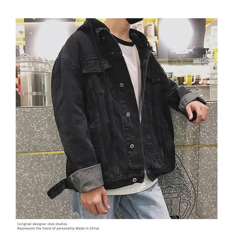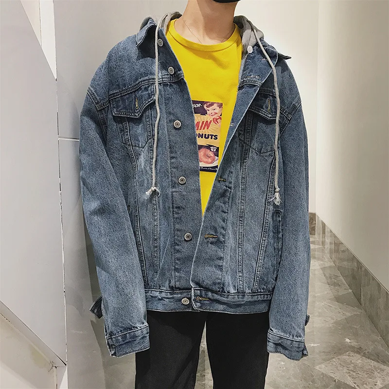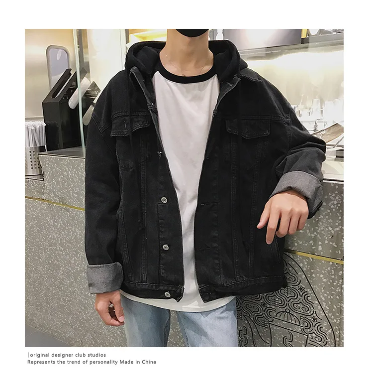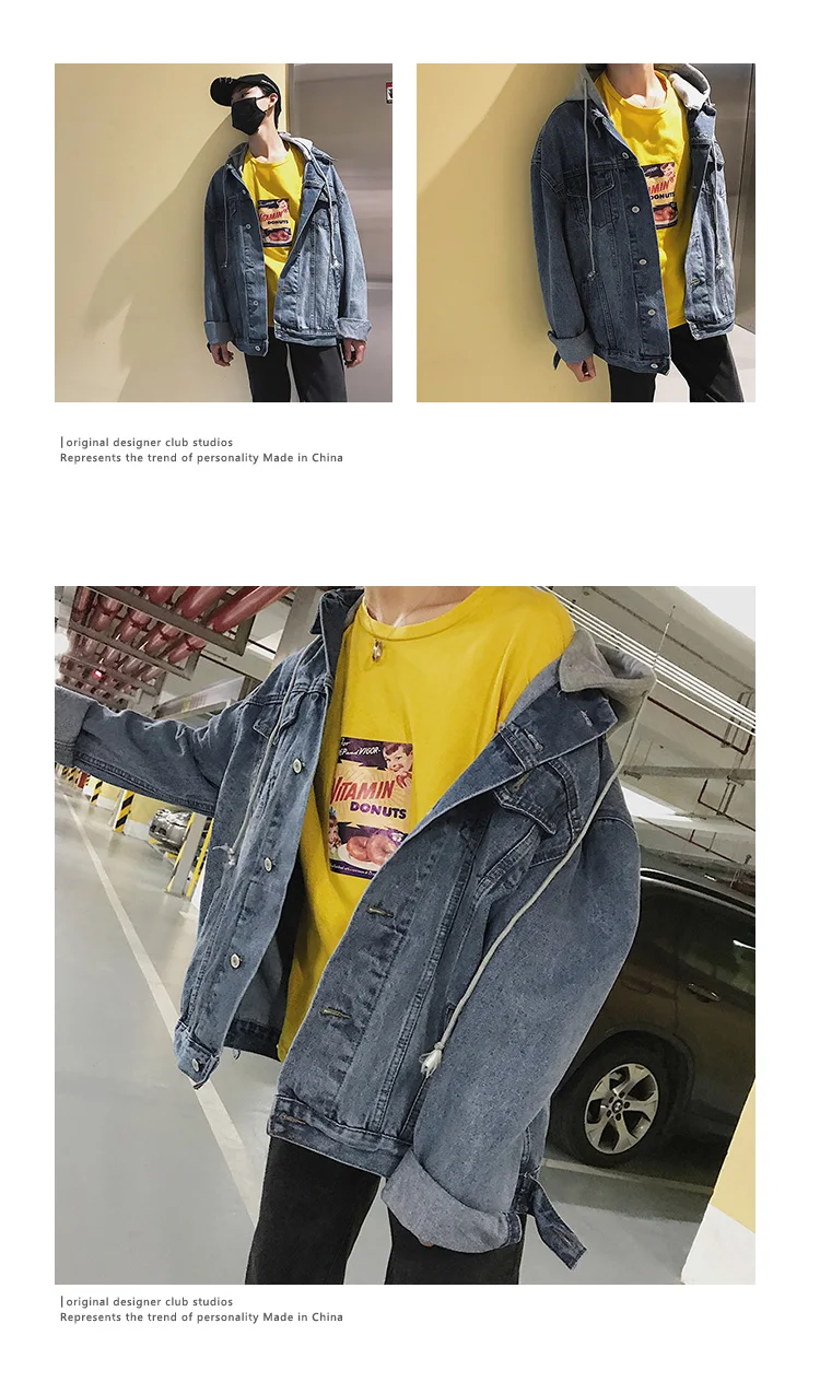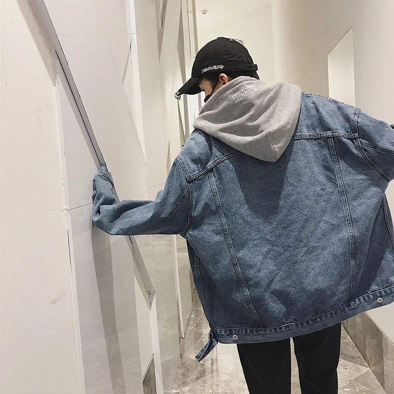 Hot 2021 Autumn Winter Fashion Street Men’s Denim Jacket Hooded Men’s Korean Trendy Casual Loose Teenagers Cowboy Jacket Tops