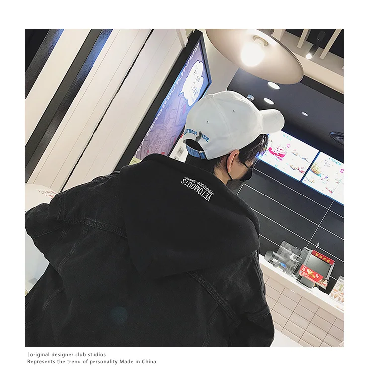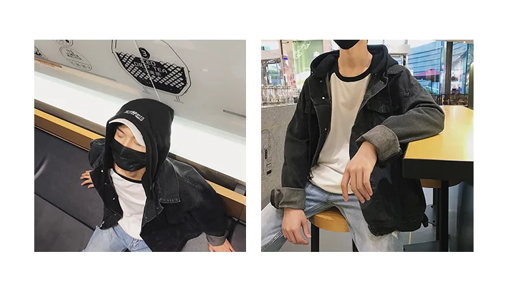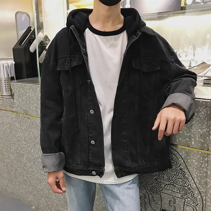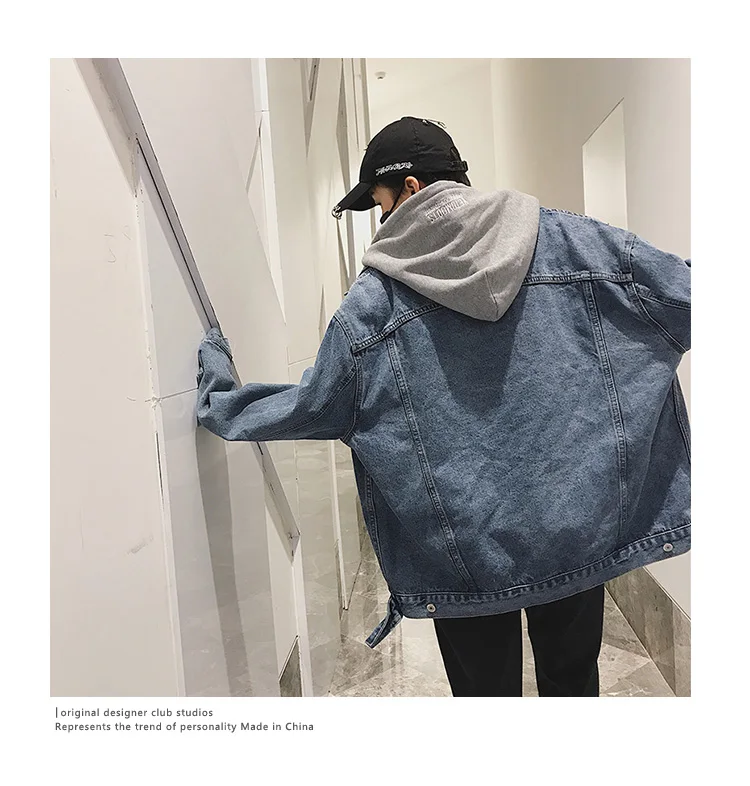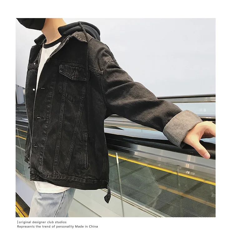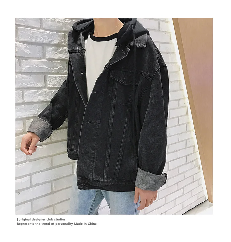 Hot 2021 Autumn Winter Fashion Street Men’s Denim Jacket Hooded Men’s Korean Trendy Casual Loose Teenagers Cowboy Jacket Tops