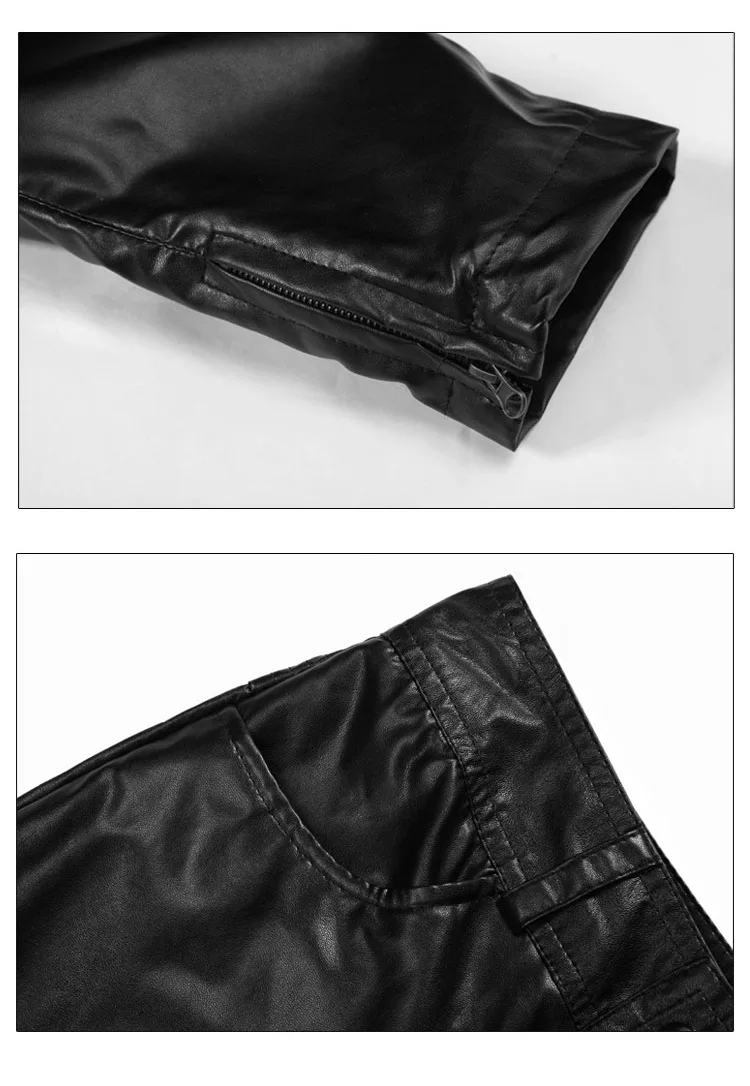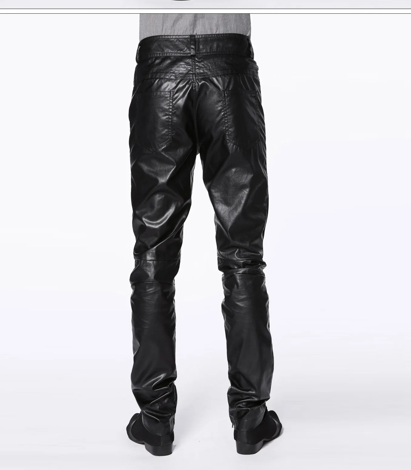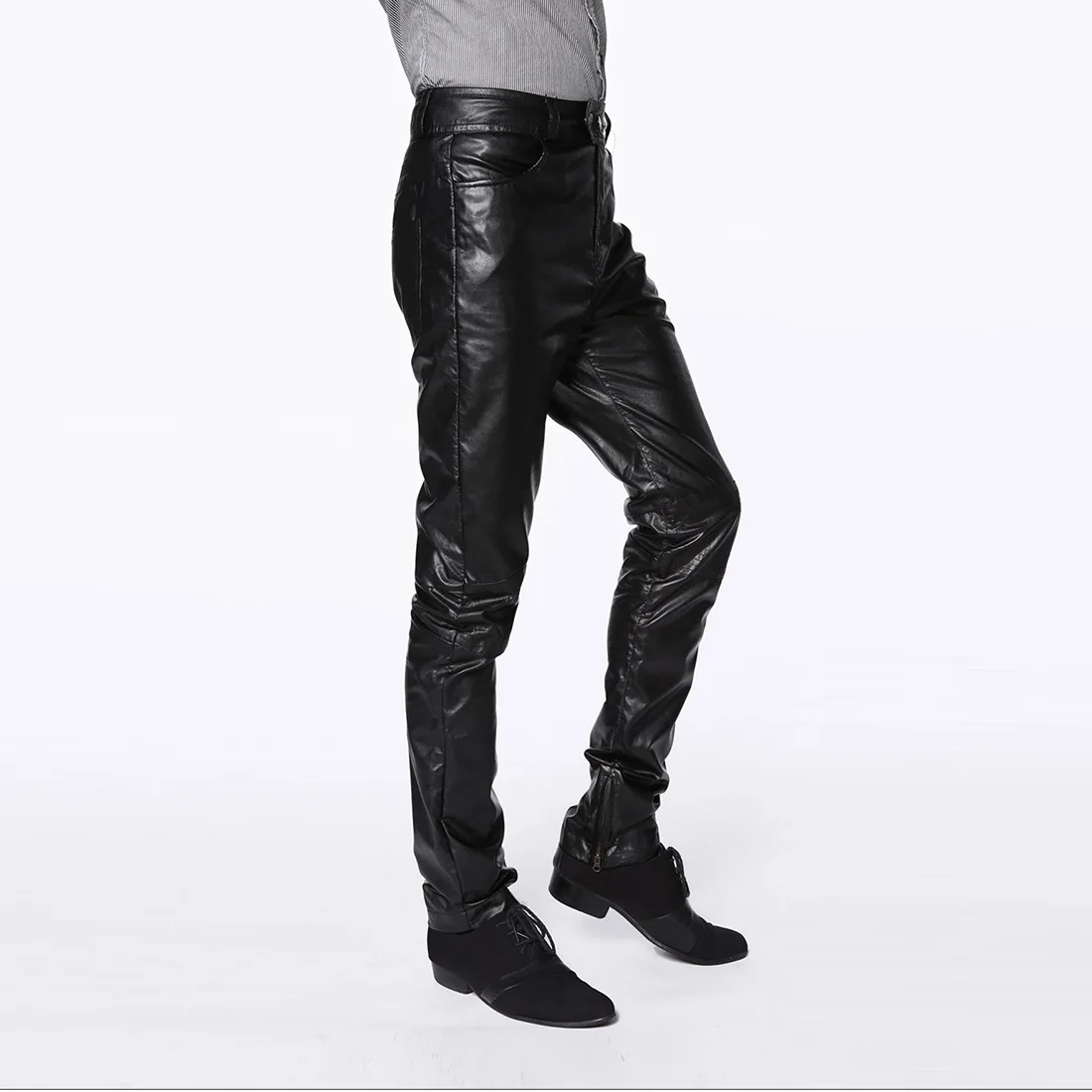 Hot 2022 Fashion Casual Black Men’s Slim PU Leather Pants Feet Boots Pants Tights Streetwear Pants