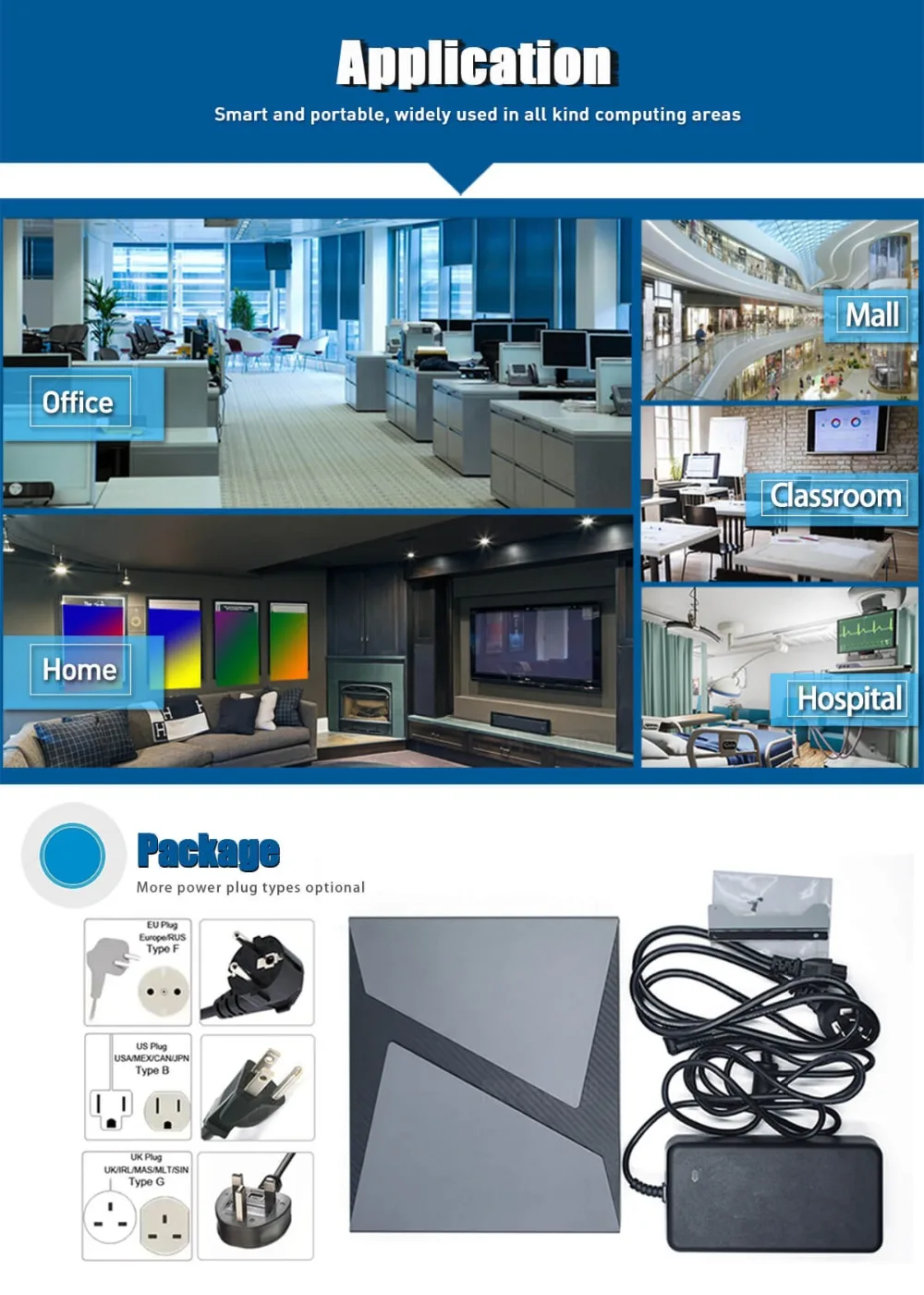 5. Low power consumption only 16W, energy-saving up to 90% compare to traditional desktop computers;