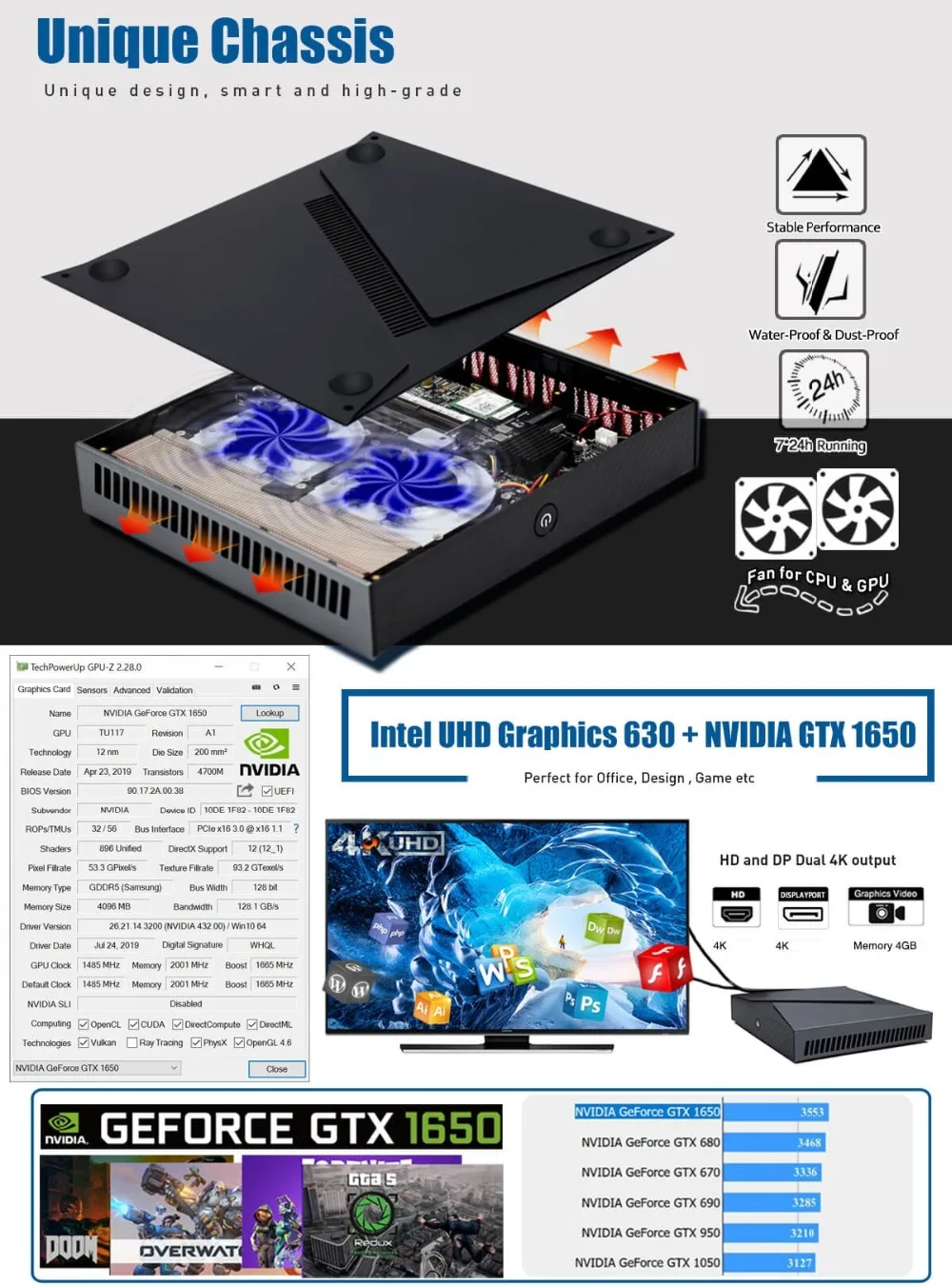 HYSTOU New gaming PC i9 9880H 8950HK GTX 1650 4GHD Dual Graphics 2*DDR4 slot BT4.0 desktop Windows10 mini pc WiFi