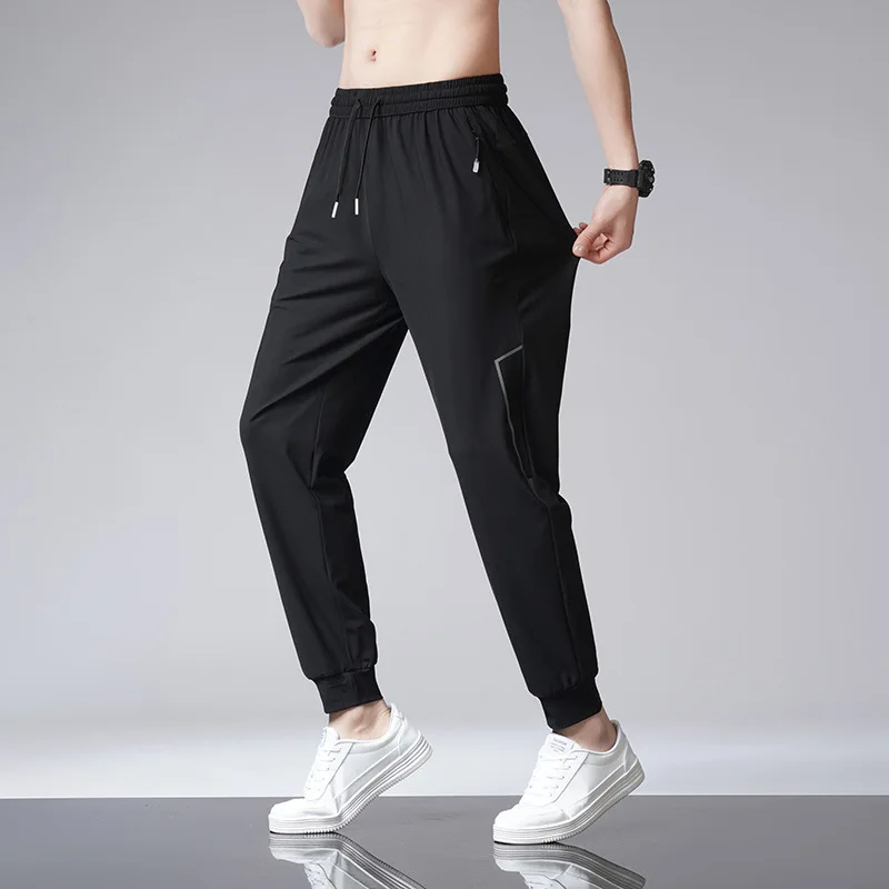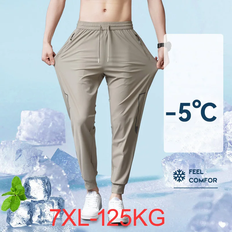 Ice quick dry pants men’s summer thin section loose straight stretch sports casual pants plus fat plus size 7XL 125KG