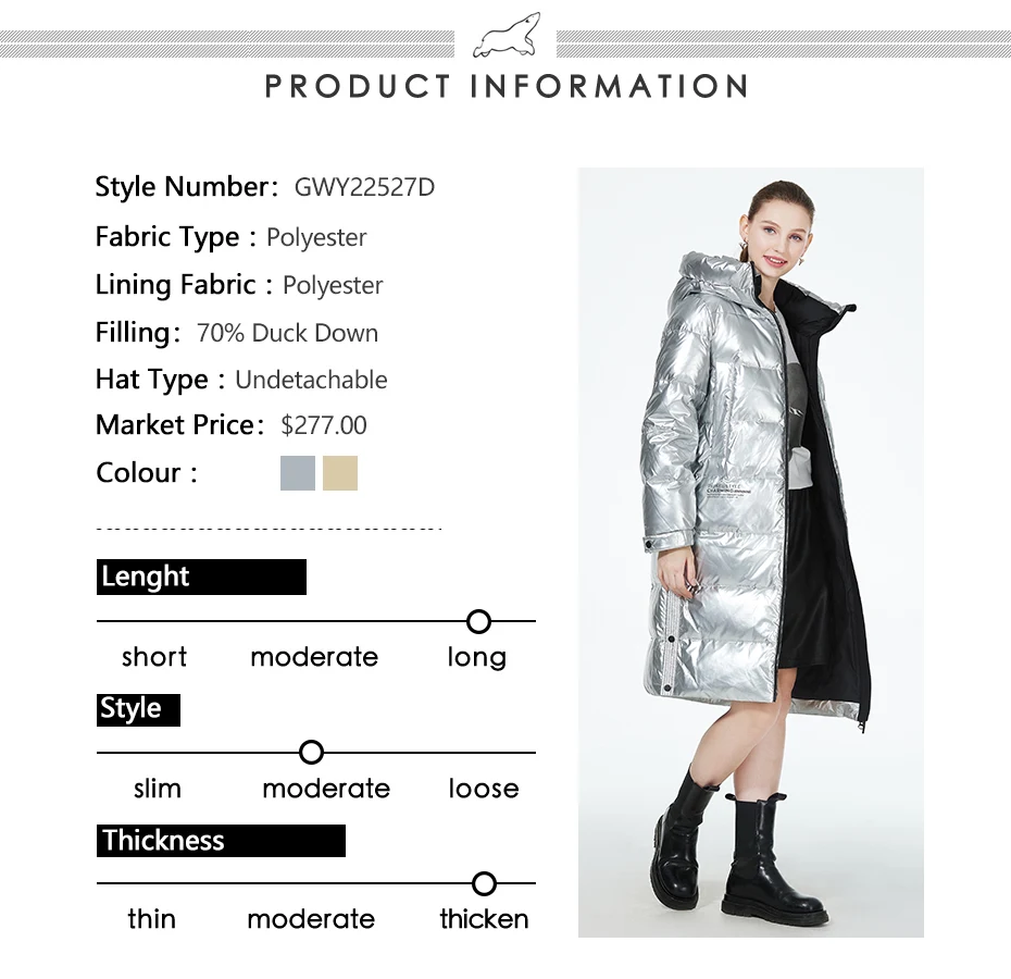 ICEbear 2023 winter new style long down jacket fashionable over the knee winter ladies hooded coat GWY22527D