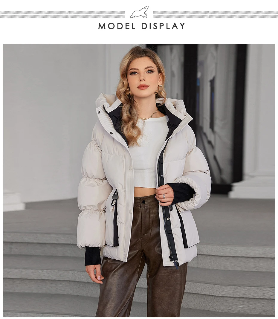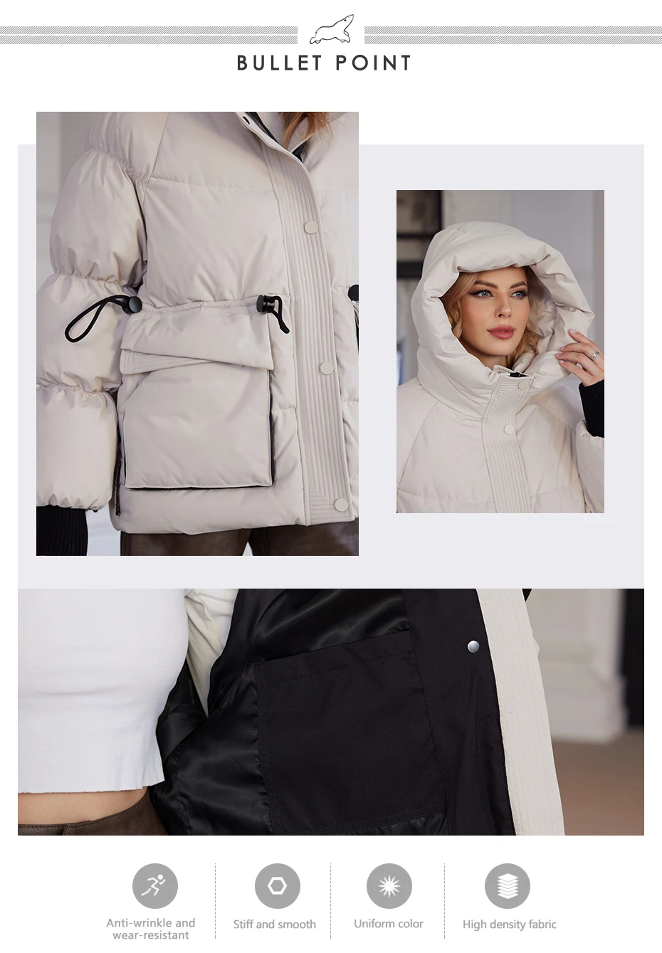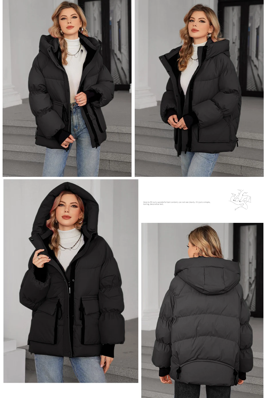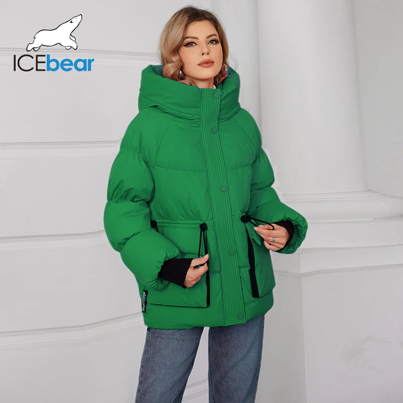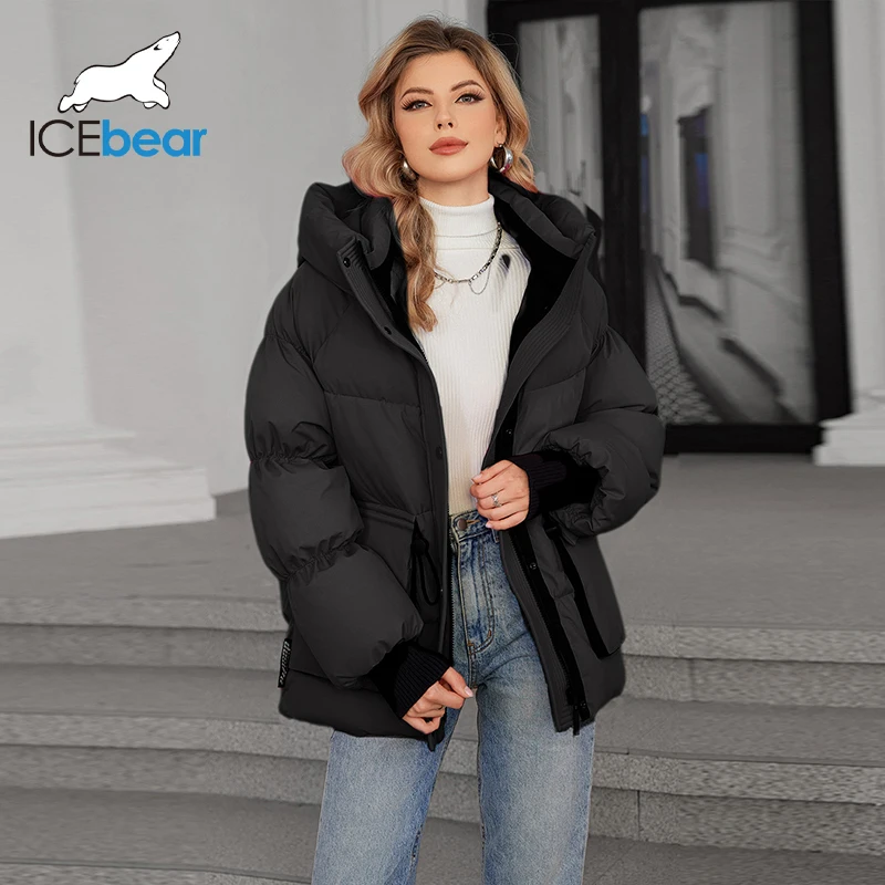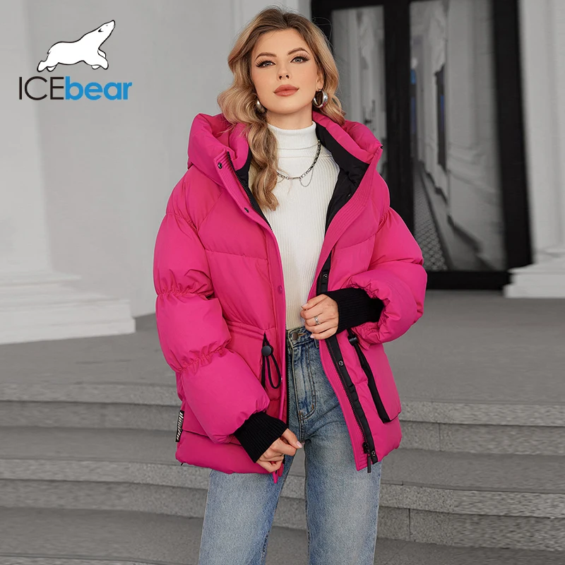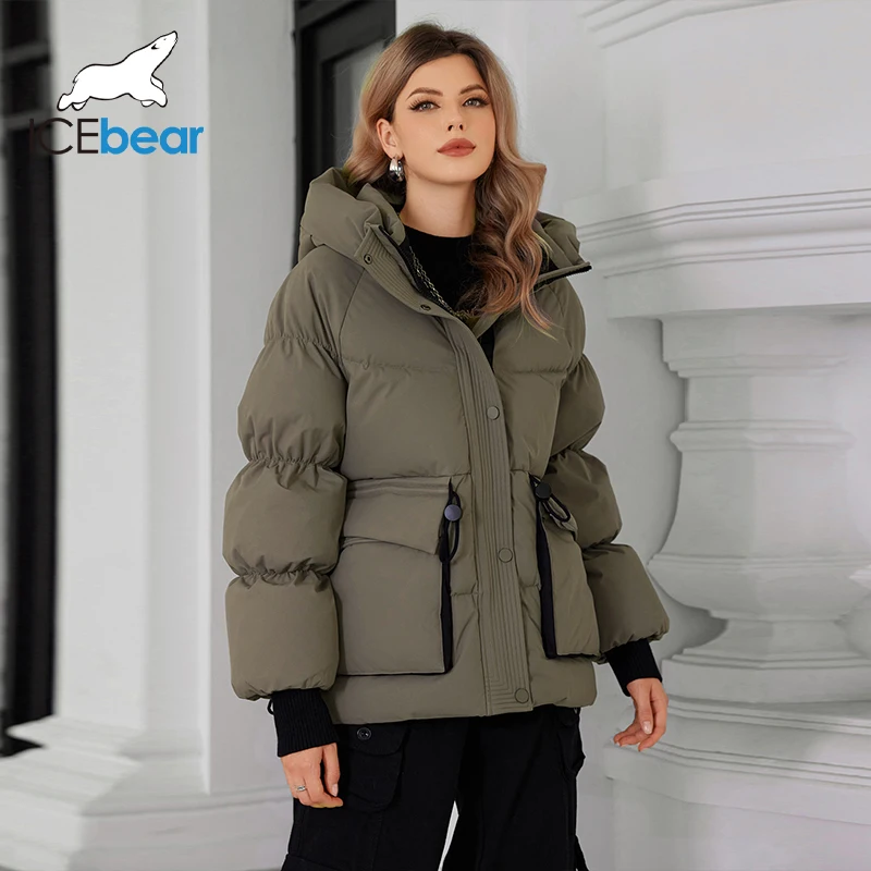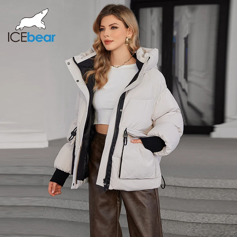 ICEbear 2024 Winter Women’s Short Casual Loose Light Jacket with Large Pockets Women’s Hooded Zippered Down Coat Jacket GWD4609I