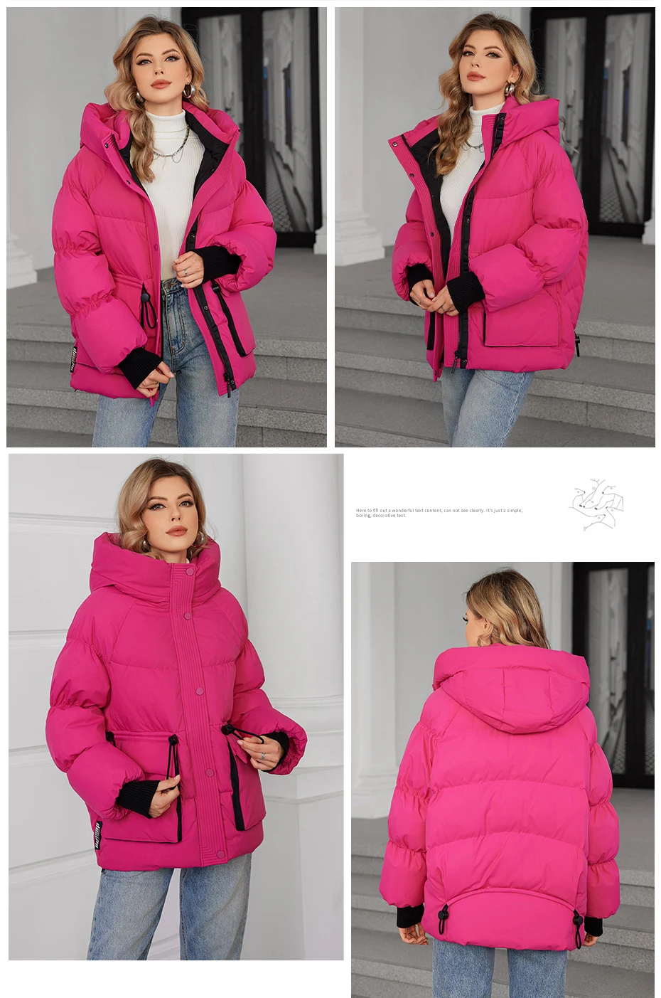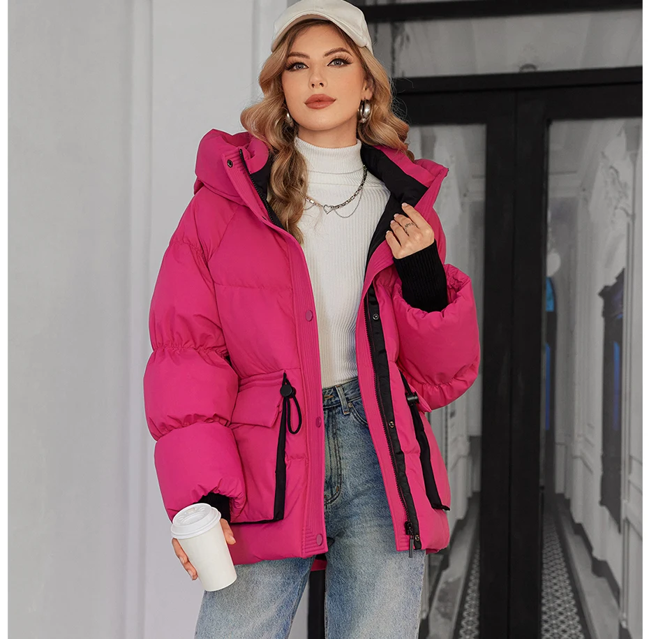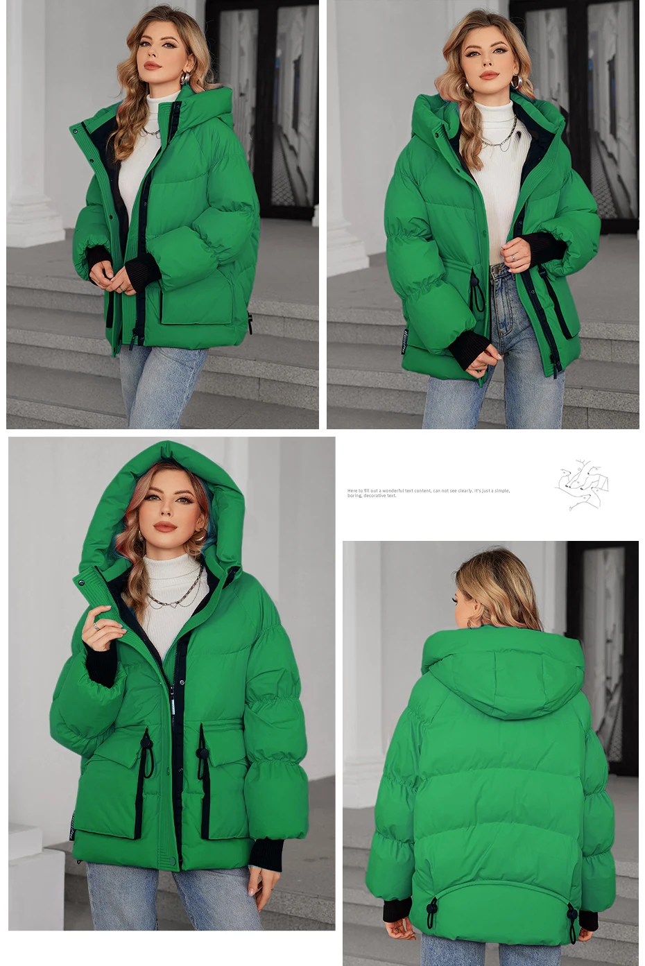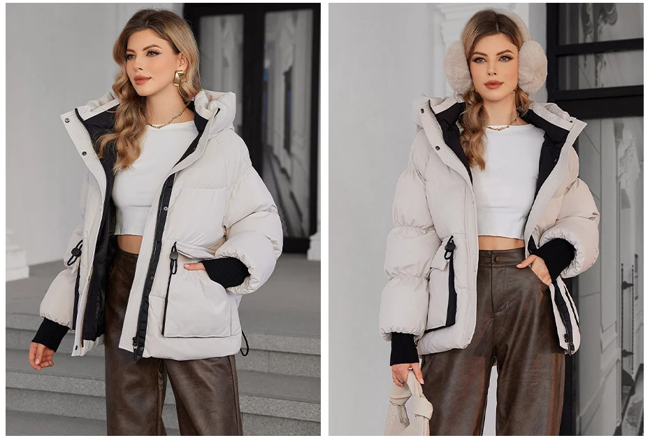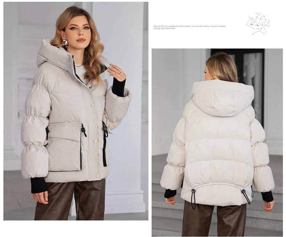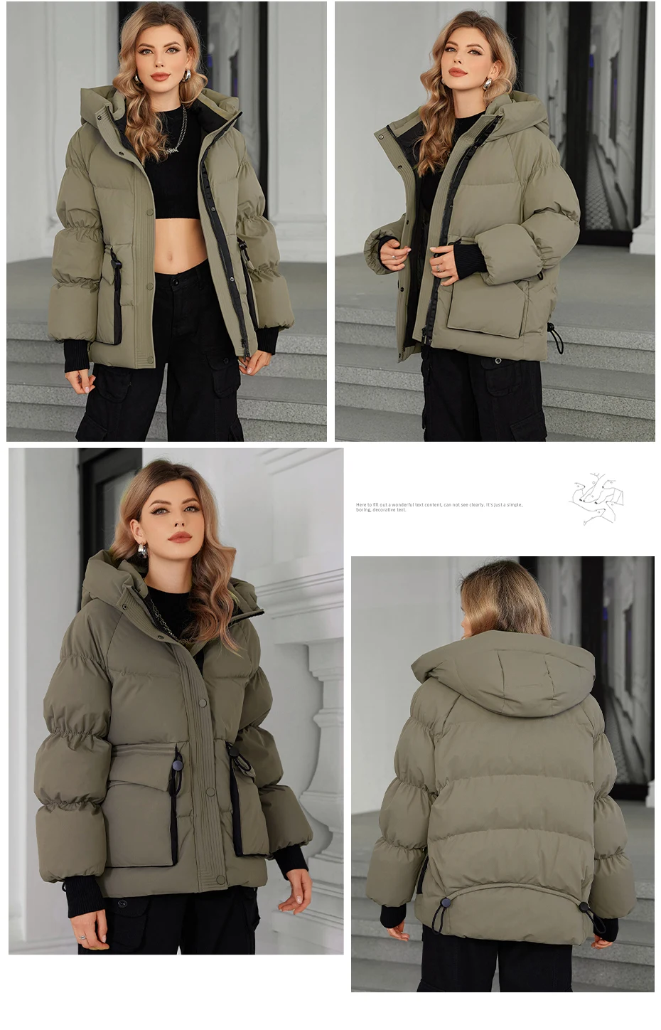 ICEbear 2024 Winter Women’s Short Casual Loose Light Jacket with Large Pockets Women’s Hooded Zippered Down Coat Jacket GWD4609I