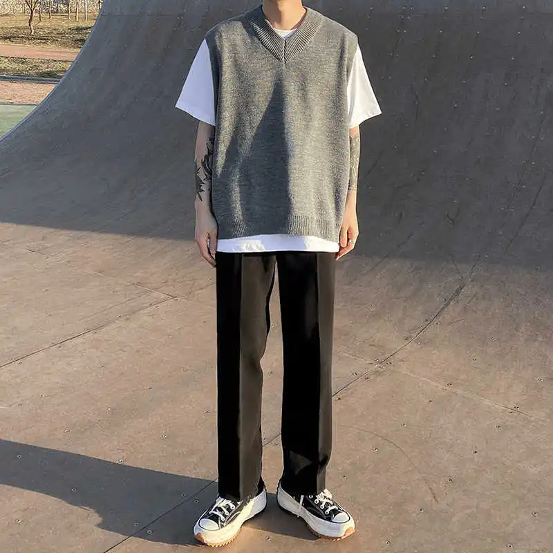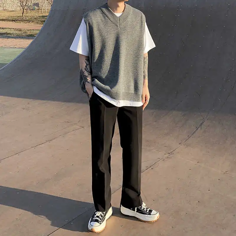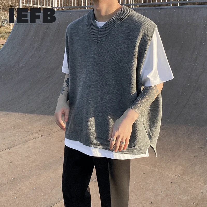 IEFB Men’s V-neck Knitted Waistcoat Korean Fashion Versatile Catchback Loose Clothing 2022 Summer Sleeveless Sweater Vest 9Y7959