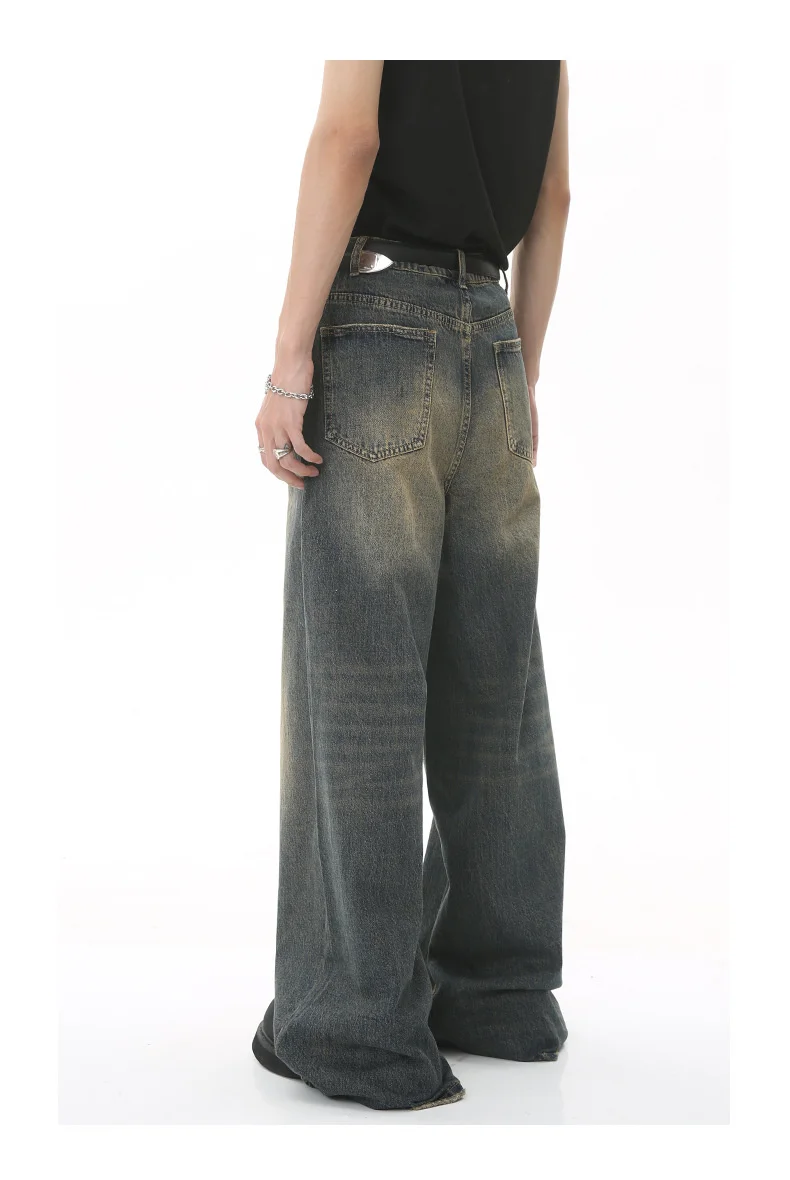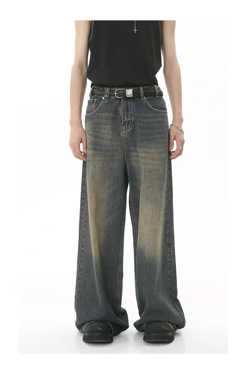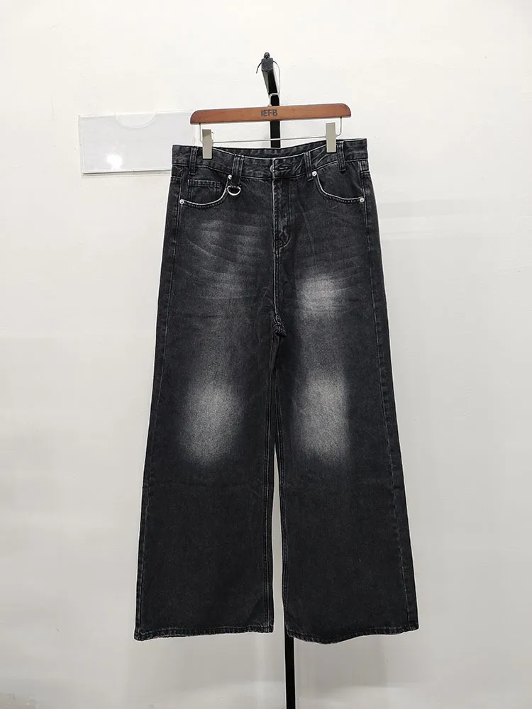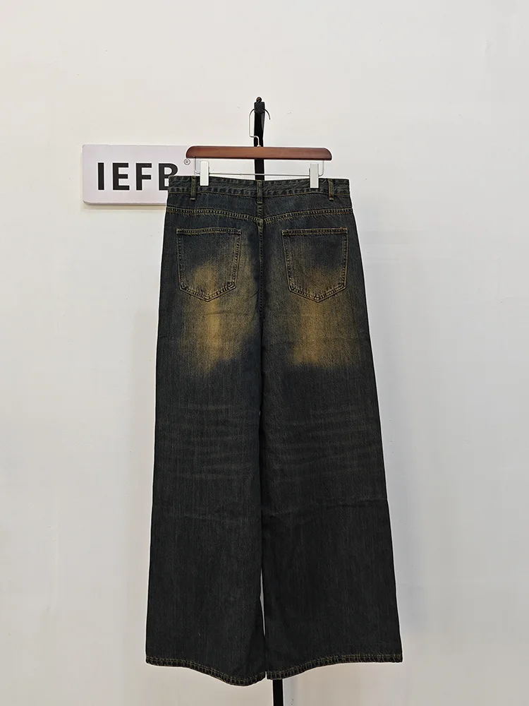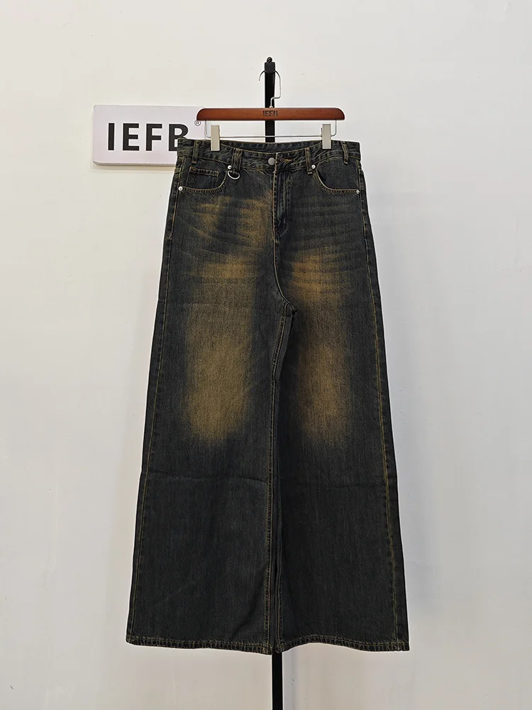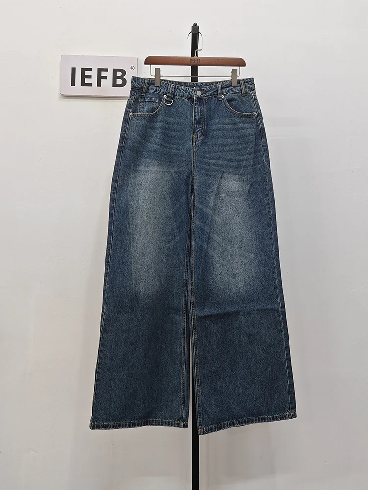 IEFB Summer Men’s Denim Pants Old Blue Washed Male Jeans Straight Casual Menwear Loose Wide Leg Trousers 2024 New Fashion 9C354