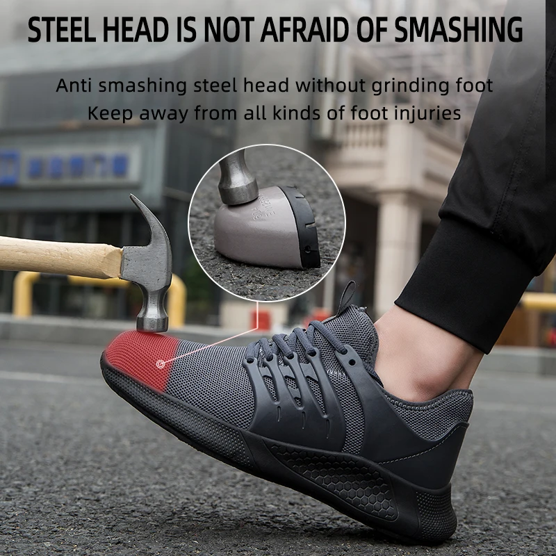 Indestructible Shoes Men Safety Work Shoes with Steel Toe Cap Puncture-Proof Boots Breathable Sneakers Men Safety Shoes