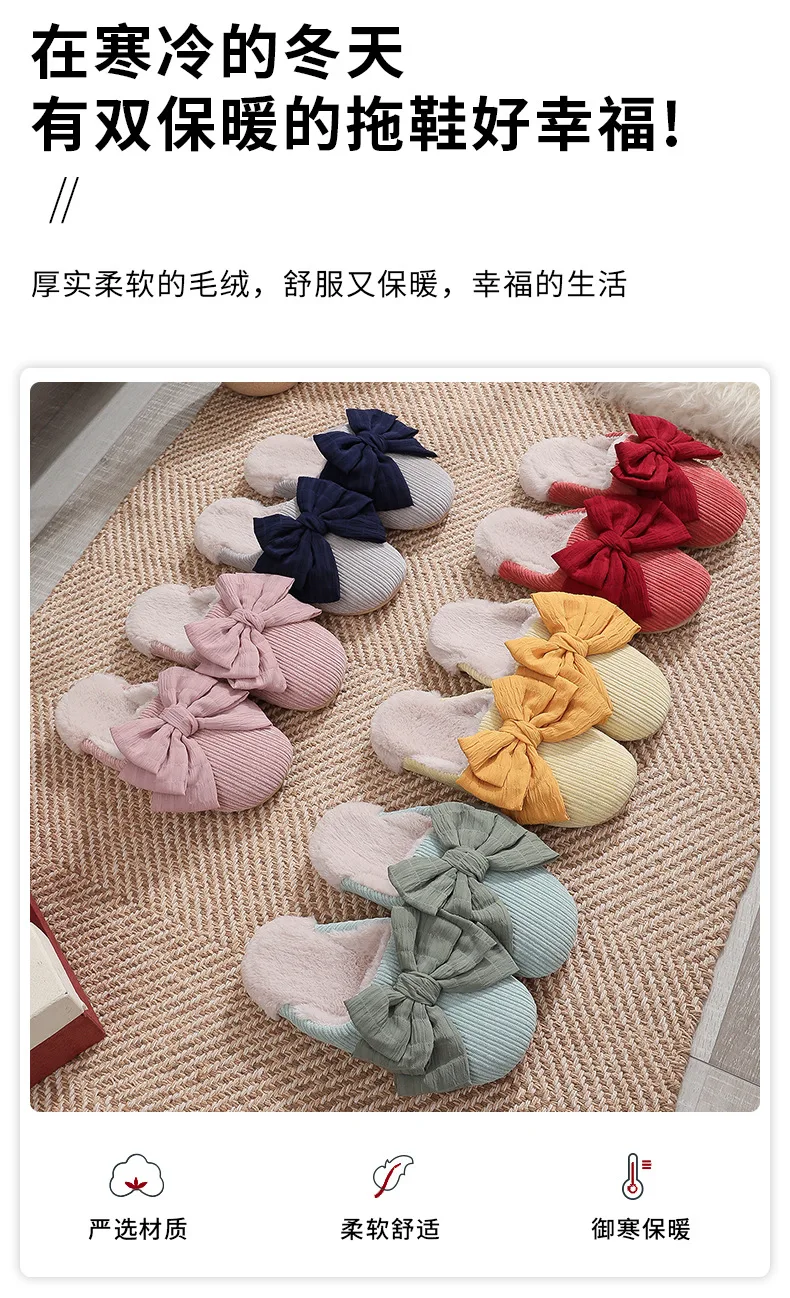 Net Celebrity Bow-knot Cotton Slippers Winter Shoes Women