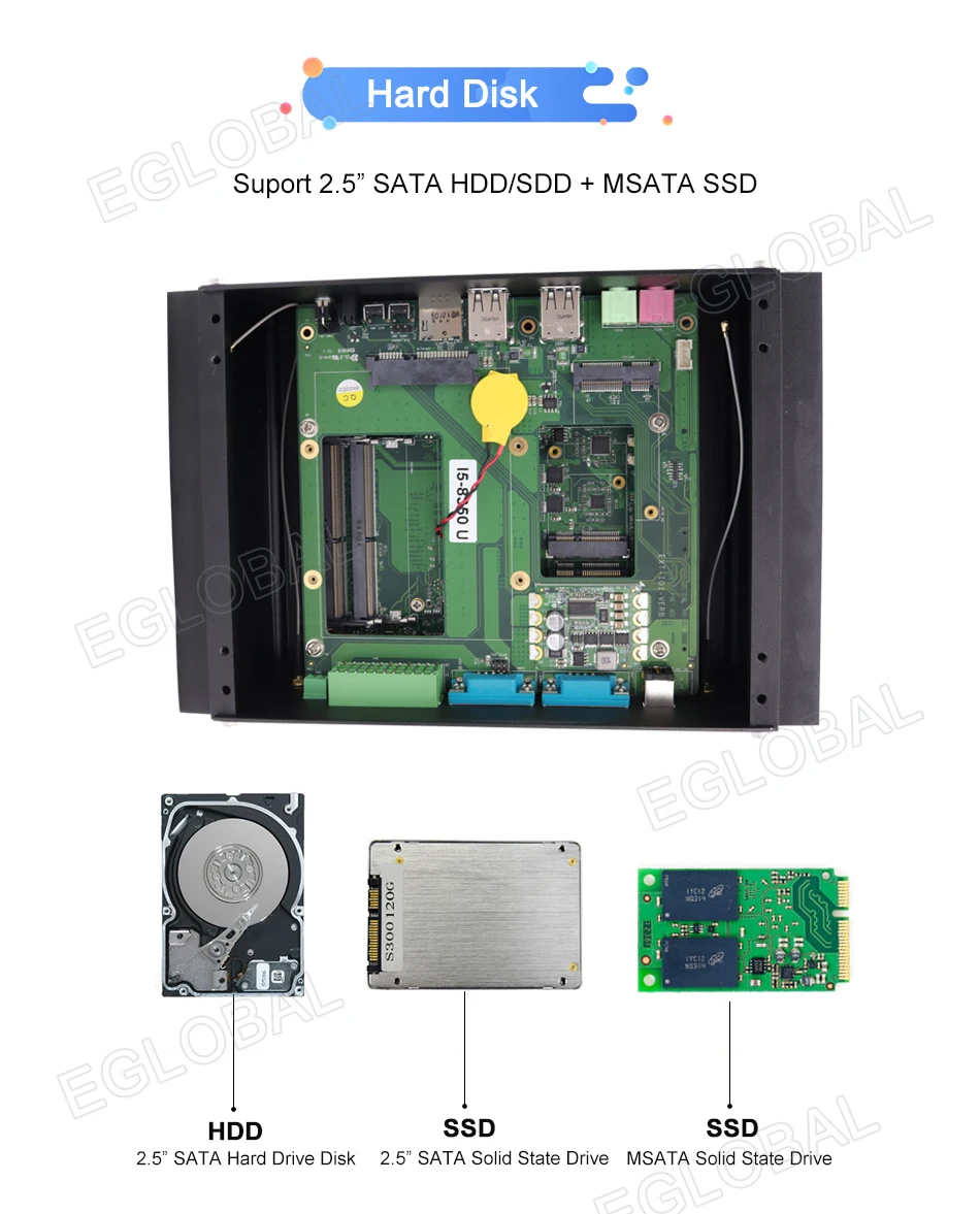 Accessories as Ram, SSD, HDD, we use famous brand:samsung, micron, SanDisk, toshiba, hynix, crucial, liteon, kingston, phison etc, What brand we use depends on our test and our stock.What brand we use depends on our test and our stock. Generally we use Msata SSD installed on Mpcie port and leave the SATA port blank for you to install 2.5” SSD/HDD.
