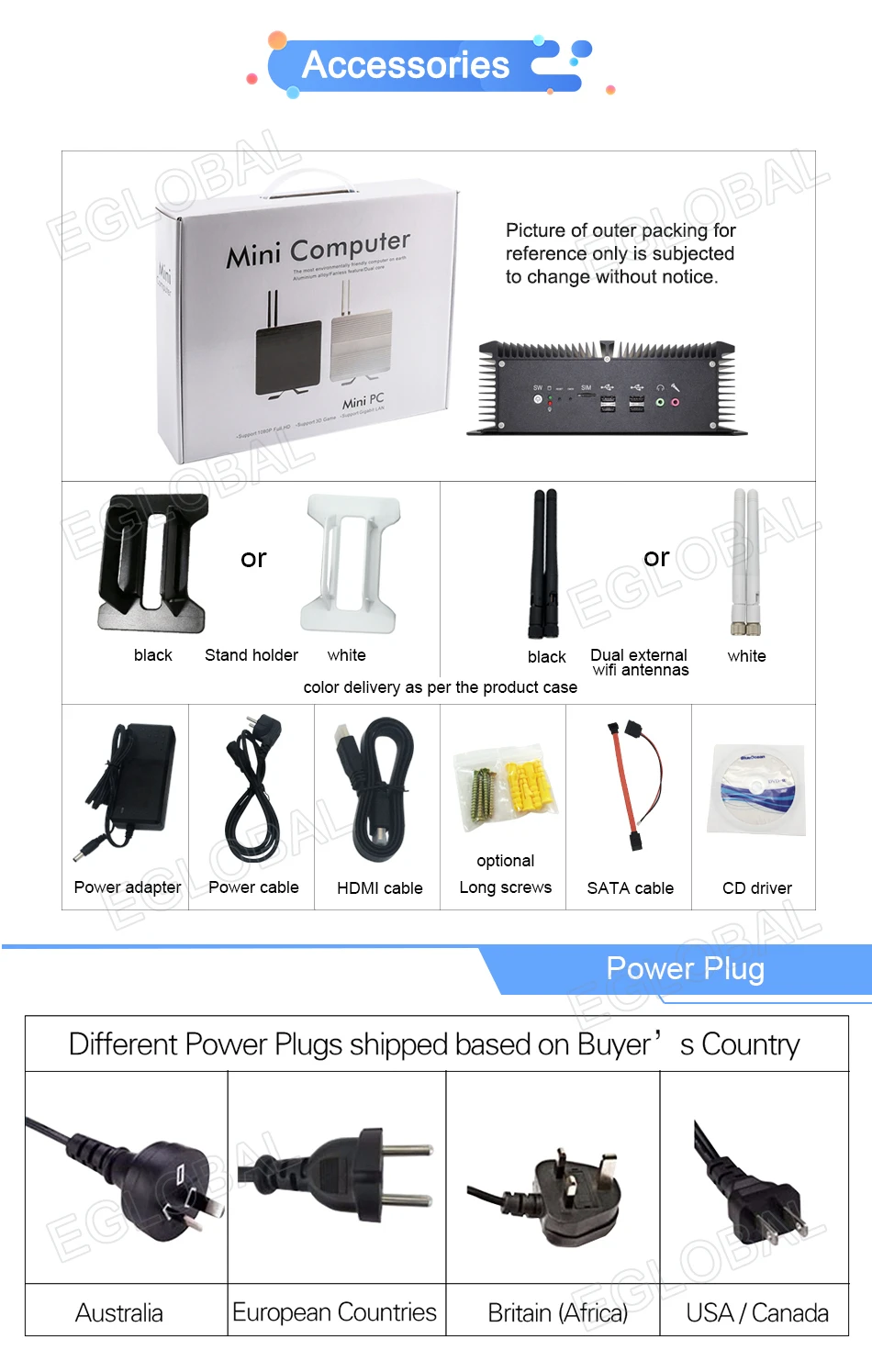 1xMini PC, 1xPower Adapter, 1xPower Cord, 1xScrews Bag |
