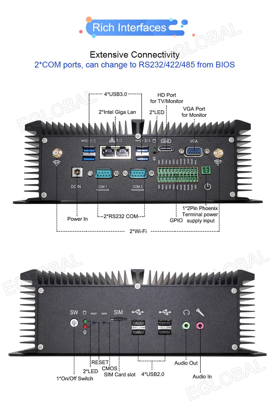2 x COM ports, can change to RS232/422/485 from BIOS |