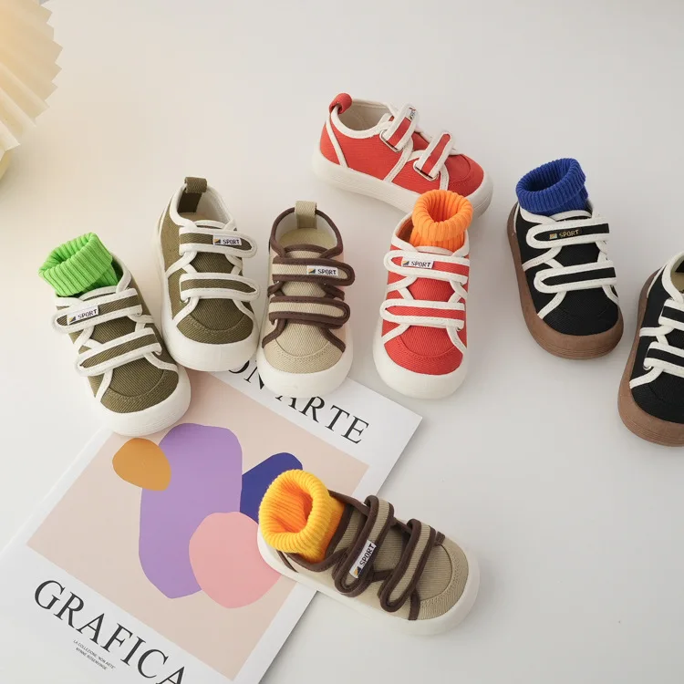Ins Children Bread Shoes Kids Casual Sneakers Boys Hook Loop Canvas Shoes Low Top Girls Board Shoes Tenis Masculino Zapatillas