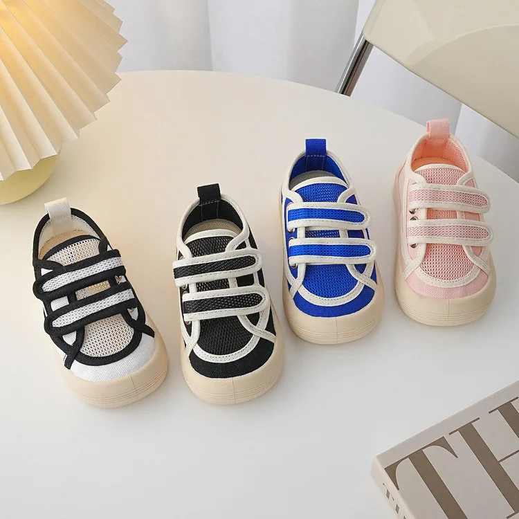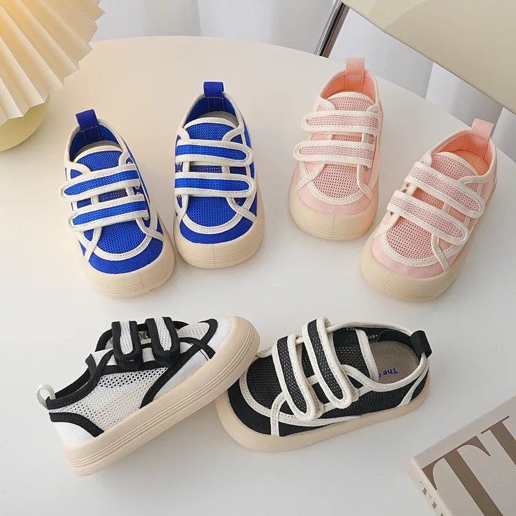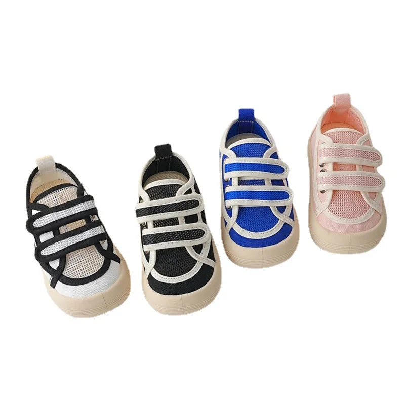 Ins Children Summer Sneakers Hook Loop Students Mesh Shoes Breathable Boys Summer Shoes Girls Princess Shoes Anti-kick Trainers