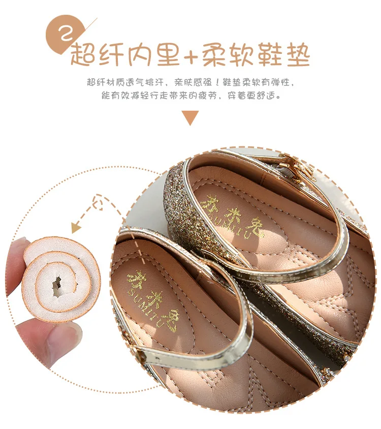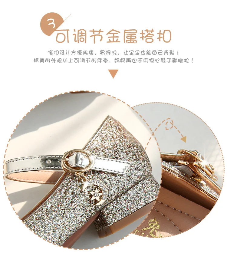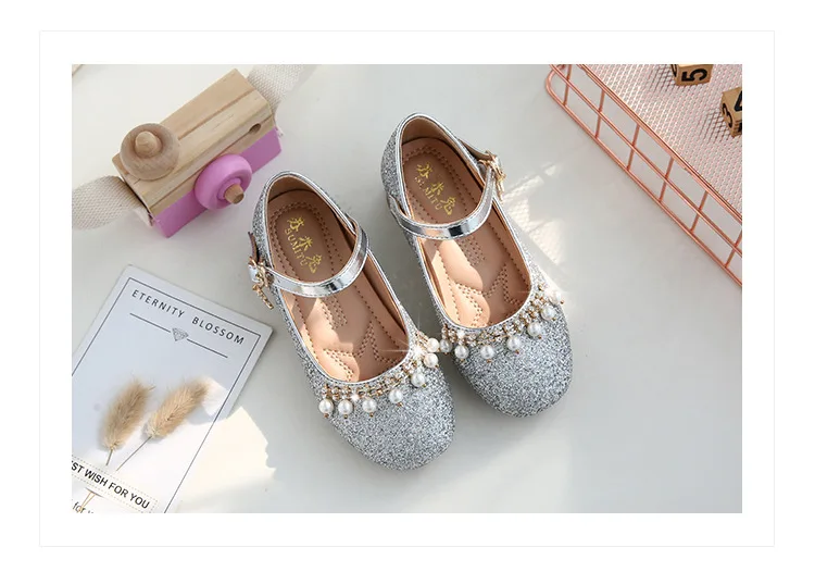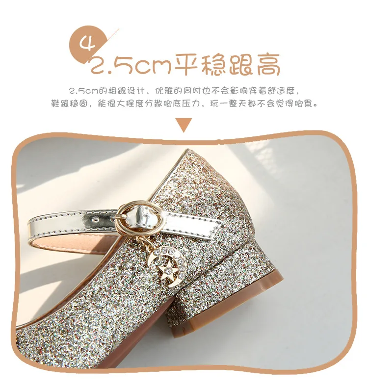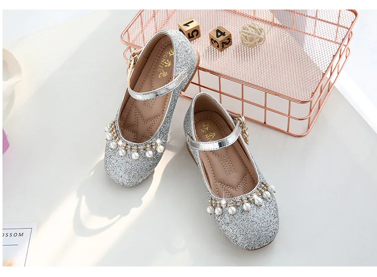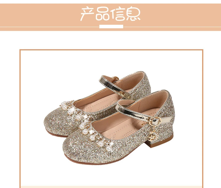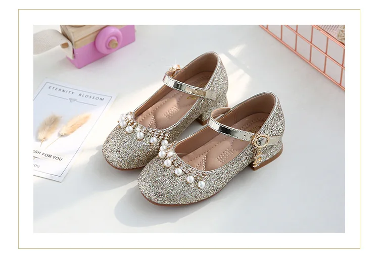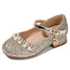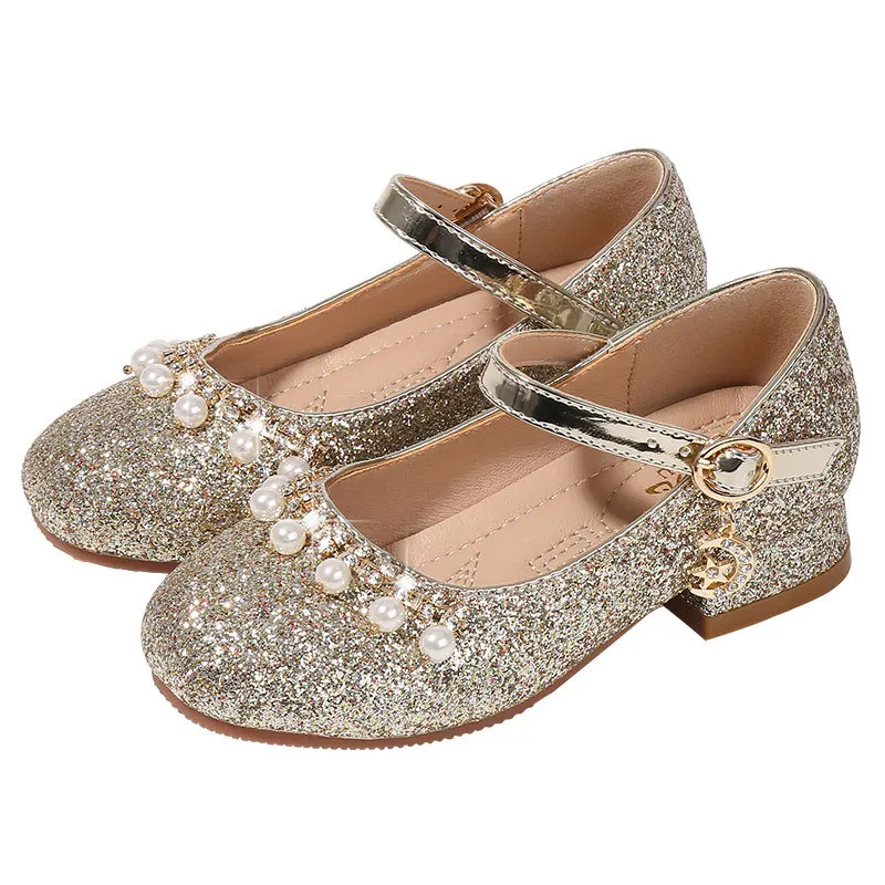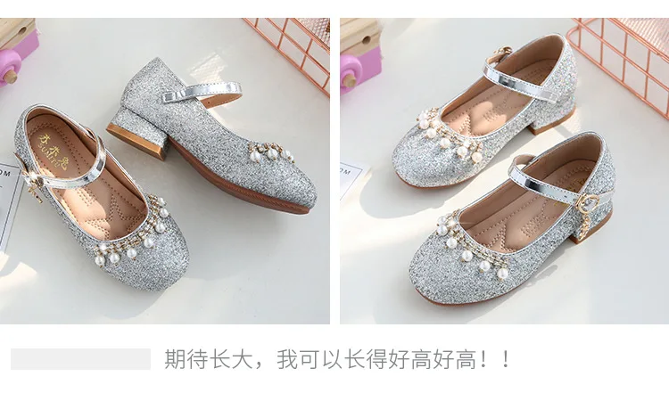 Ins Girls Leather Shoes Crystal Princess Shoes Children Small High Heels Hook Loop Kids Single Shoes Pearls Squins Dancing Shoes
