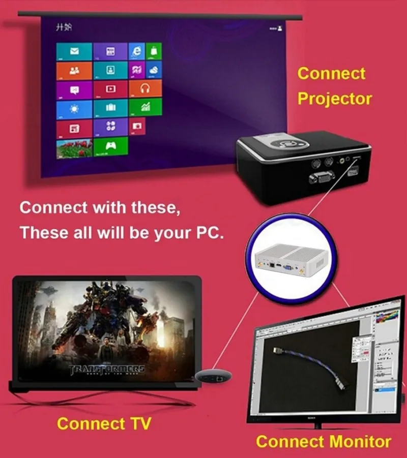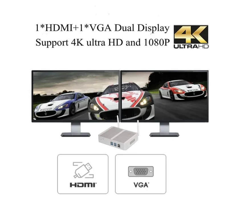 Strong: Work with any brand monitors; 1*Gigabit Lan Nics++1*HDMI+1*VGA+4*USB3.0+2*USB2.0 Fit for multiple application for example integrate with touch devices, industries, car repair shops, security, education, home as HTPC, business, fanancial and projects;