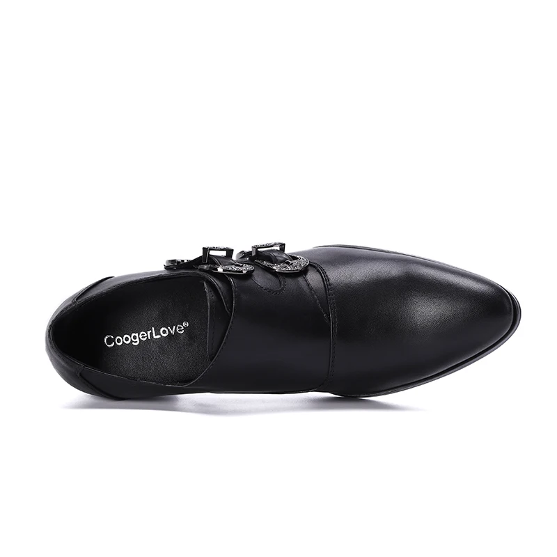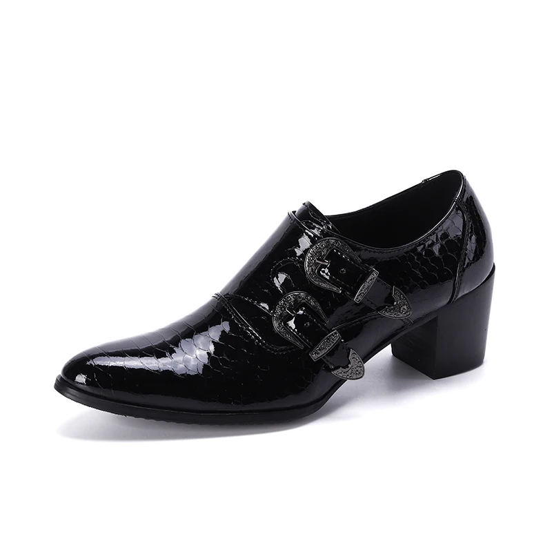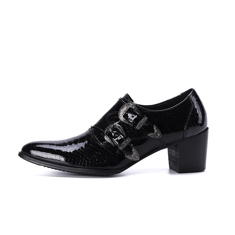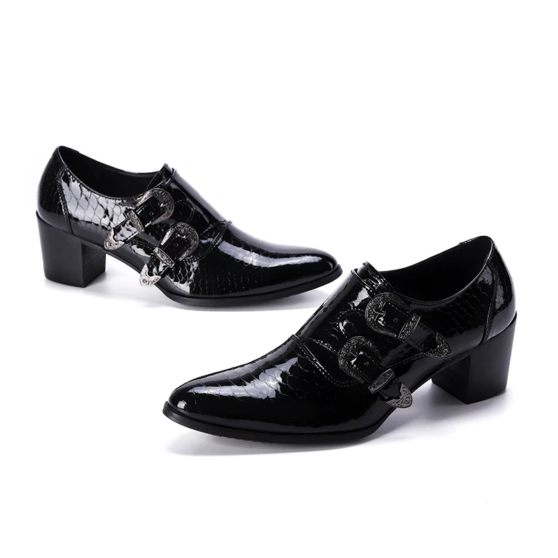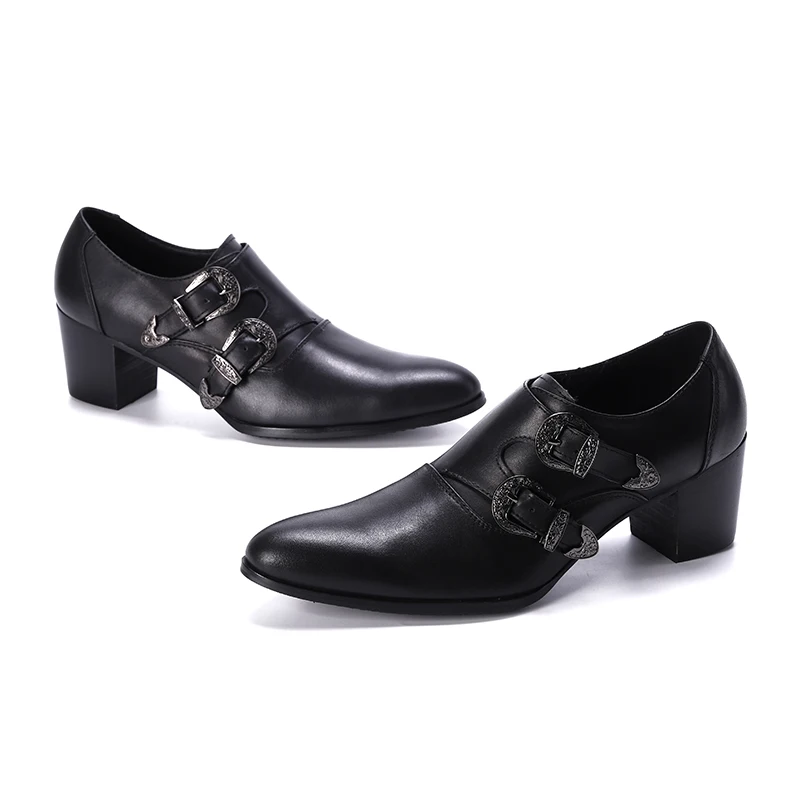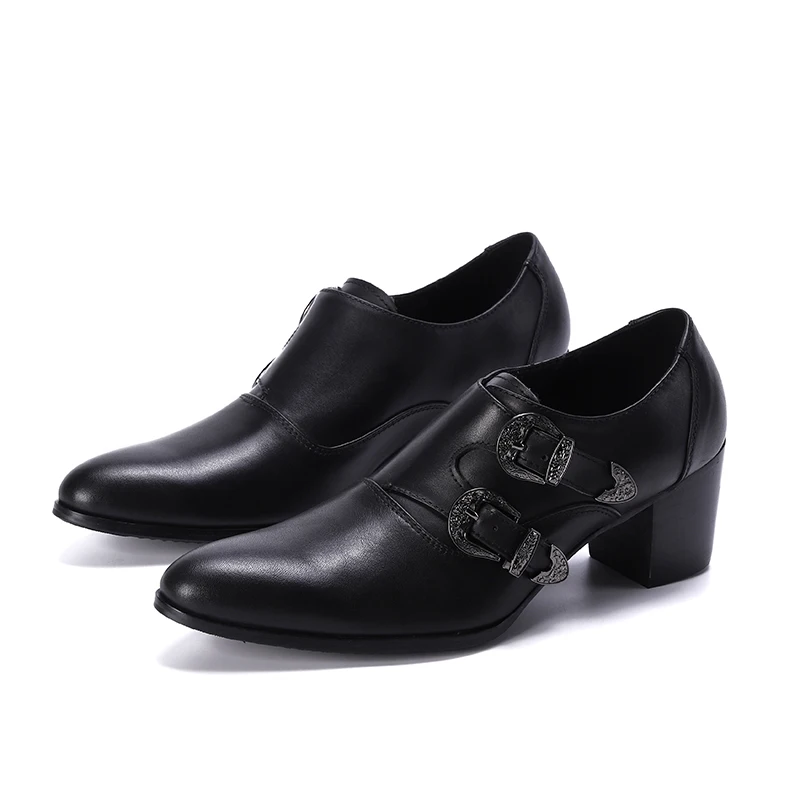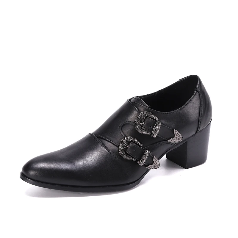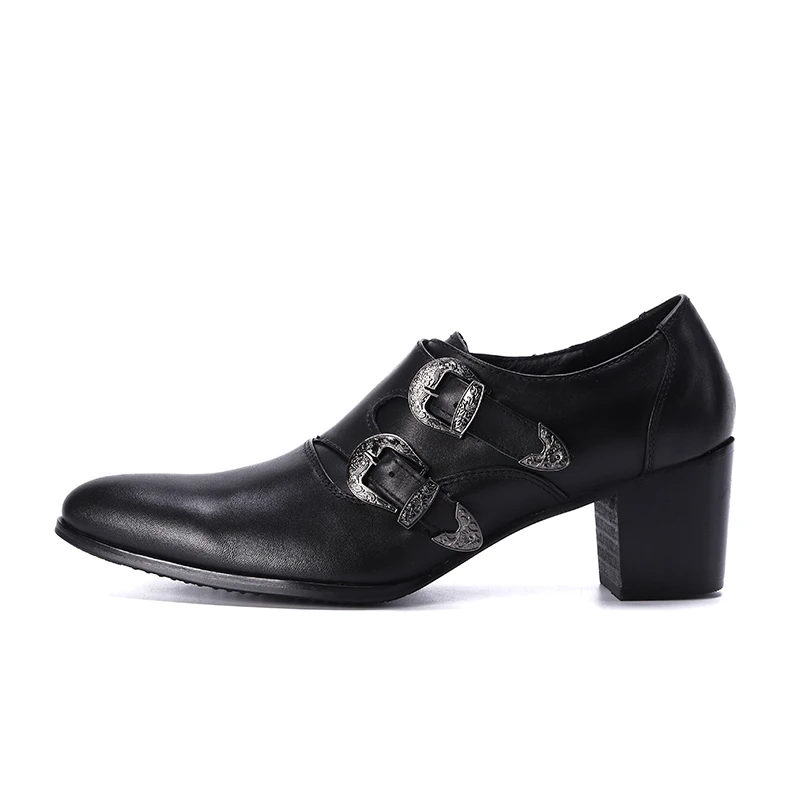 Italian Summer Business Dress Men’s Shoes Embossed Genuine Leather Double Buckle Office Oxford High Heels Men Sapato Masculino