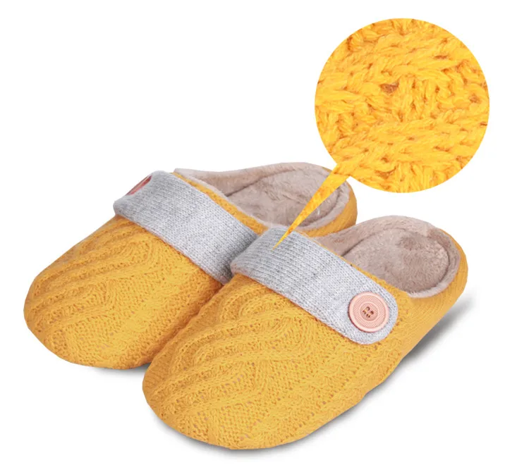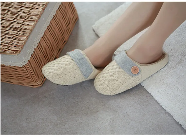 Japan Style Knitted Cotton Home Slippers Soft No Noise Couple’s Winter Household Shoes Anti-Slip Women/Women’s Indoor Slippers