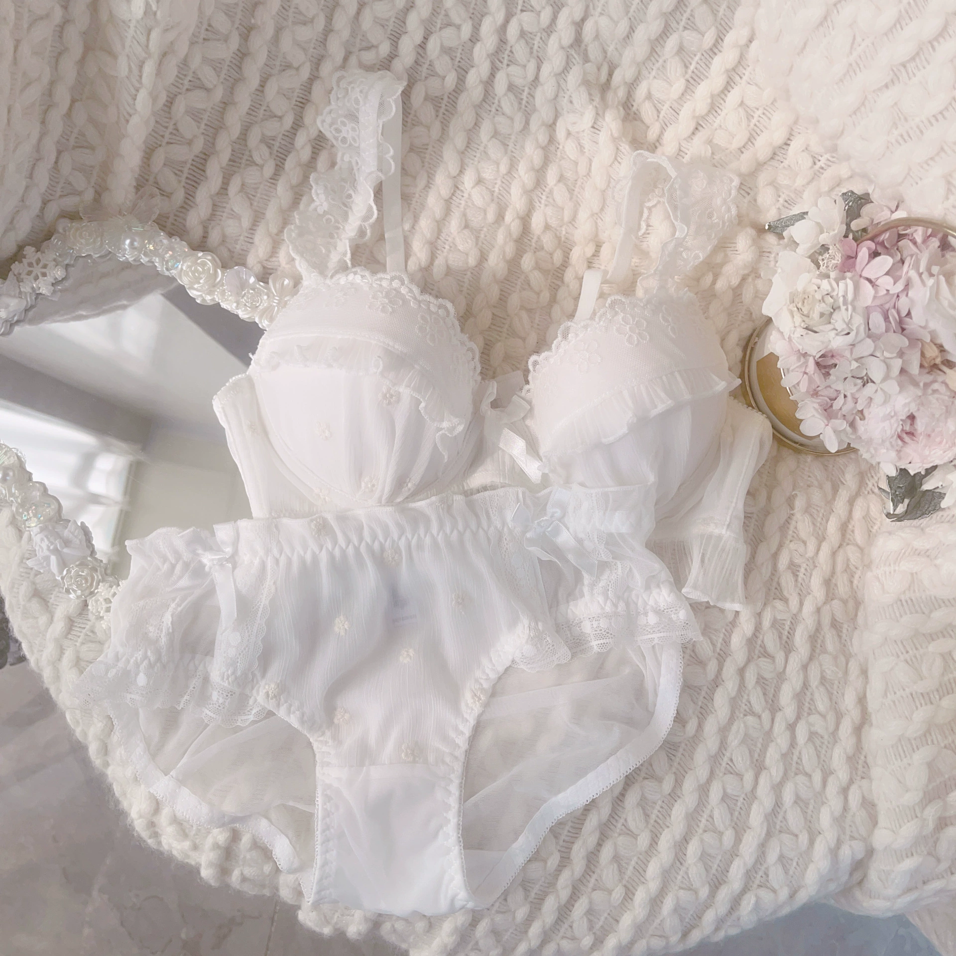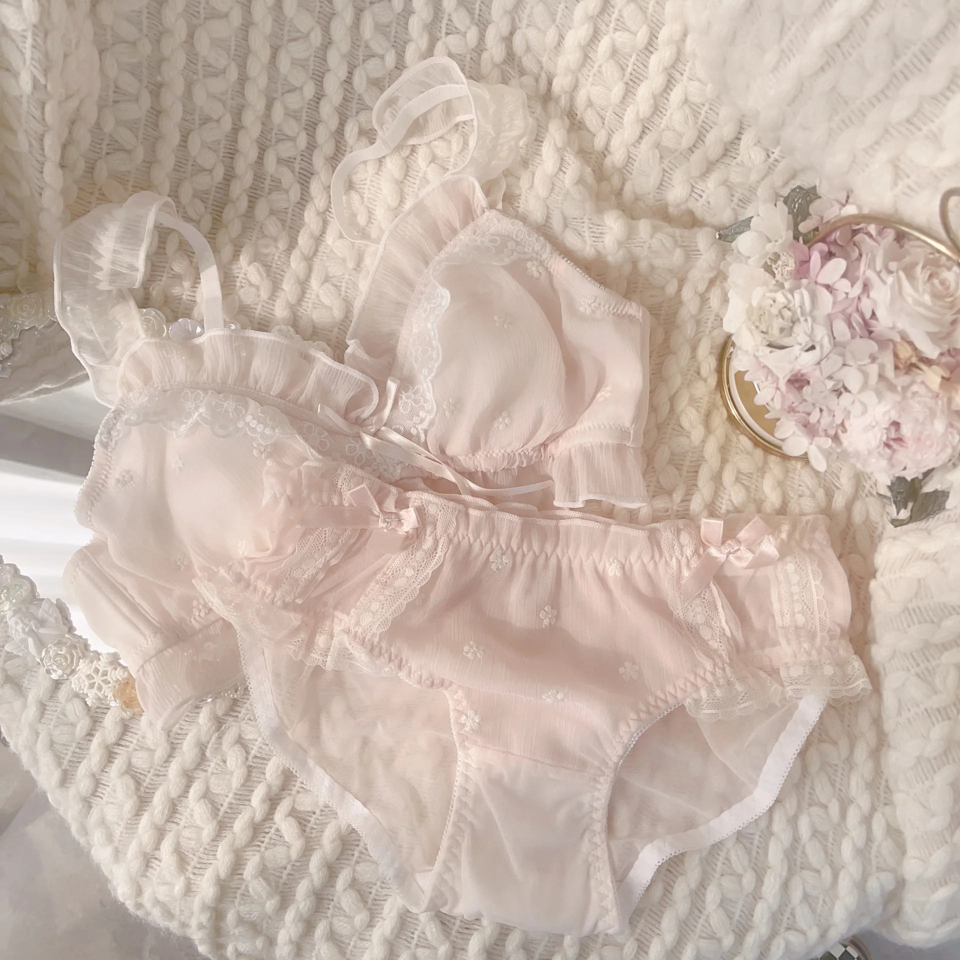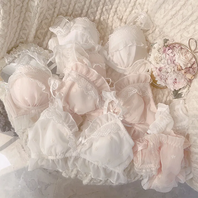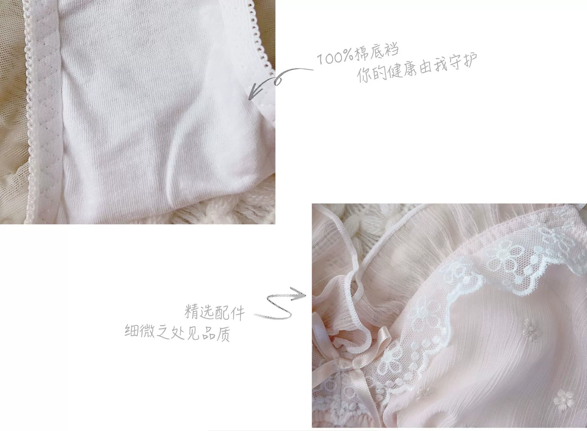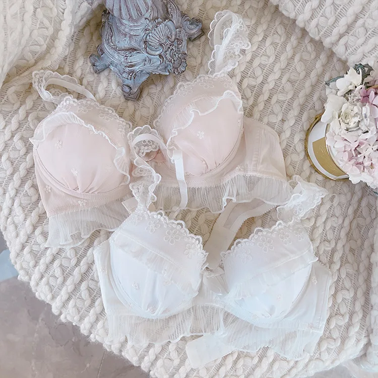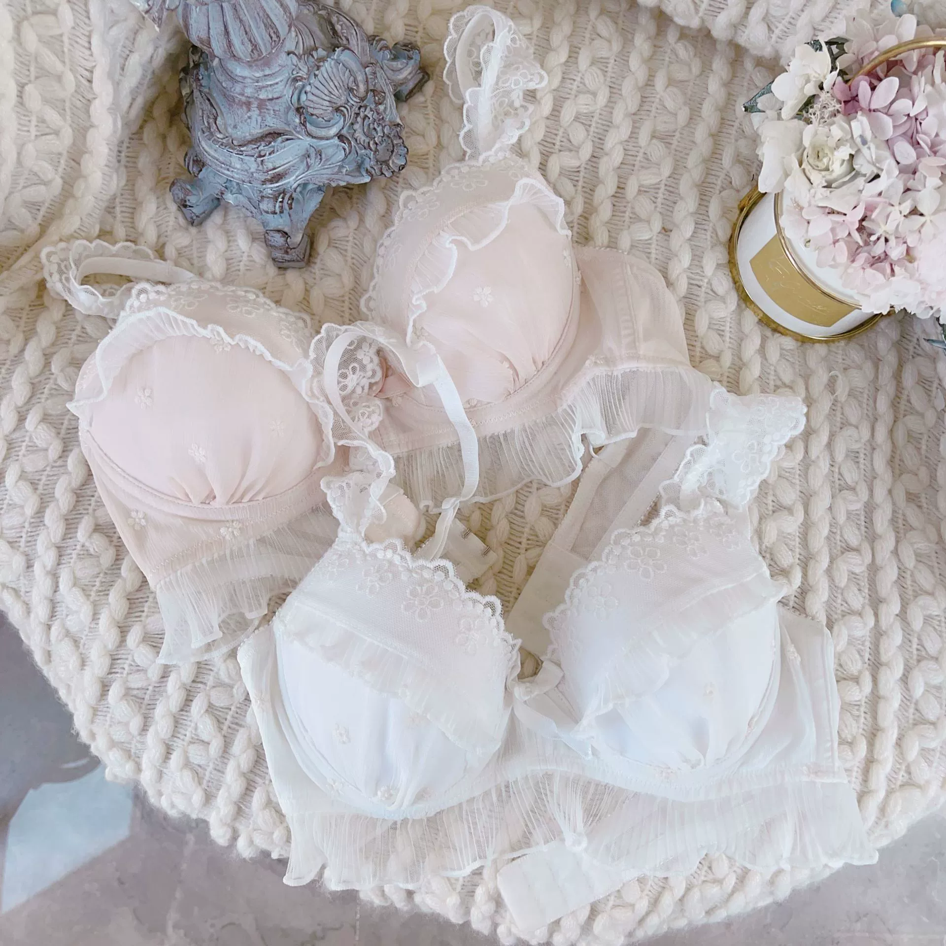Japanese new bra set breathable mesh lace rabbit ear cup gather fungus edge underwear sweet and cute girl lingerie