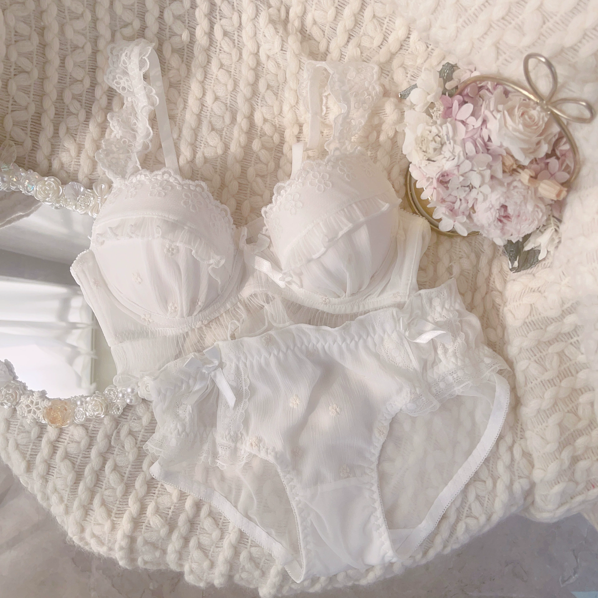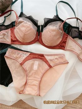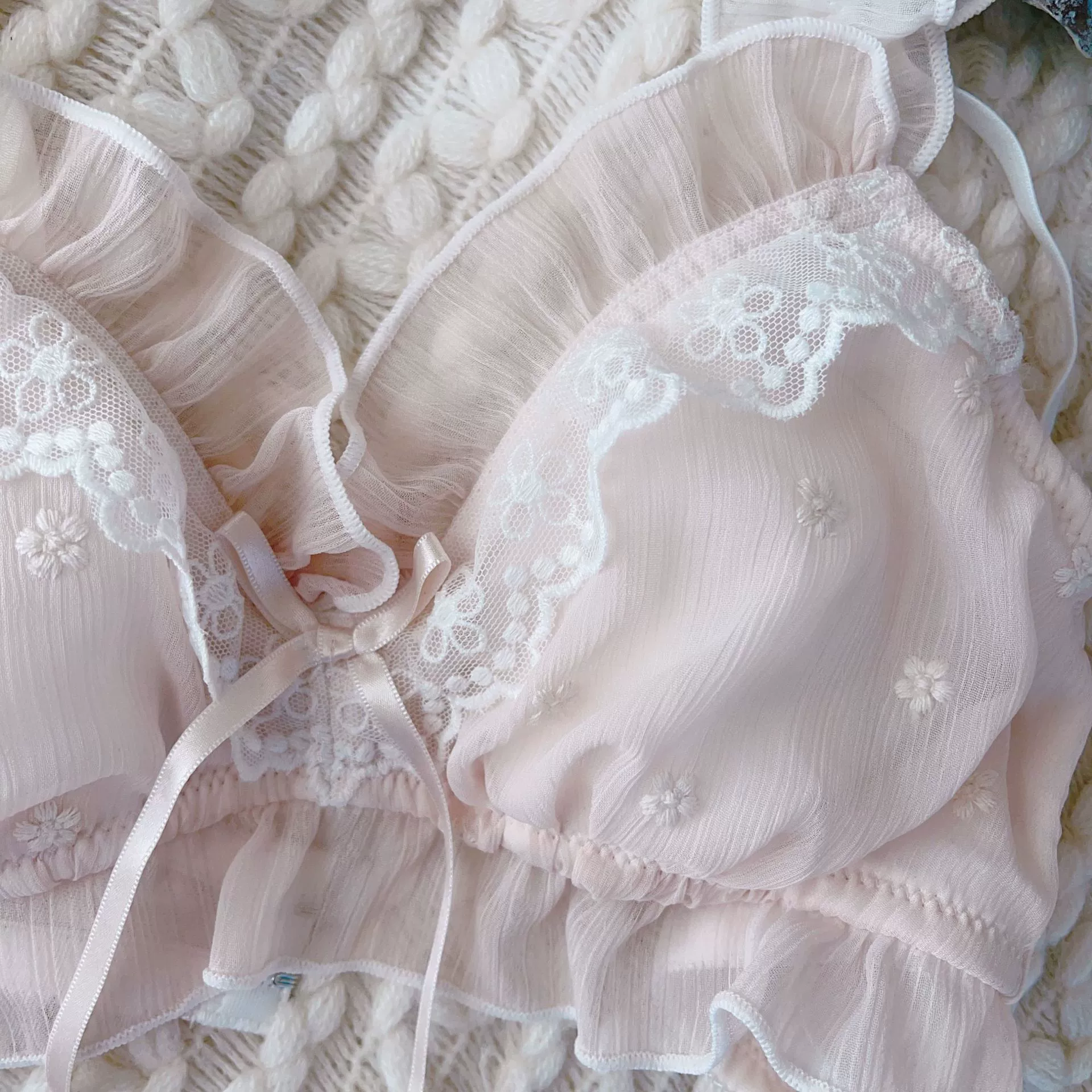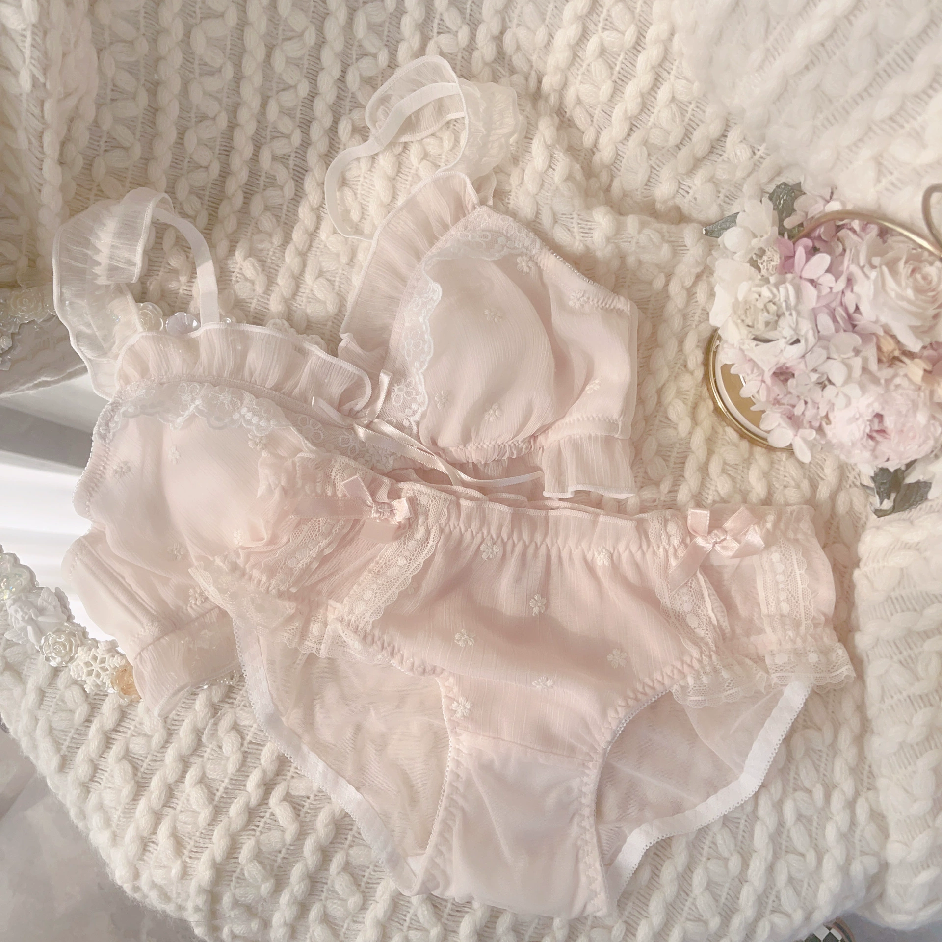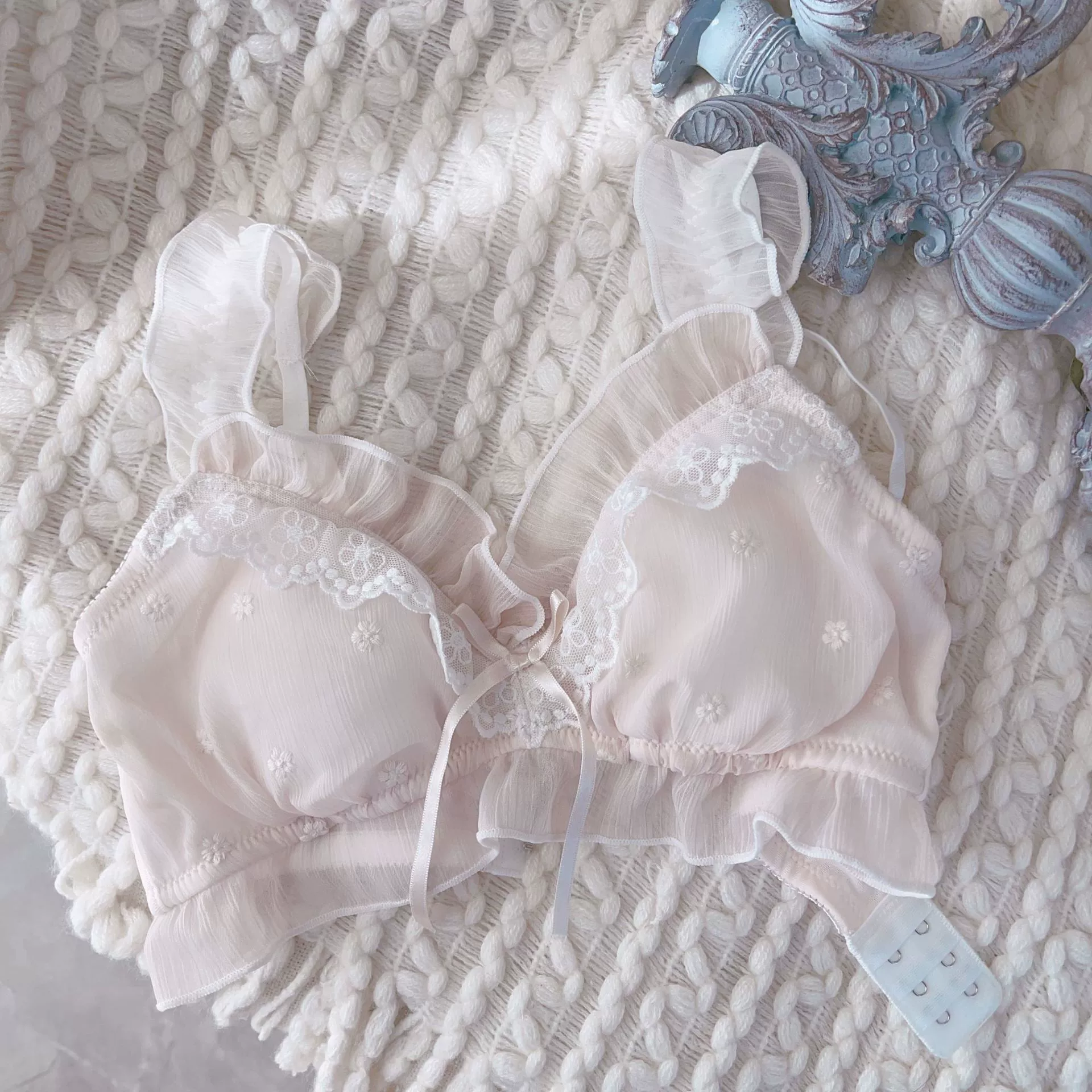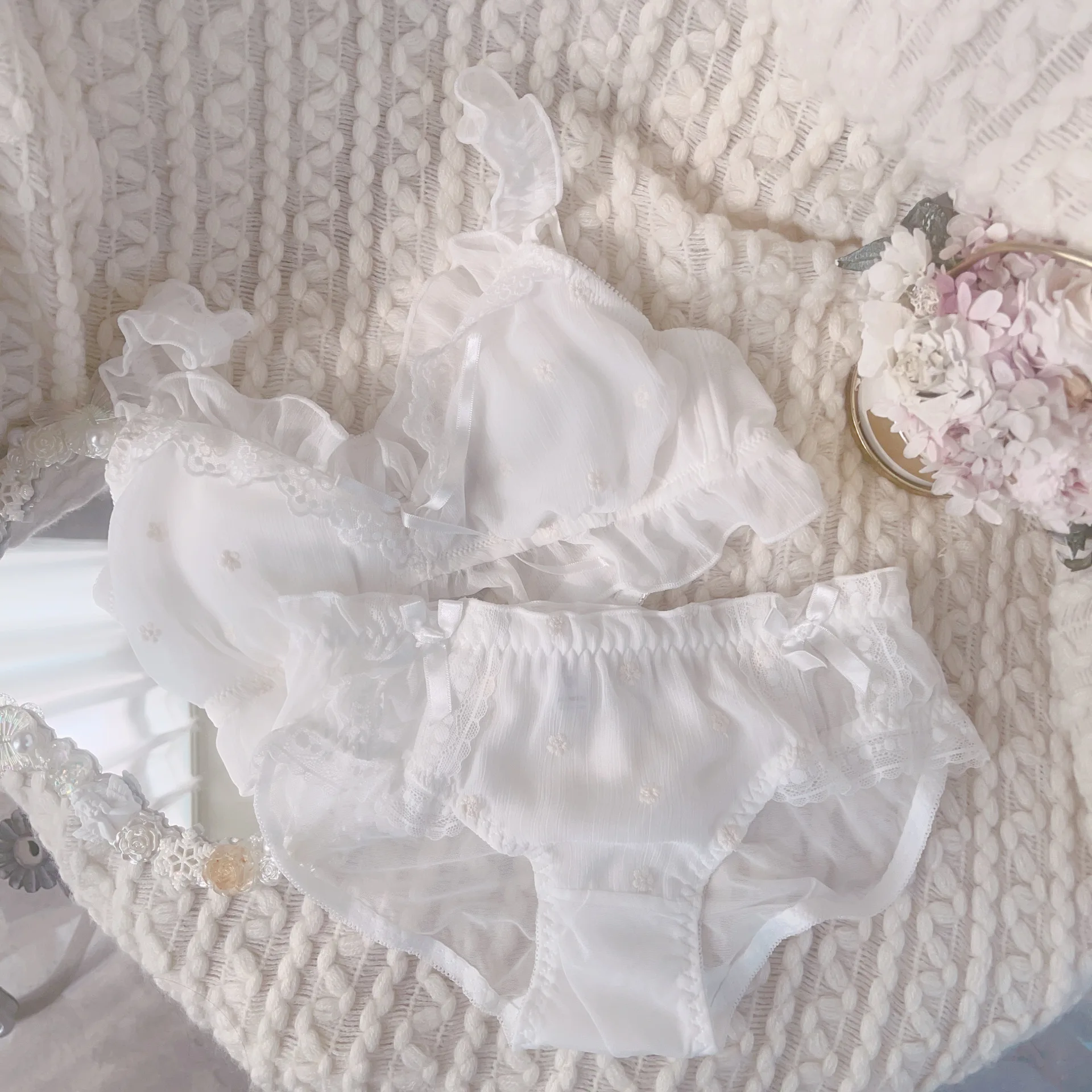 Japanese new bra set breathable mesh lace rabbit ear cup gather fungus edge underwear sweet and cute girl lingerie