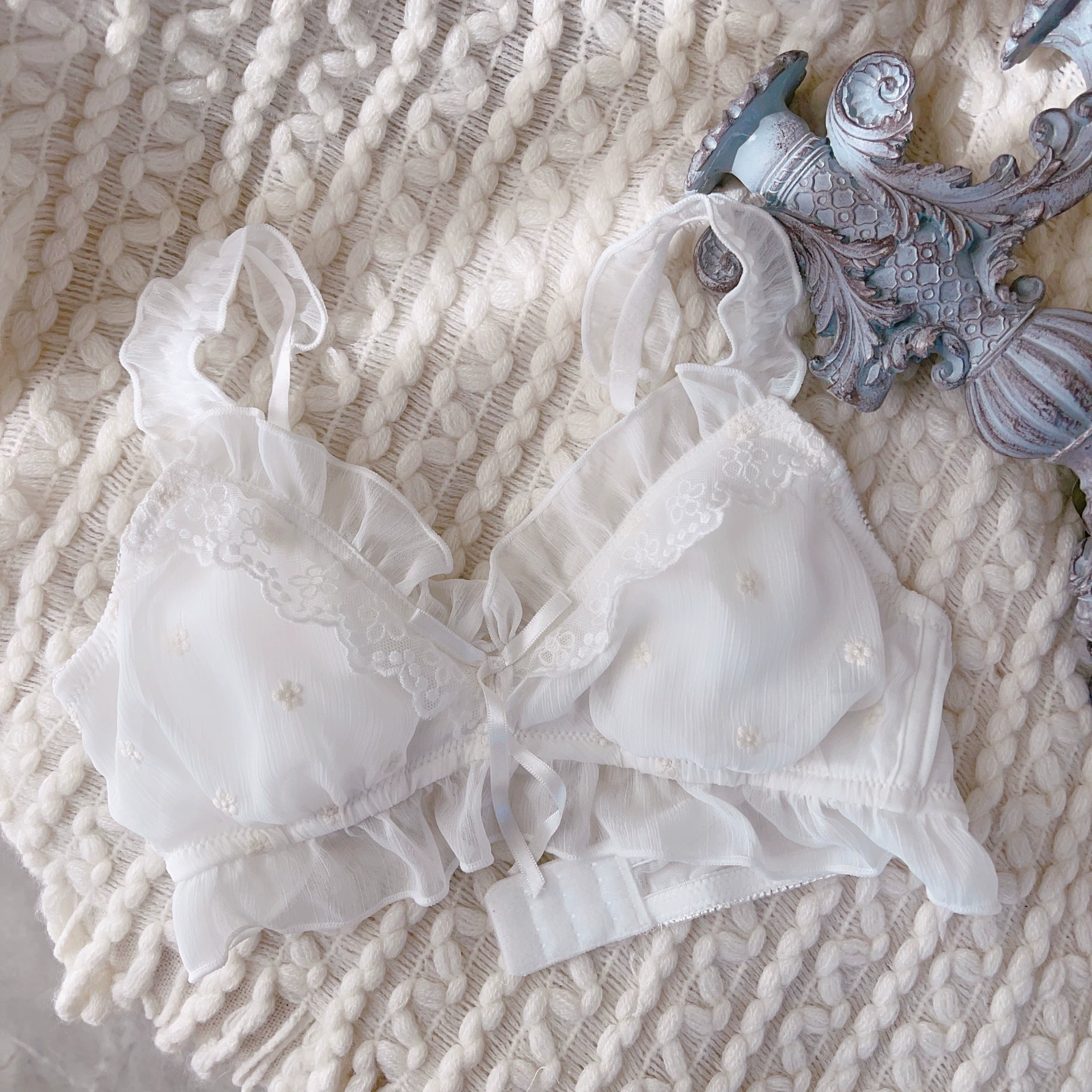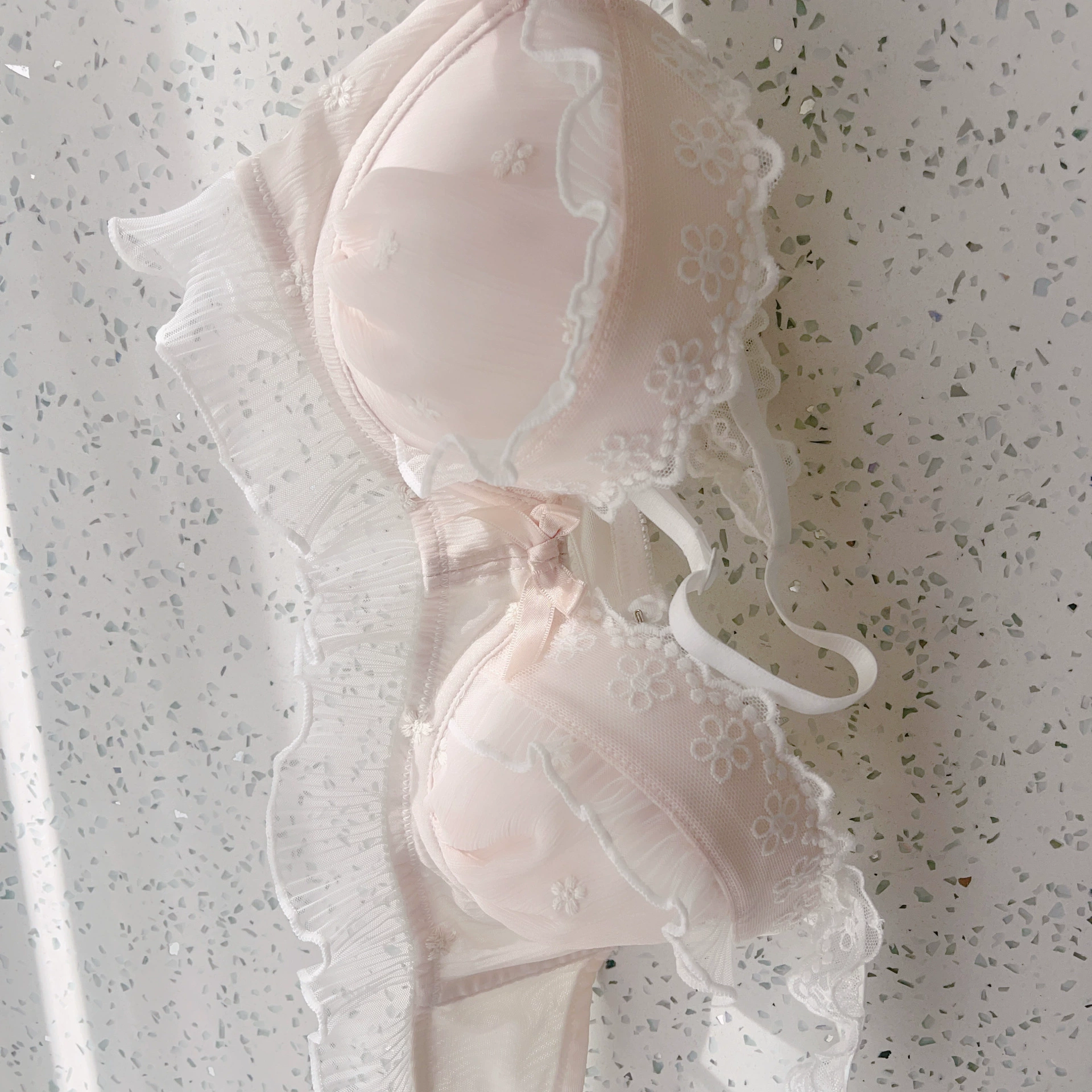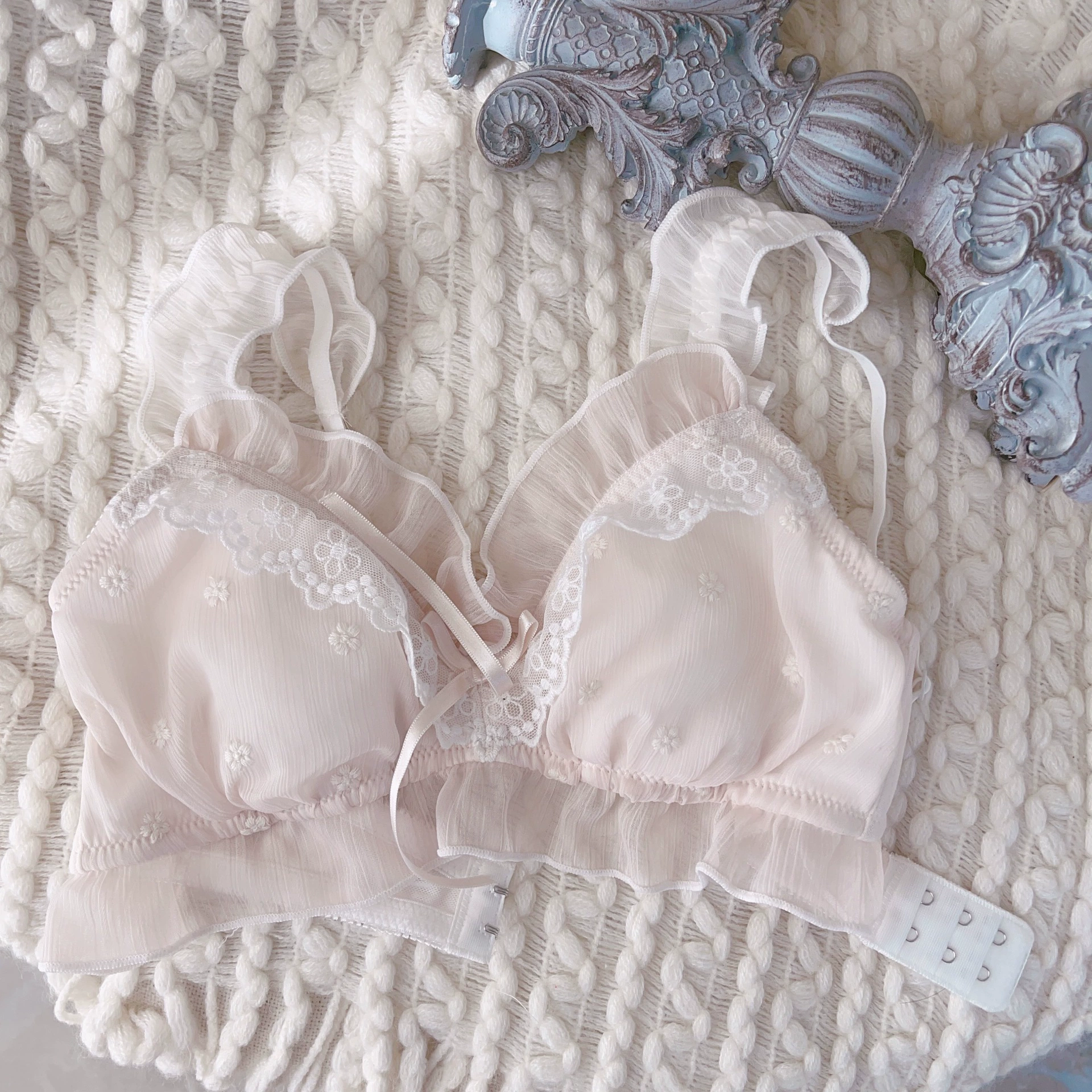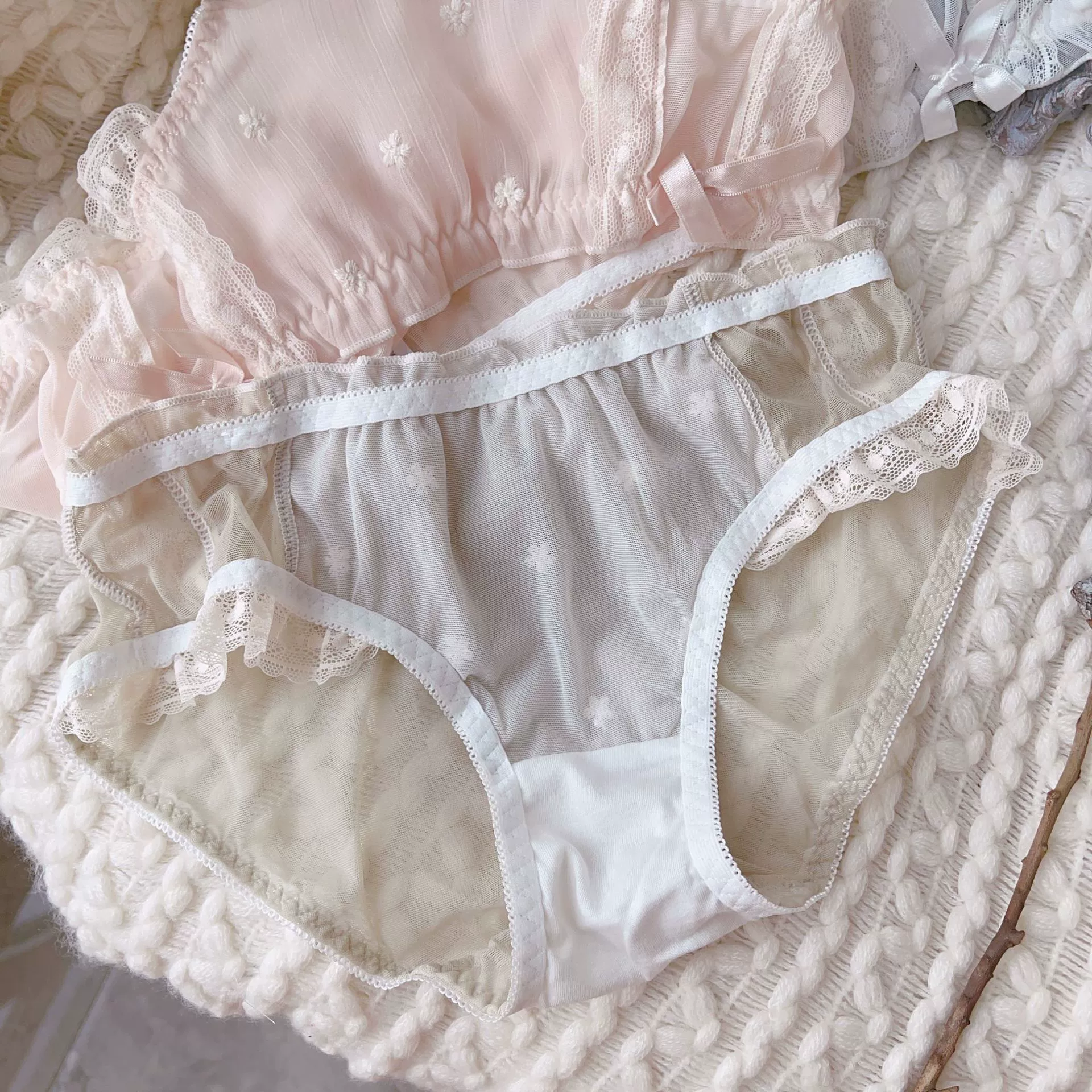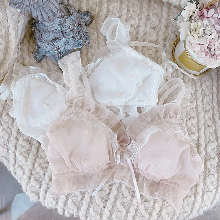 Japanese new bra set breathable mesh lace rabbit ear cup gather fungus edge underwear sweet and cute girl lingerie